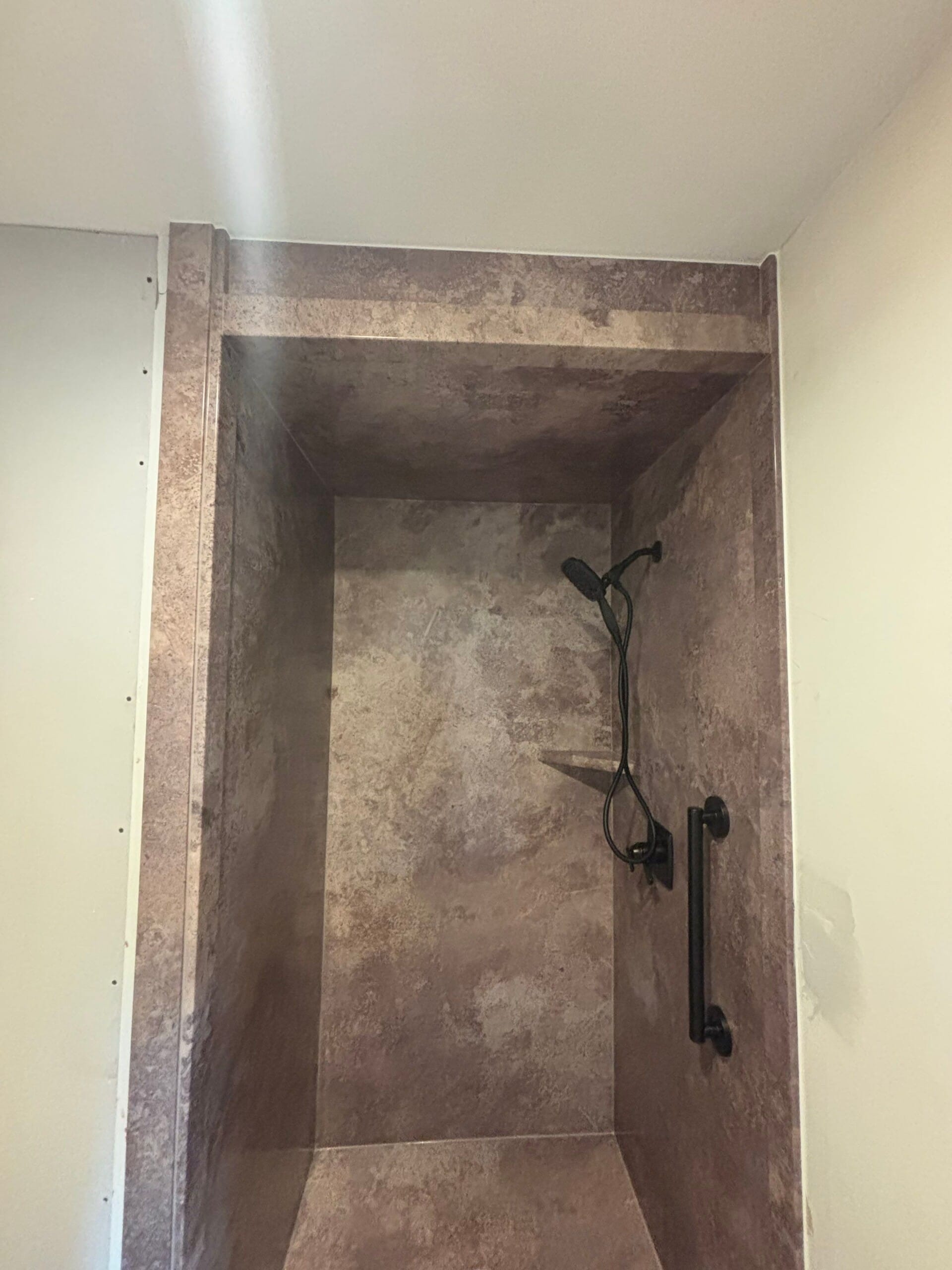 Scot Kemmer presented Five Star Bath Solutions’ Smart Choice composite system as a grout-free alternative to the previous tiled interior. The customer dismissed fiberglass and acrylic options in favor of a more durable panel that offered antimicrobial protection, non-porous surface, and a realistic stone look without grout maintenance. A custom thermal-insulated base was selected to provide non-slip texture and eliminate subfloor flex. Oil-rubbed bronze fixtures were included to match the updated aesthetic, and the panel system was color-matched to blend with existing decor.
