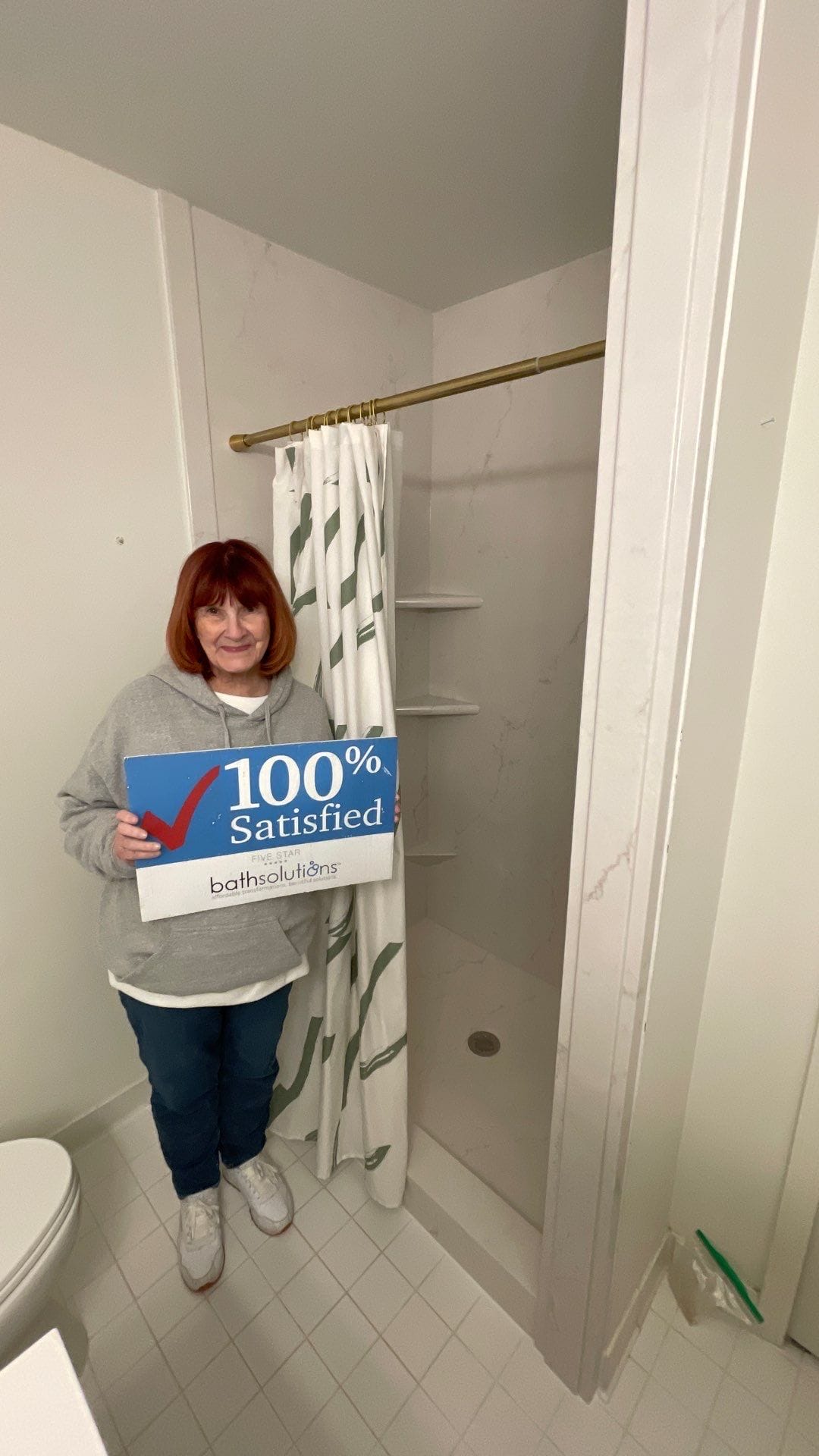 The Representative from Five Star Bath Solutions presented a customized solution focused on safety and durability, featuring a grout-free wall system with a marble-pattern finish for easy maintenance and long-term performance. The upgraded design incorporated brushed gold fixtures, including a handheld shower system with slide bar functionality, along with integrated corner shelving for storage. The company’s specialization in bathroom remodeling, along with trained and certified in-house installers, reinforced trust and ensured the system would be installed to meet accessibility and performance needs.