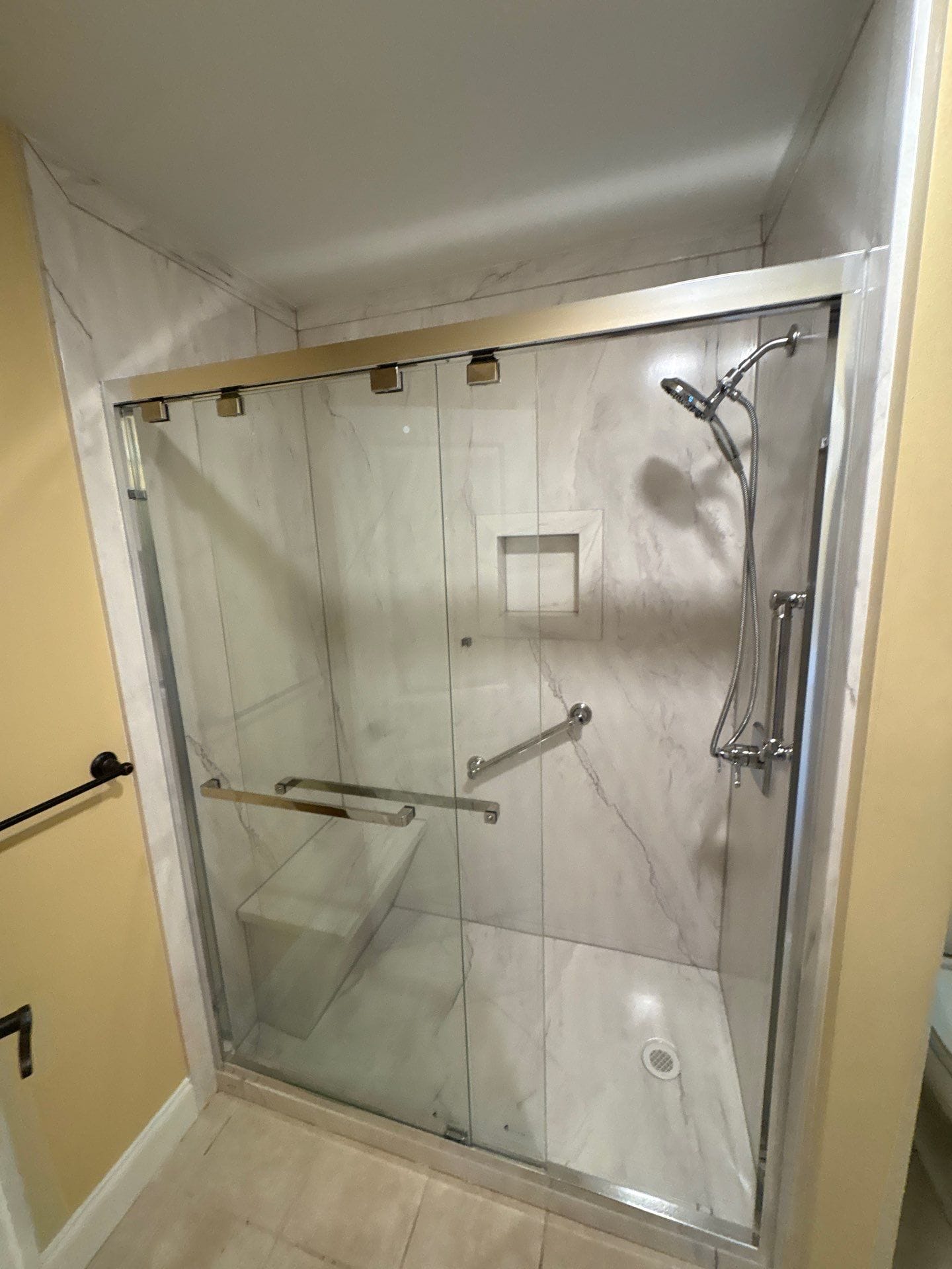 Five Star Bath Solutions operates as a locally owned franchise backed by a national brand that began in 1996. Joey explained that the business is fully licensed and insured with $2 million in liability coverage and uses only in-house certified employees who undergo standardized training at a national center. Installations include down-to-the-studs demolition with all moisture readings and repairs completed before any new materials are installed. Joey documented the moisture issues detected behind the current tile system, explaining the company’s commitment to removing all affected areas and replacing them with mold-proof, waterproof materials. Installation typically takes two to three days once materials arrive, though in this case may extend slightly due to existing moisture levels and structural removal needs. Joey also assured the customer that the process includes site protection, plumbing upgrades, and a clean, secure job site throughout.