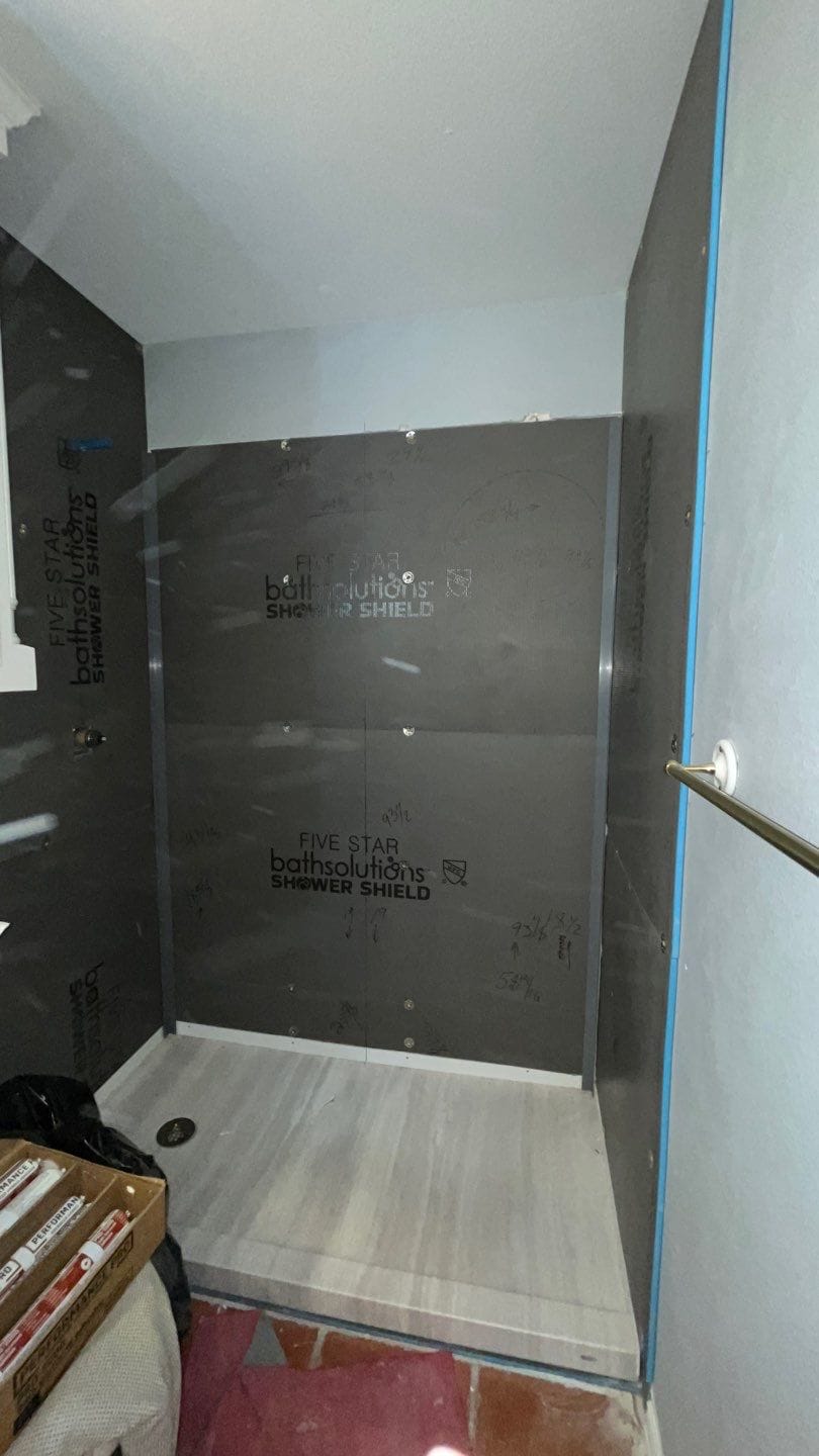 Installation involved a full removal of the existing tub, glass enclosure, and wall materials down to the studs. The team prepared the space with waterproof backer materials, installed a custom low-threshold shower base, and completed the wall system using durable, non-porous panels. Plumbing components were updated to support the new shower system, and all materials were installed to ensure proper drainage and long-term performance. After installation, the custom glass enclosure was fitted to the space, completing the transformation into a safe and accessible walk-in shower.