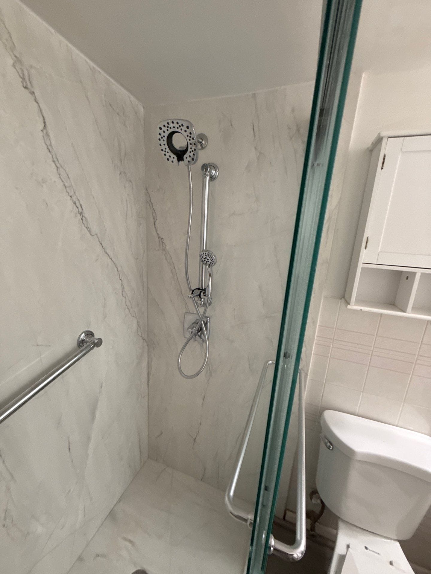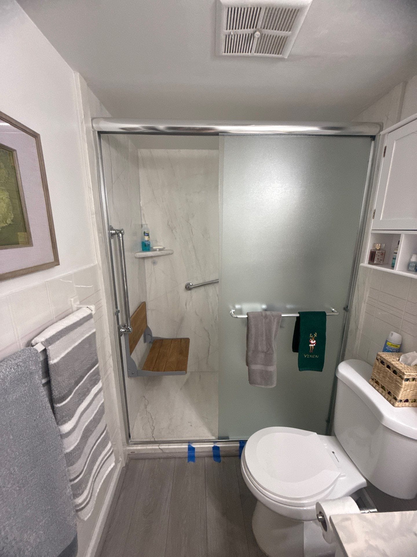 The installation was outlined as a short multi-day process following arrival of all materials. The crew would begin by removing debris from previous plumbing work, checking the subfloor and studs, and prepping the site before installing the new base, wall system, and fixtures. Although the customer briefly considered new vinyl flooring, they ultimately decided to retain the existing floorboards. Attention was given to ensuring quality, with assurance that certified installers handle all phases of the remodel, maintaining Five Star’s reputation for specialty service in bathroom upgrades.