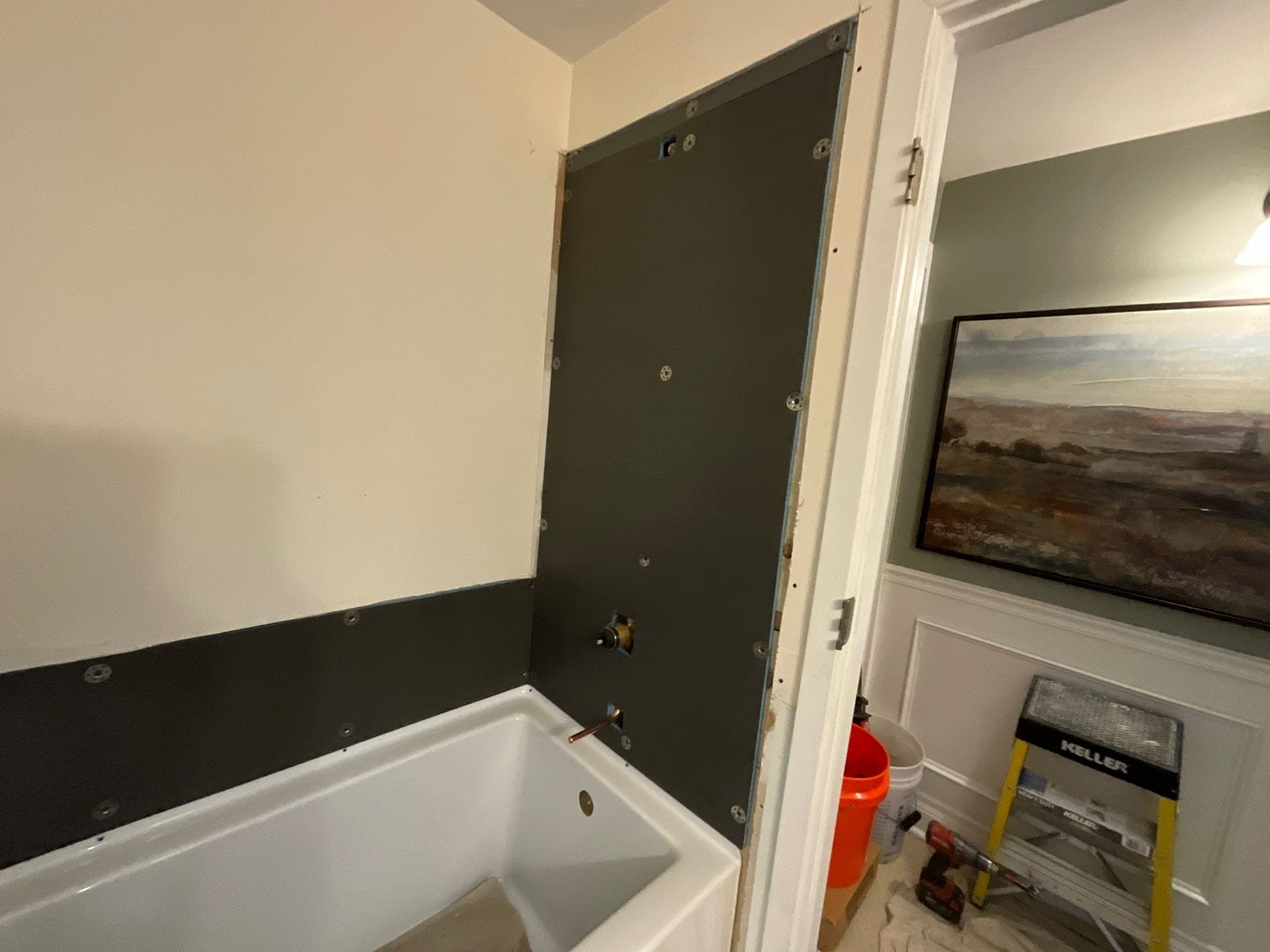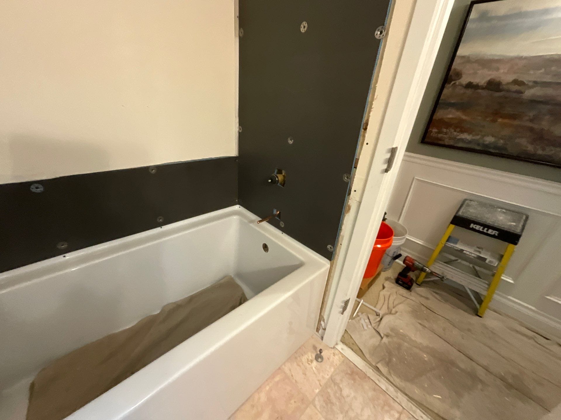 The installation team completed a full demo of the previous clawfoot tub and surrounding infrastructure. After removal, new wall panels were installed up to ceiling height, along with a recessed soaker tub unit. The crew added corner shelving to optimize product storage and aligned all plumbing to modern code. Matte black fixtures were fitted with precision, and the new tub enclosure was installed with a straight shower curtain rod. The project was completed over the course of two days with all debris removed from the site and no large disposal equipment left onsite.