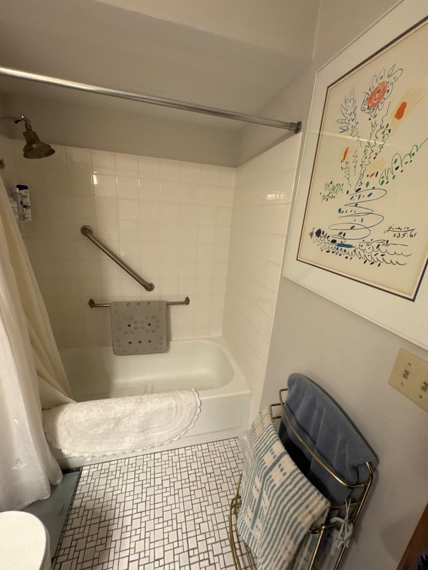 * Three oil-rubbed bronze grab bars, including angled support placement