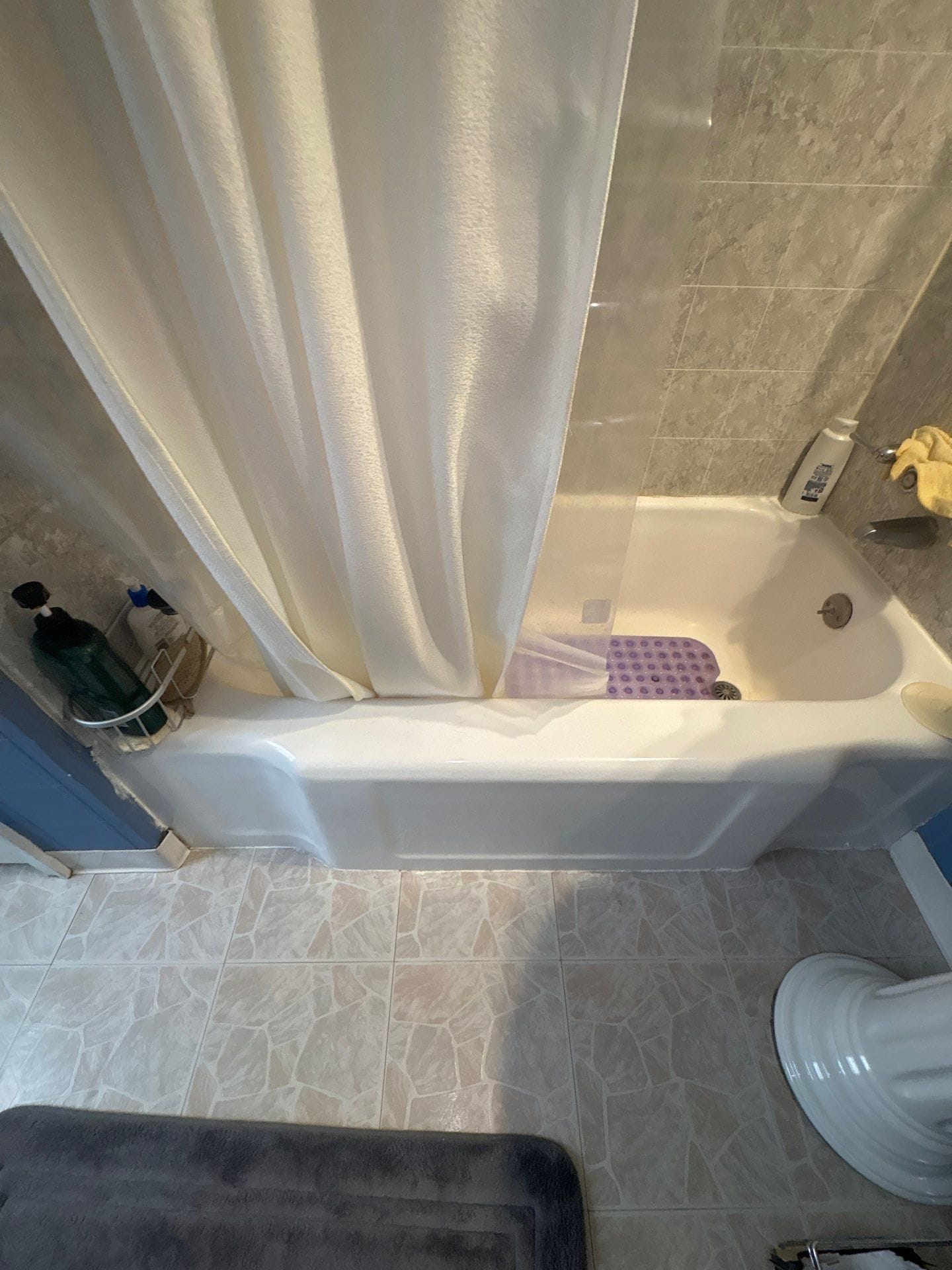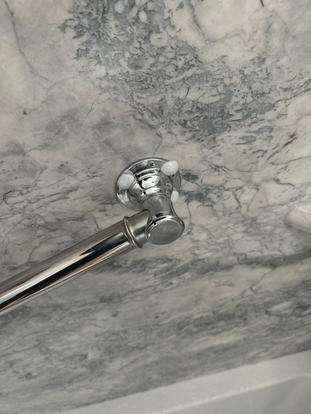 * Brushed nickel curved curtain rod and mounted grab bar