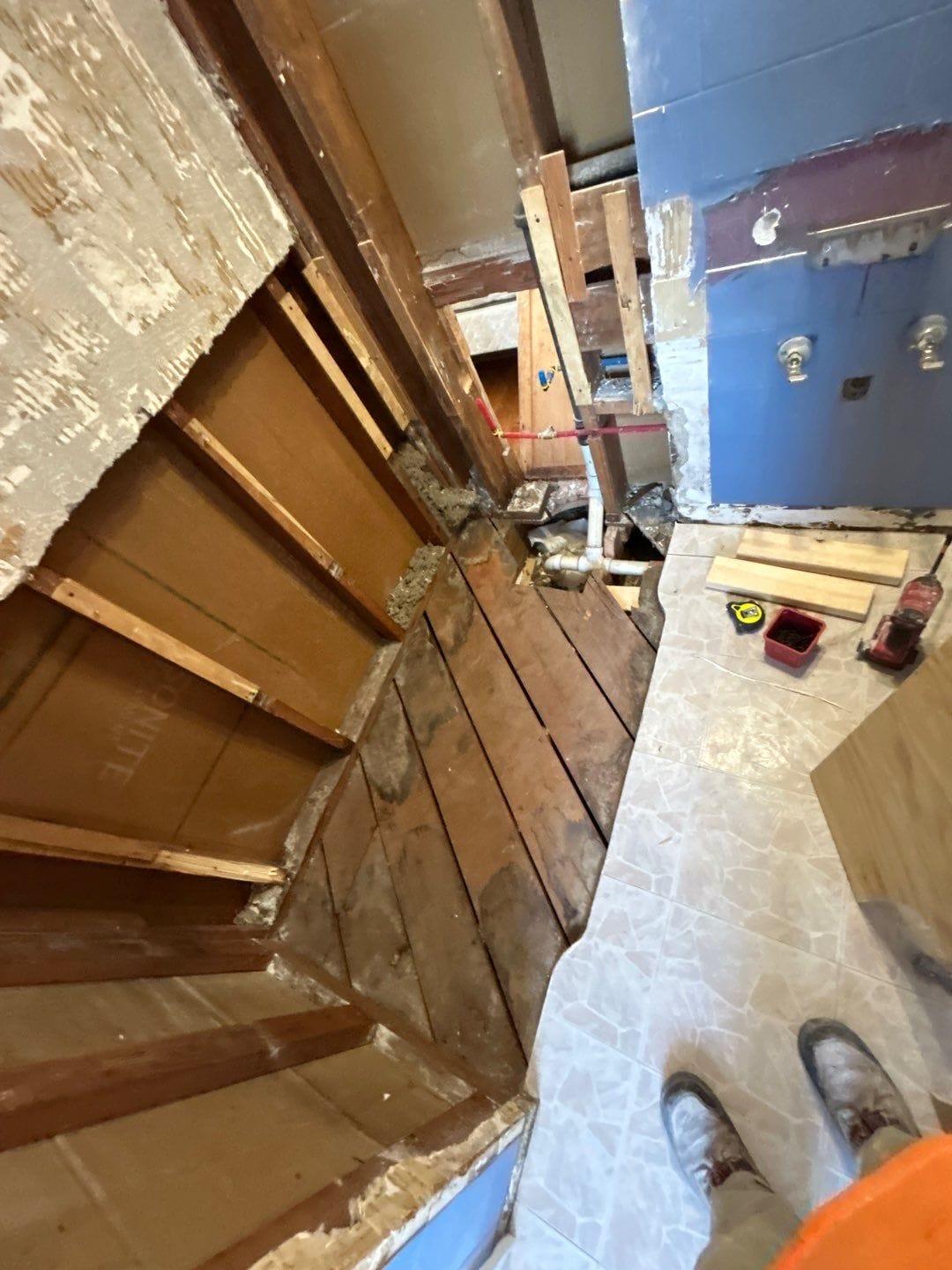 * Full demolition, water damage remediation, and new plumbing