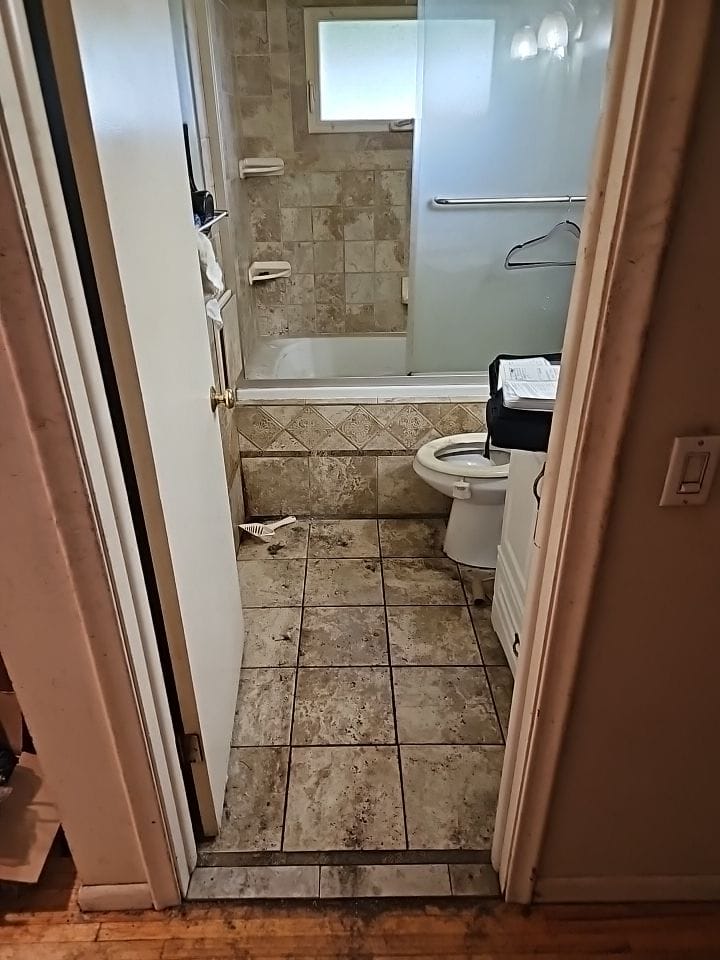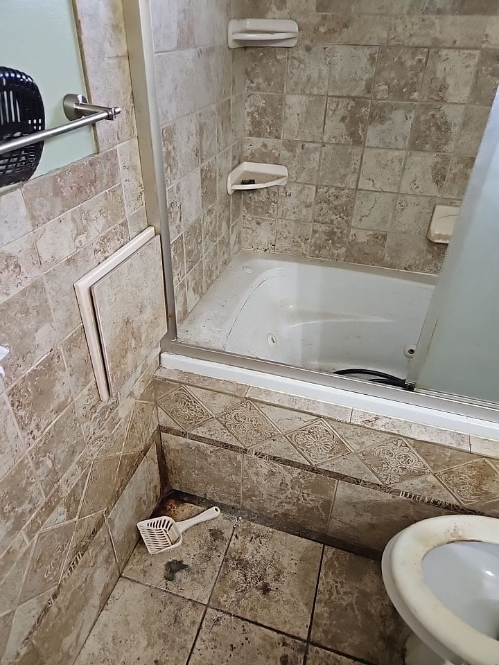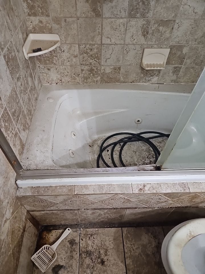 * Walk-in shower conversion replacing a cracked tub-shower unit