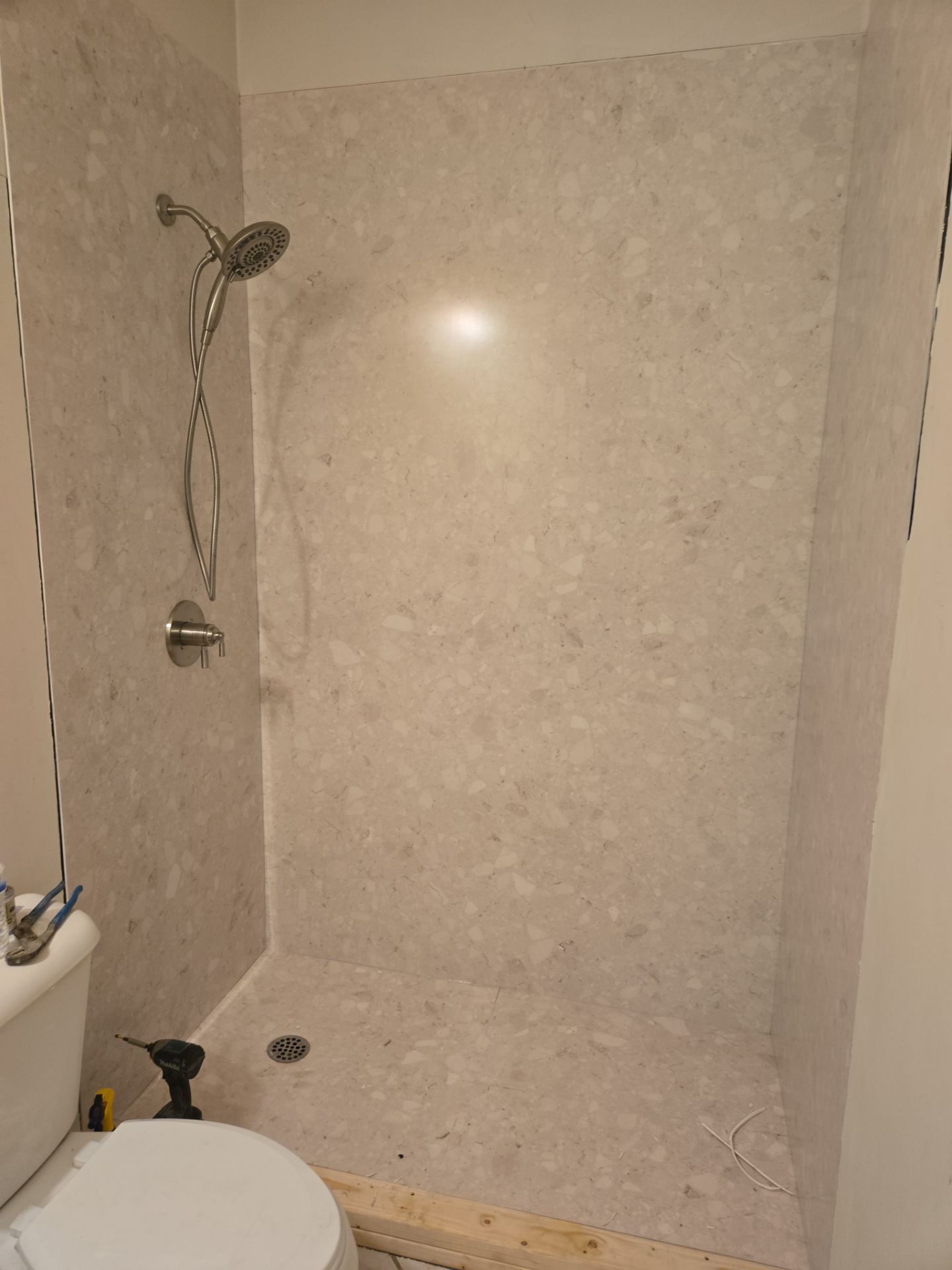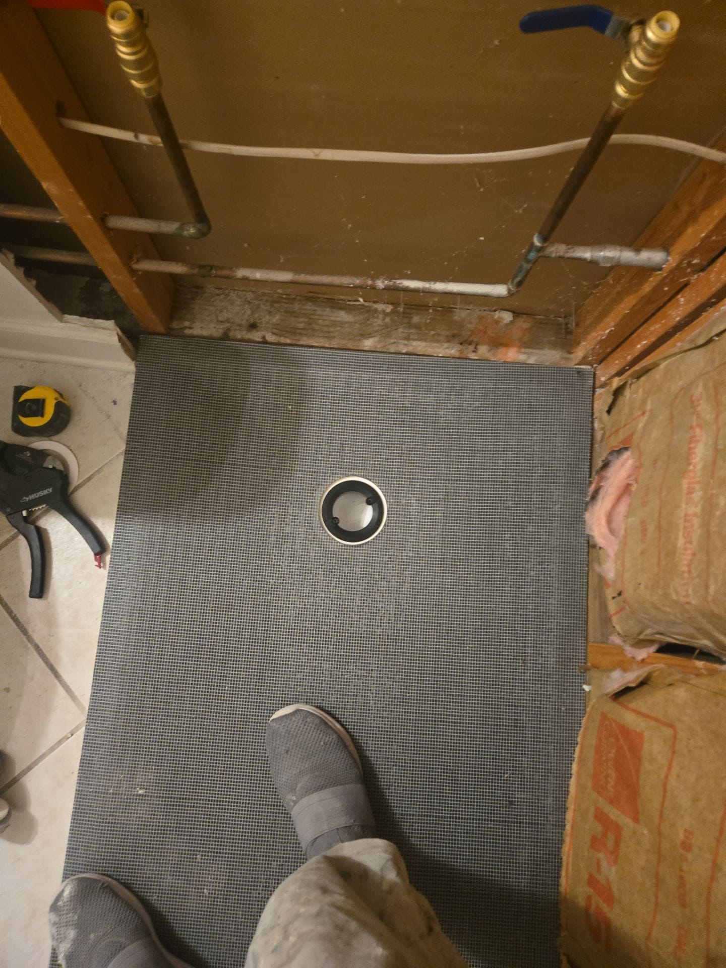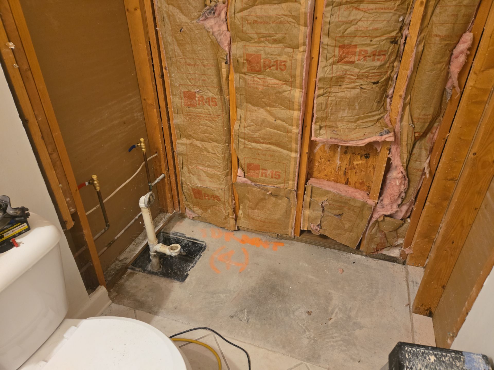 * Full demolition, PEX plumbing, ShowerShield waterproof backer board