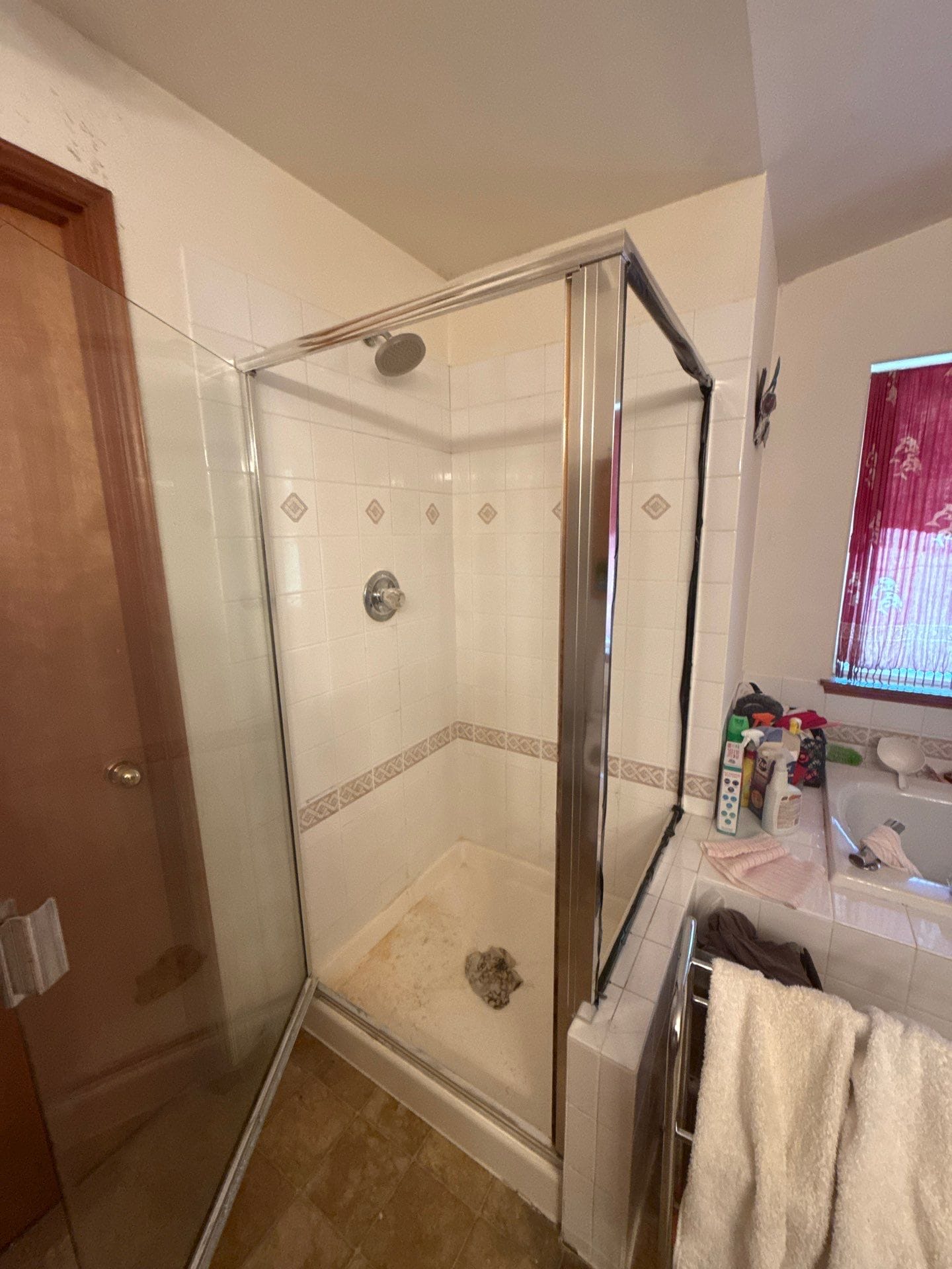 * Walk-in shower conversion with Taj Mahal Smart Choice composite walls