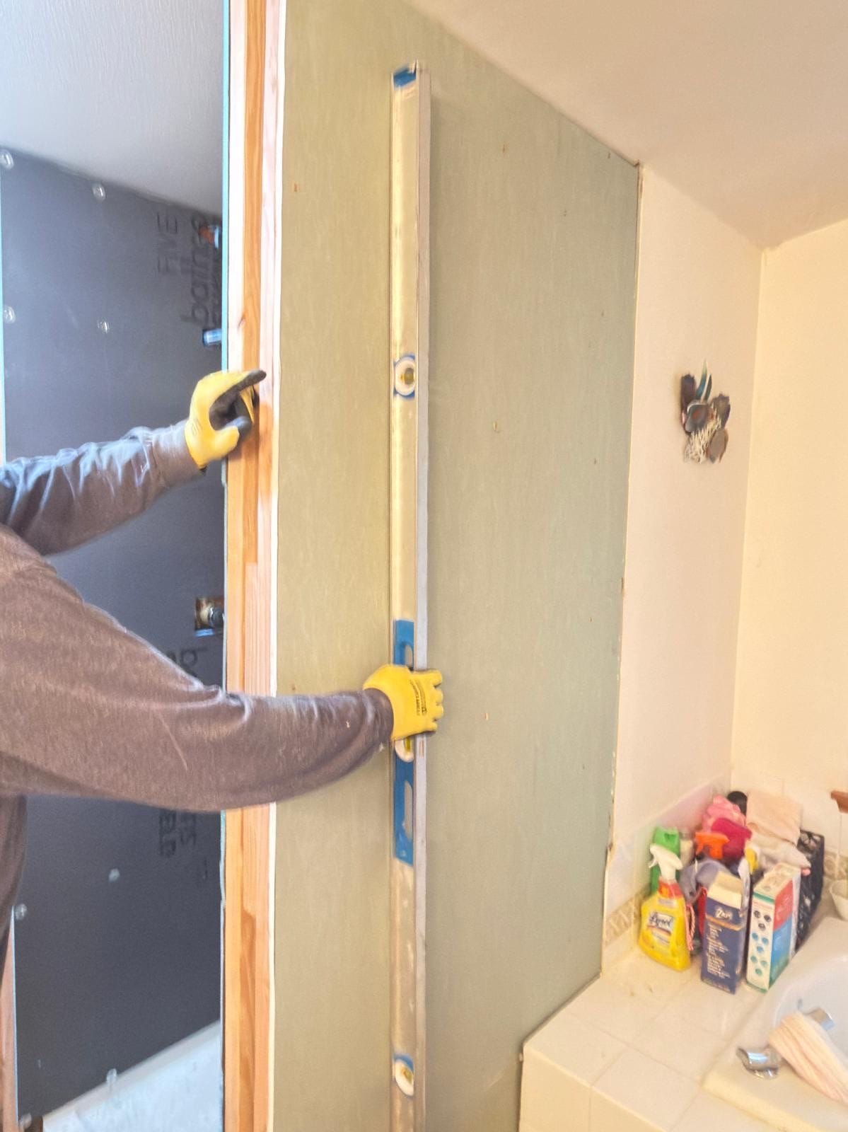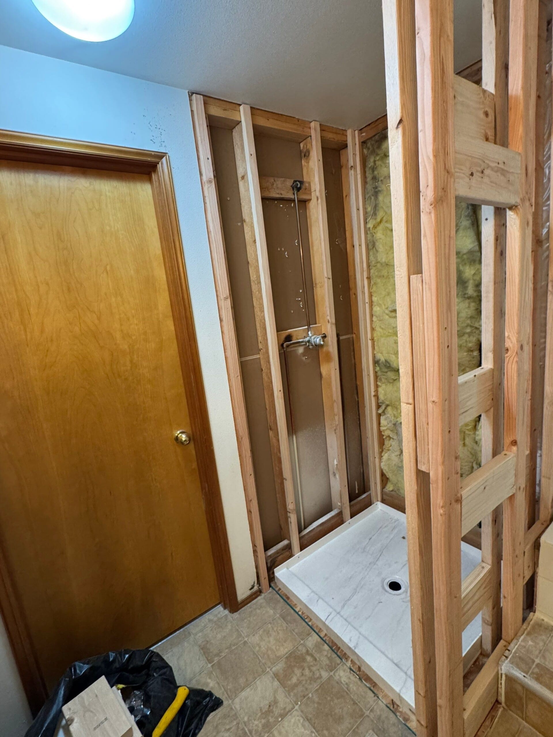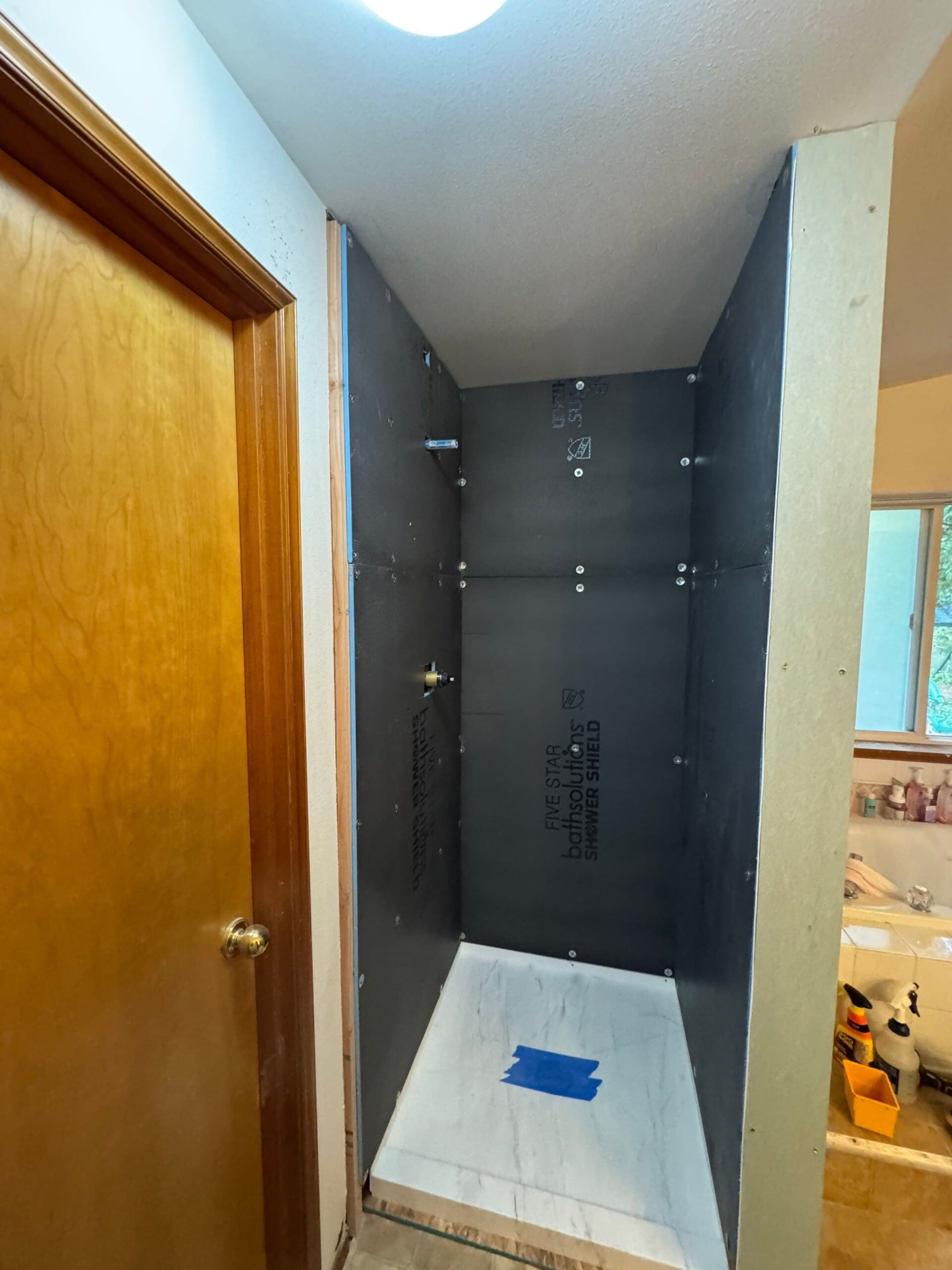 * Waterproof synthetic Shower Shield backer board to ceiling height