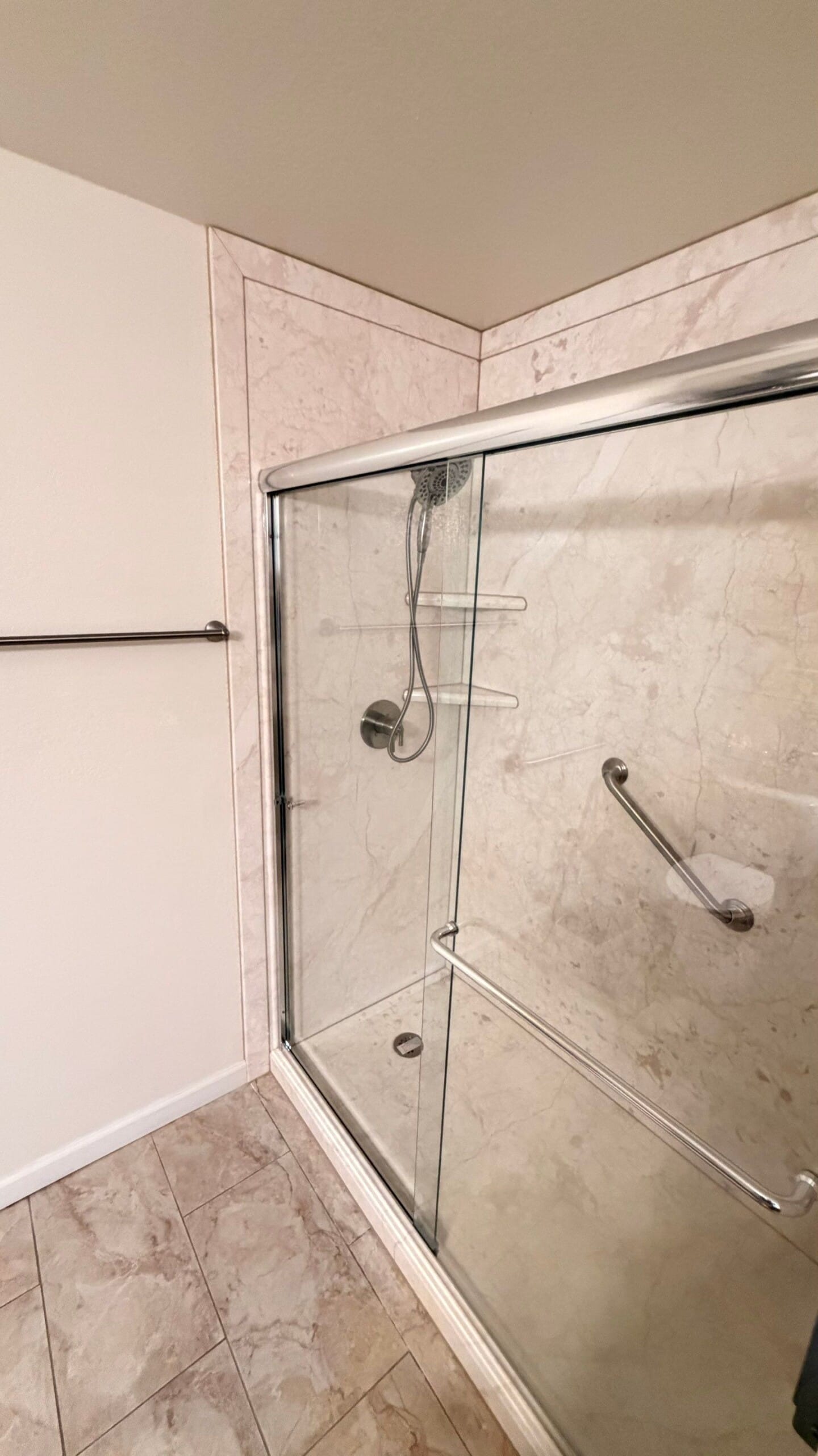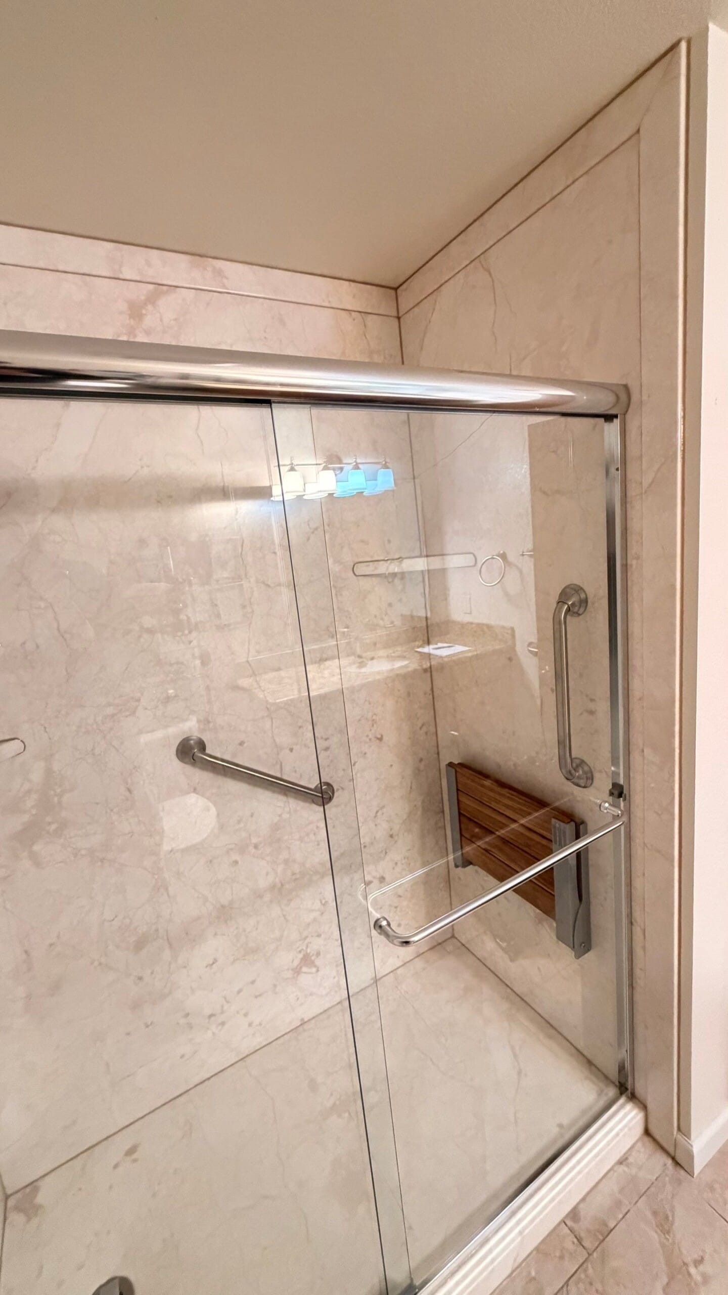 * Walk-in shower conversion with patterned composite wall panels