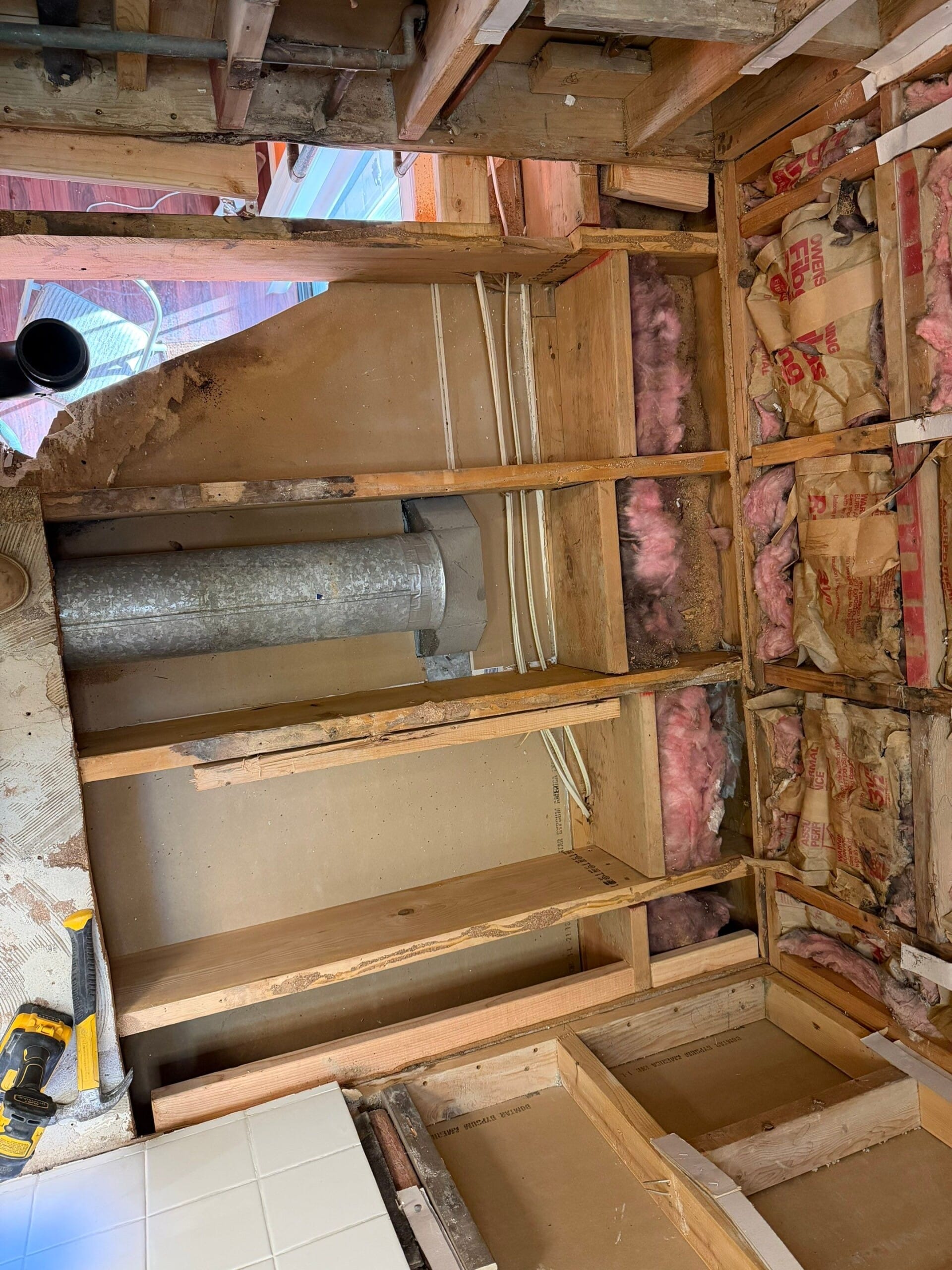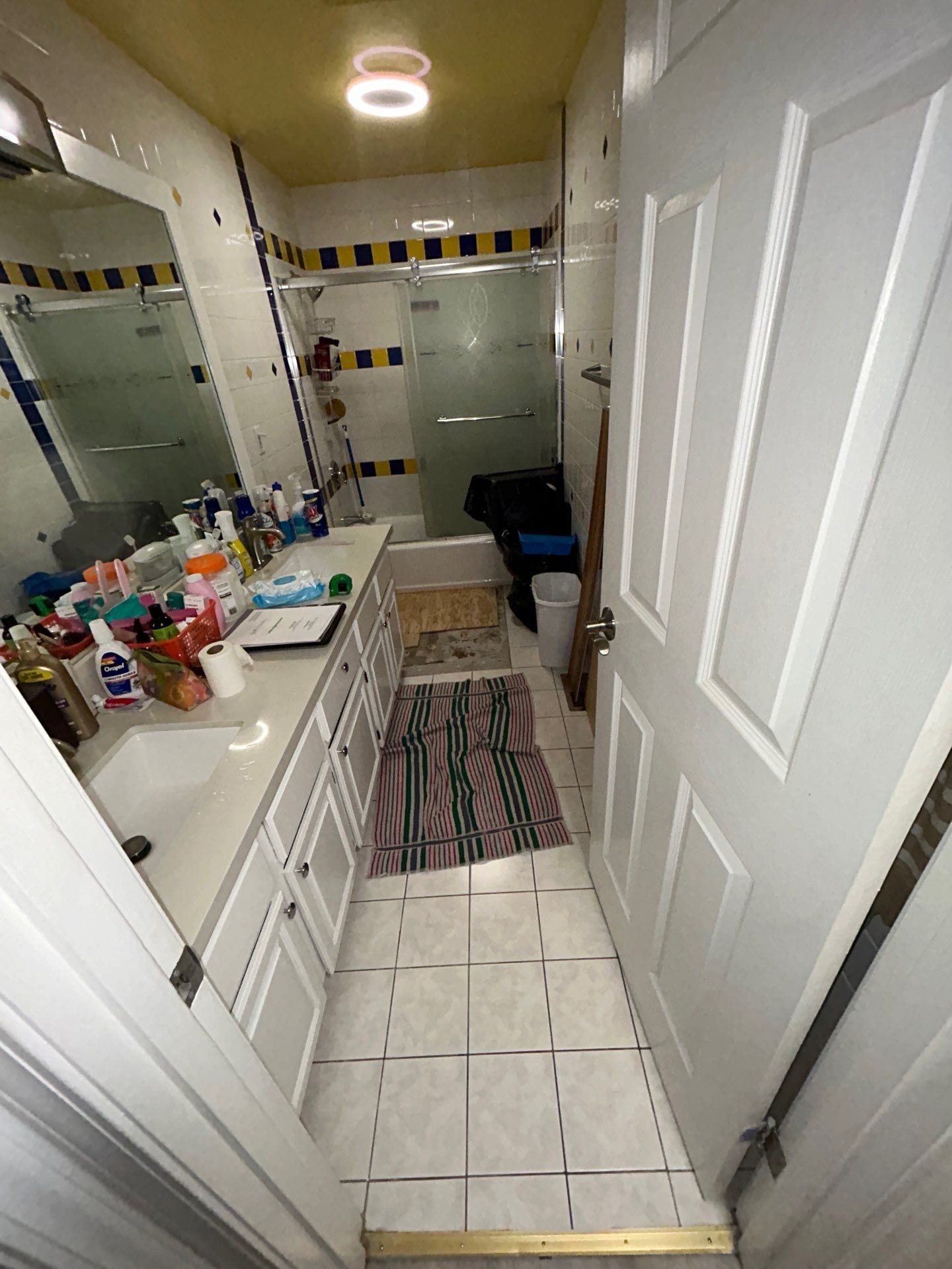 The Five Star Bath Solutions representative presented a grout-free composite wall system designed to replicate the look of natural stone while remaining easy to maintain and highly durable. Light marble-style wall panels were selected to brighten the shower area and modernize the space. Brushed nickel fixtures and a sliding glass shower enclosure complemented the design and maintained an open visual profile within the narrow bathroom. Integrated accessories were included to improve daily use while maintaining a streamlined appearance.