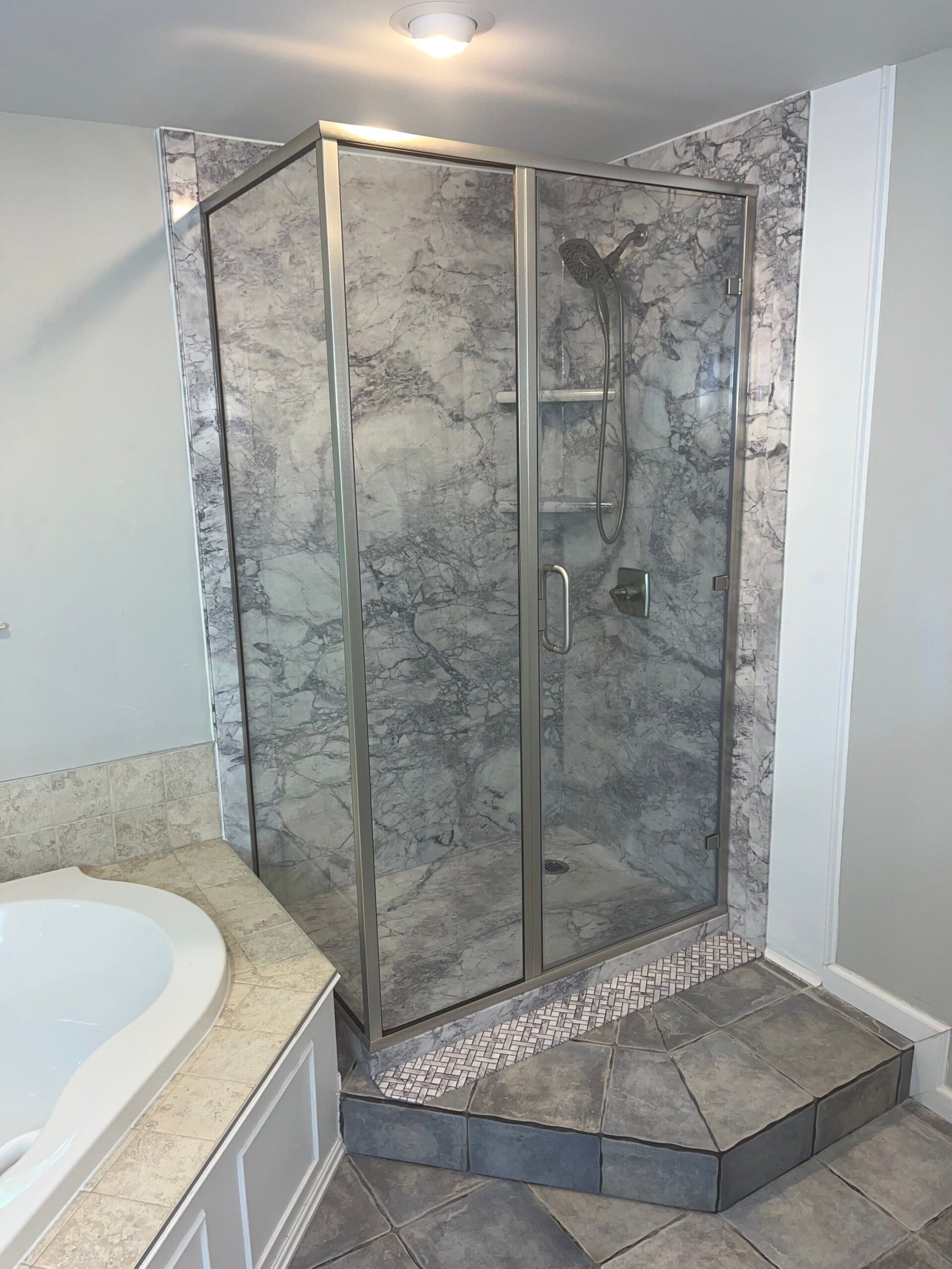 The installation process includes removal of all existing materials down to the studs, followed by inspection and repair of any mold or structural damage. The company uses a proprietary waterproof backer board made from foam and rubber cement layers called Hydro Block, sealed with corner wedges to ensure complete water resistance. Installers follow a strict 10-step process, ensuring floor protection, debris removal, plumbing replacement, and precise customization of fixtures, accessories, and finishes. Once installation is complete, a walkthrough is done with the homeowner, ensuring every detail—from water pressure to sealant integrity—is reviewed and approved. Customers are encouraged to make final adjustments before materials are ordered, and installation typically begins six weeks from commitment, taking only a few days to complete.