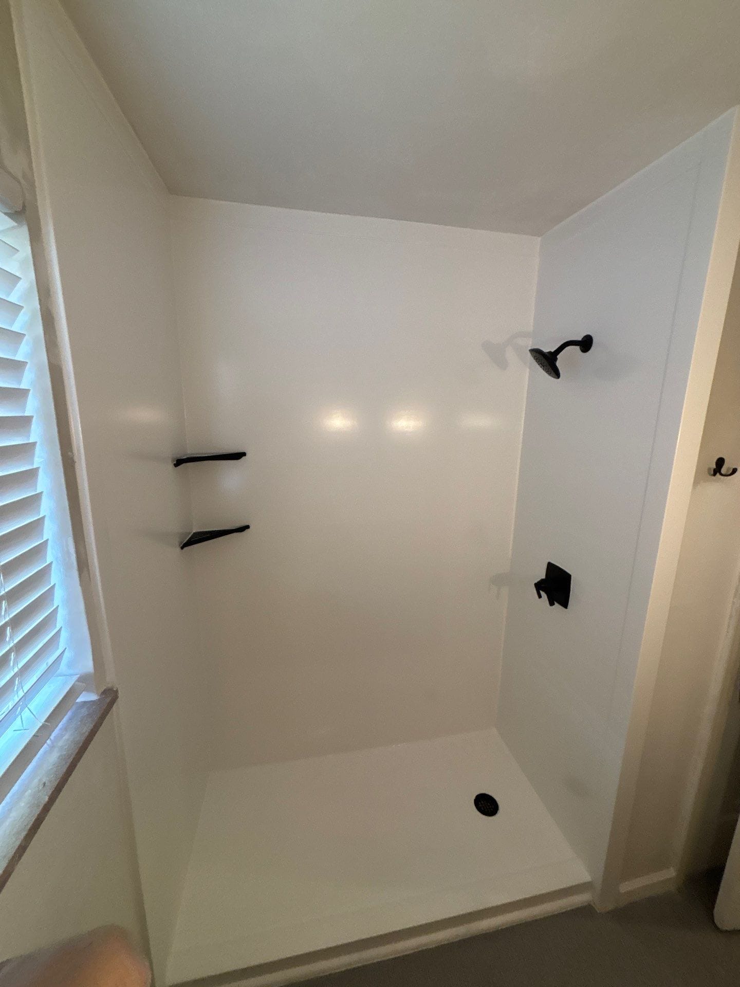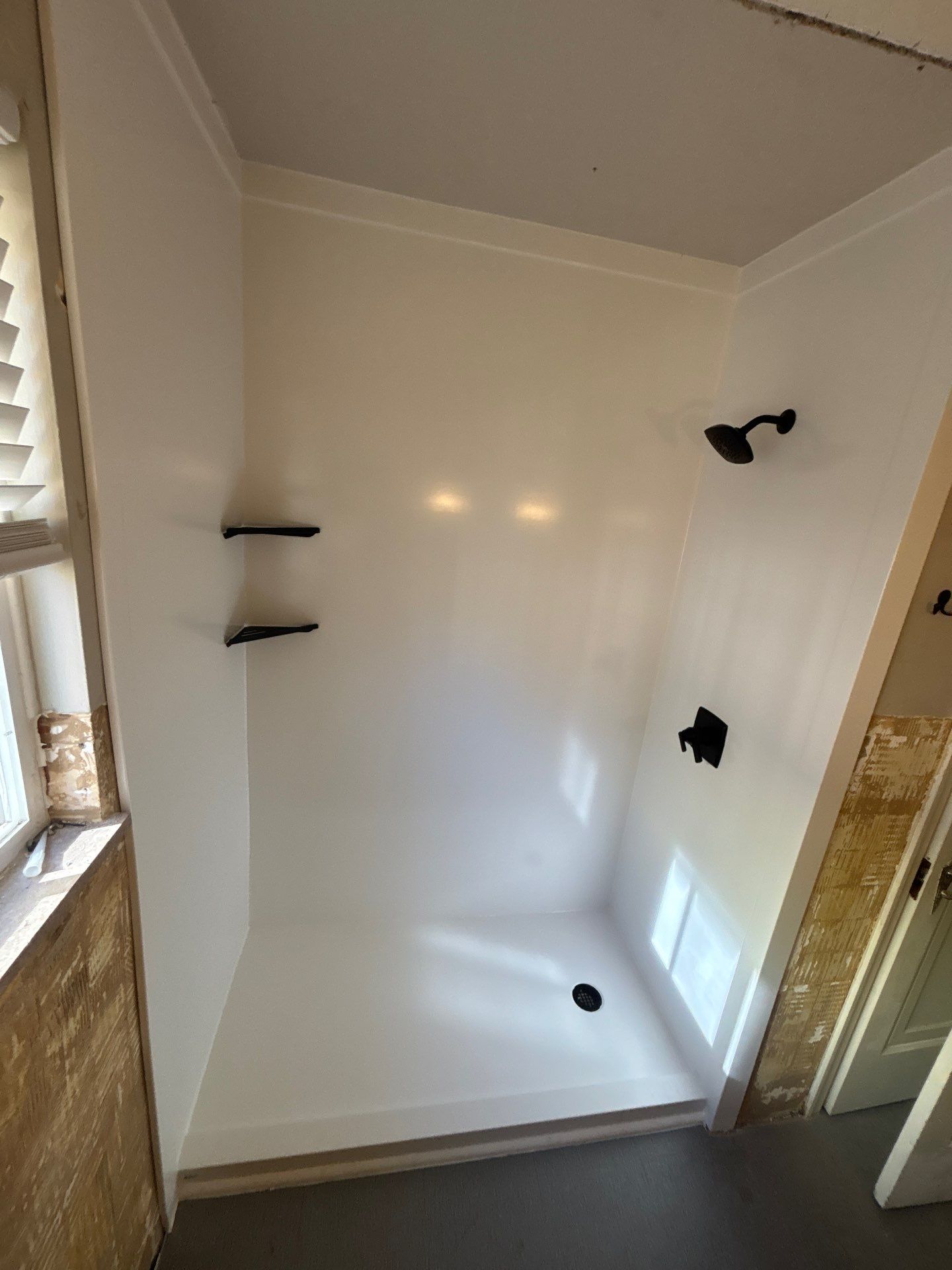 * Walk-in shower conversion with Everest wall and ceiling finish