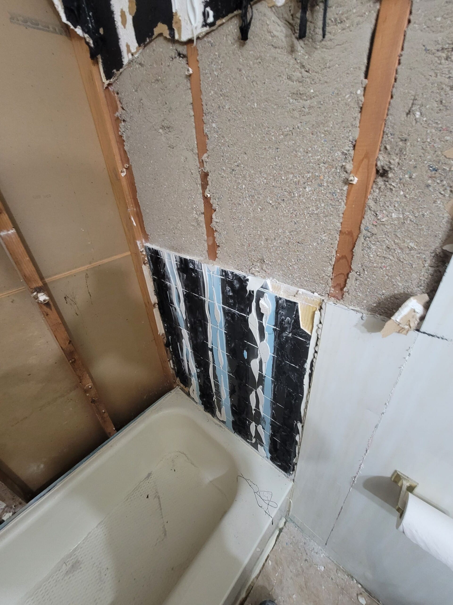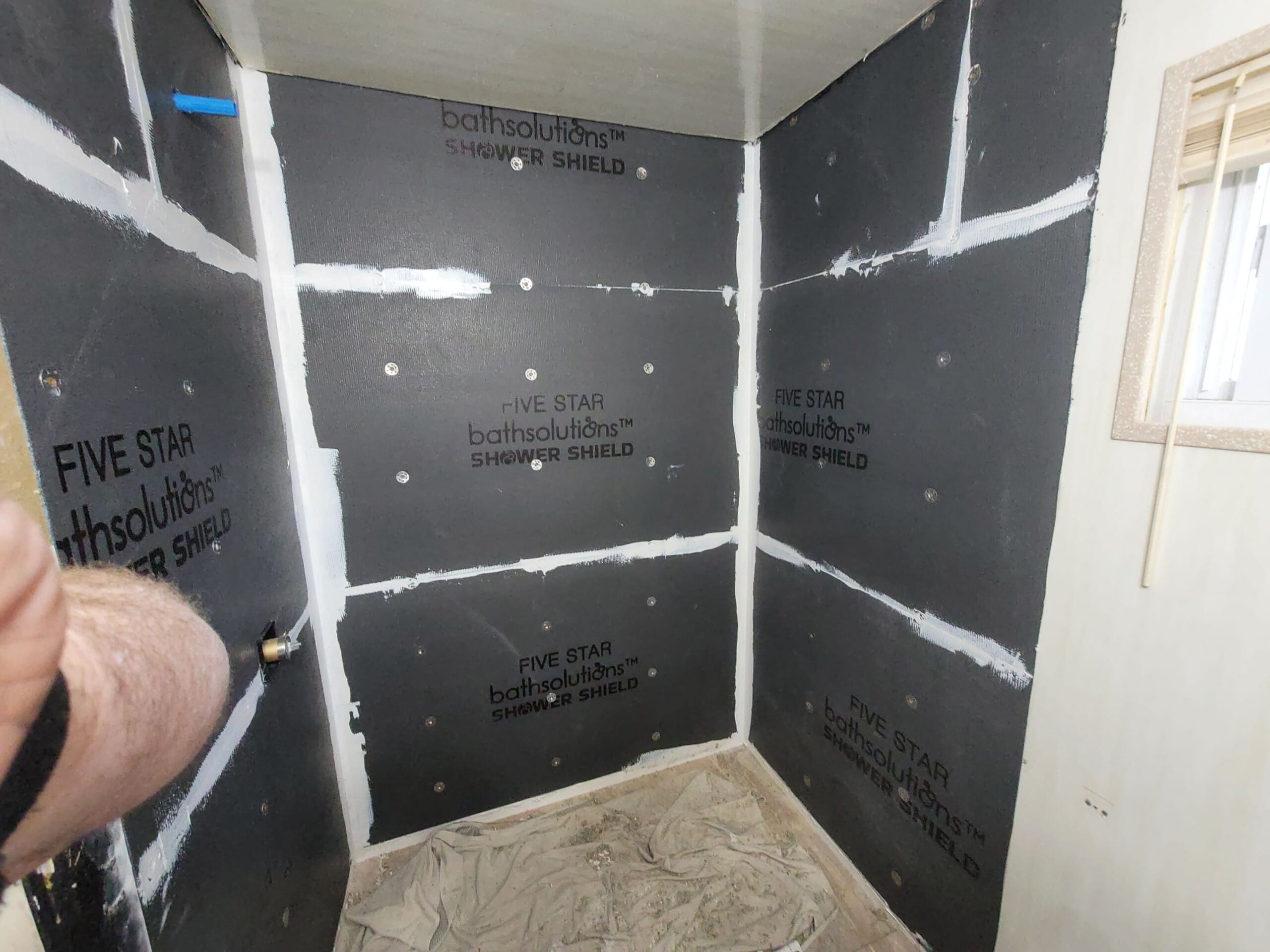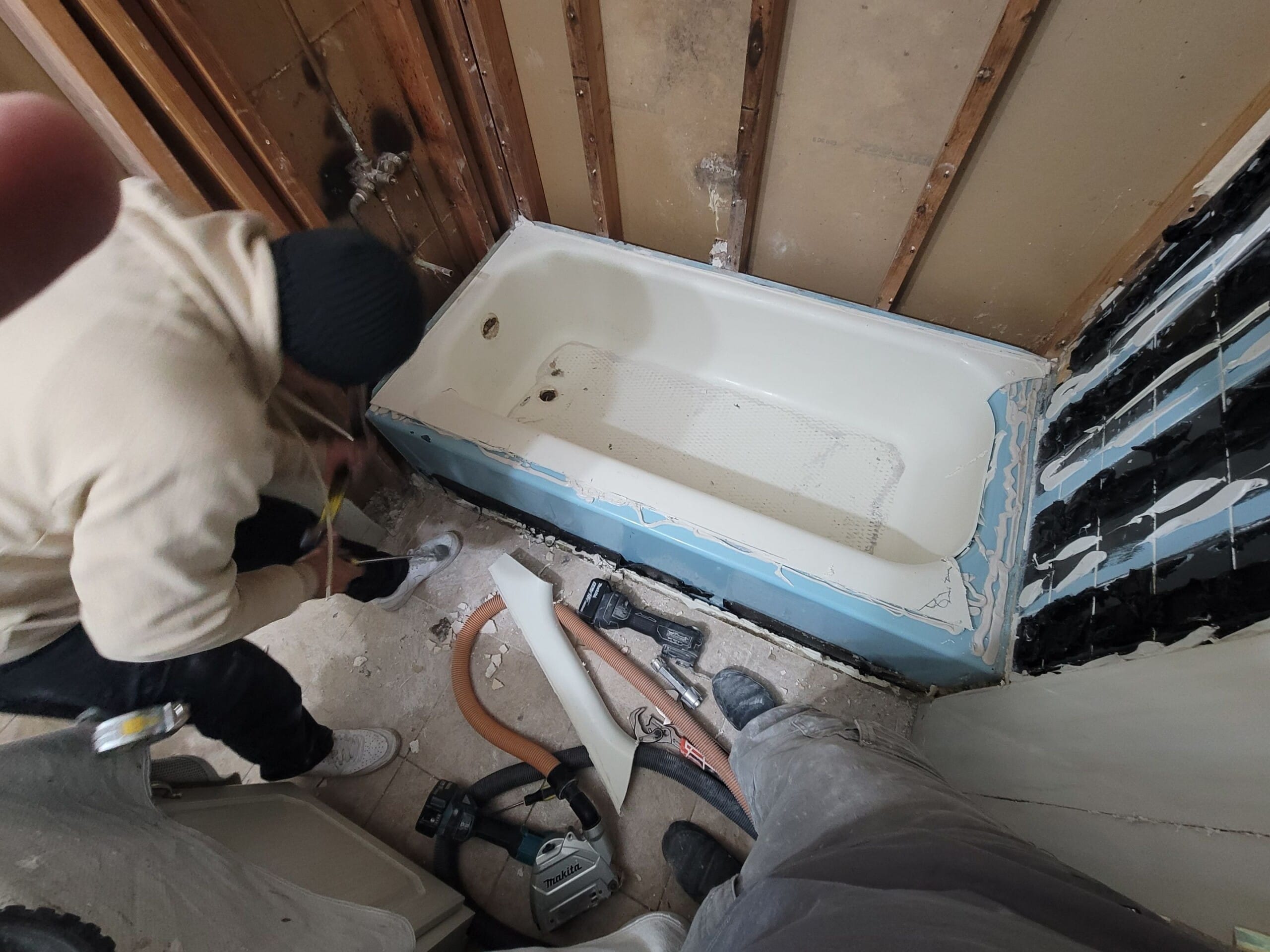 The company, a long-standing national franchise since the 1980s, is locally owned and staffed with certified in-house installers. The representative explained that the project would begin with a measure visit, followed by a one-to-two-day installation. Full demolition down to the studs was performed, followed by installation of a solid custom pan, new PEX plumbing, backer systems, and complete trash removal.