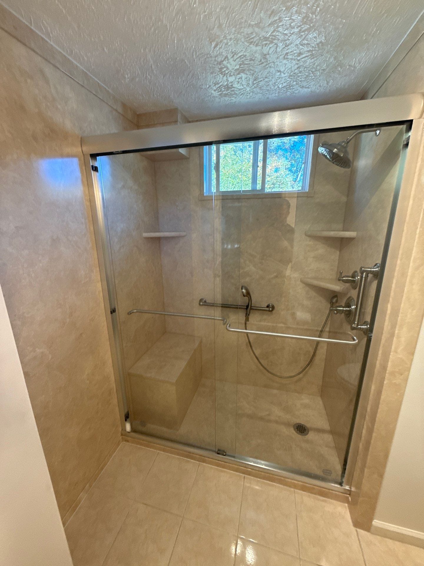 * Built-in bench for seated showering
