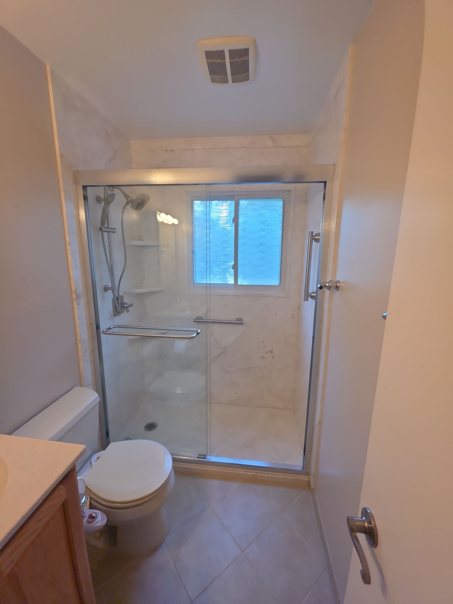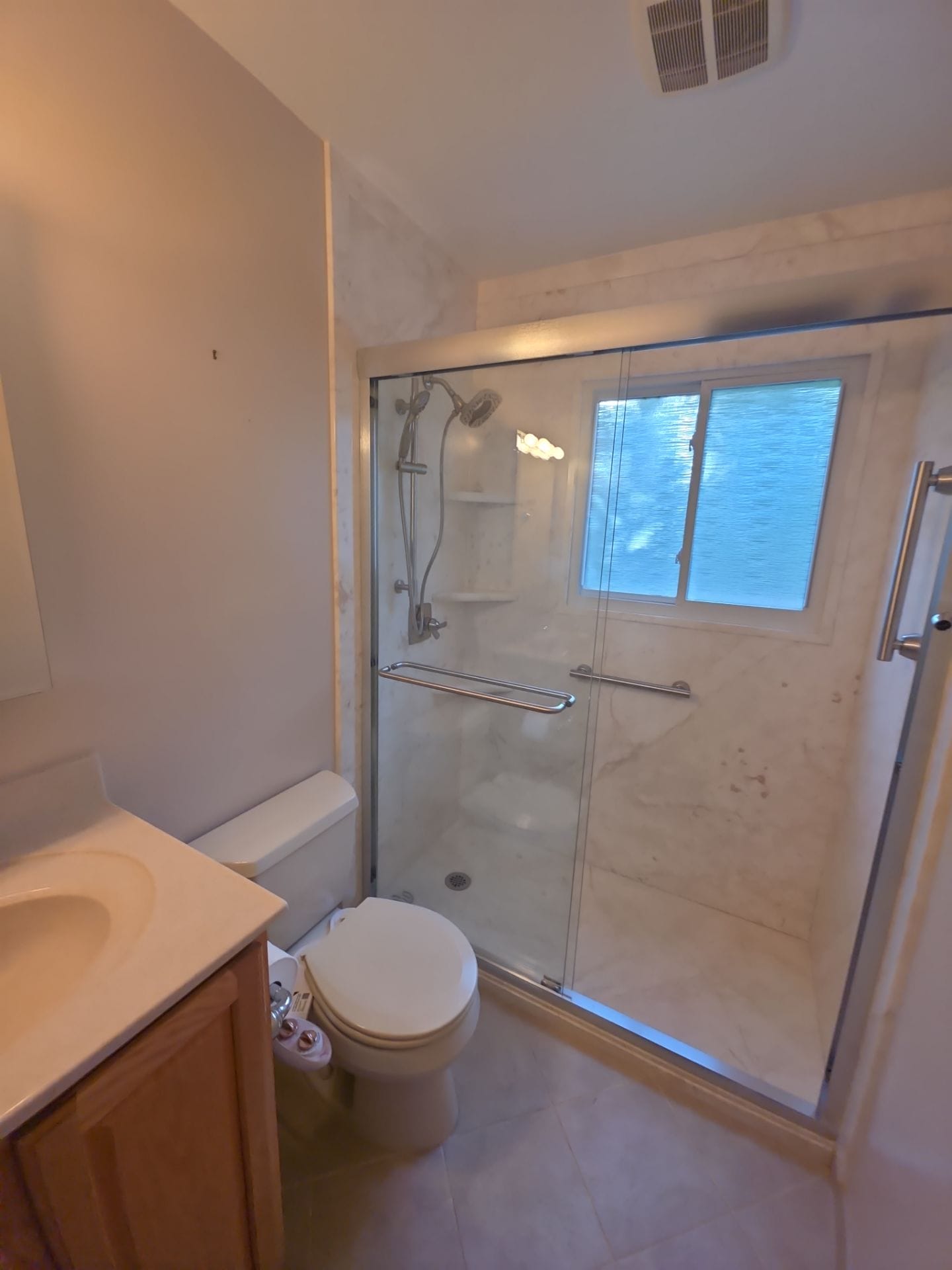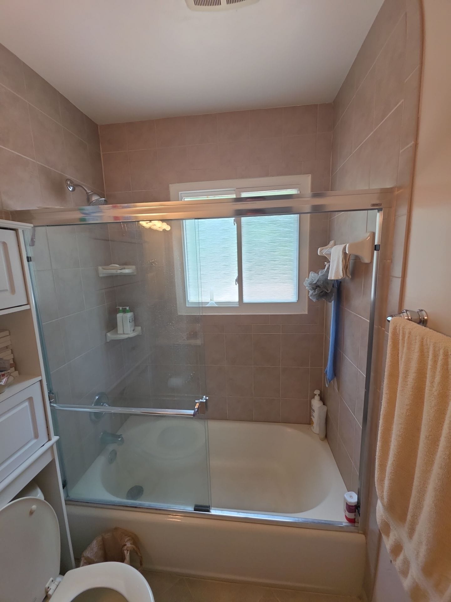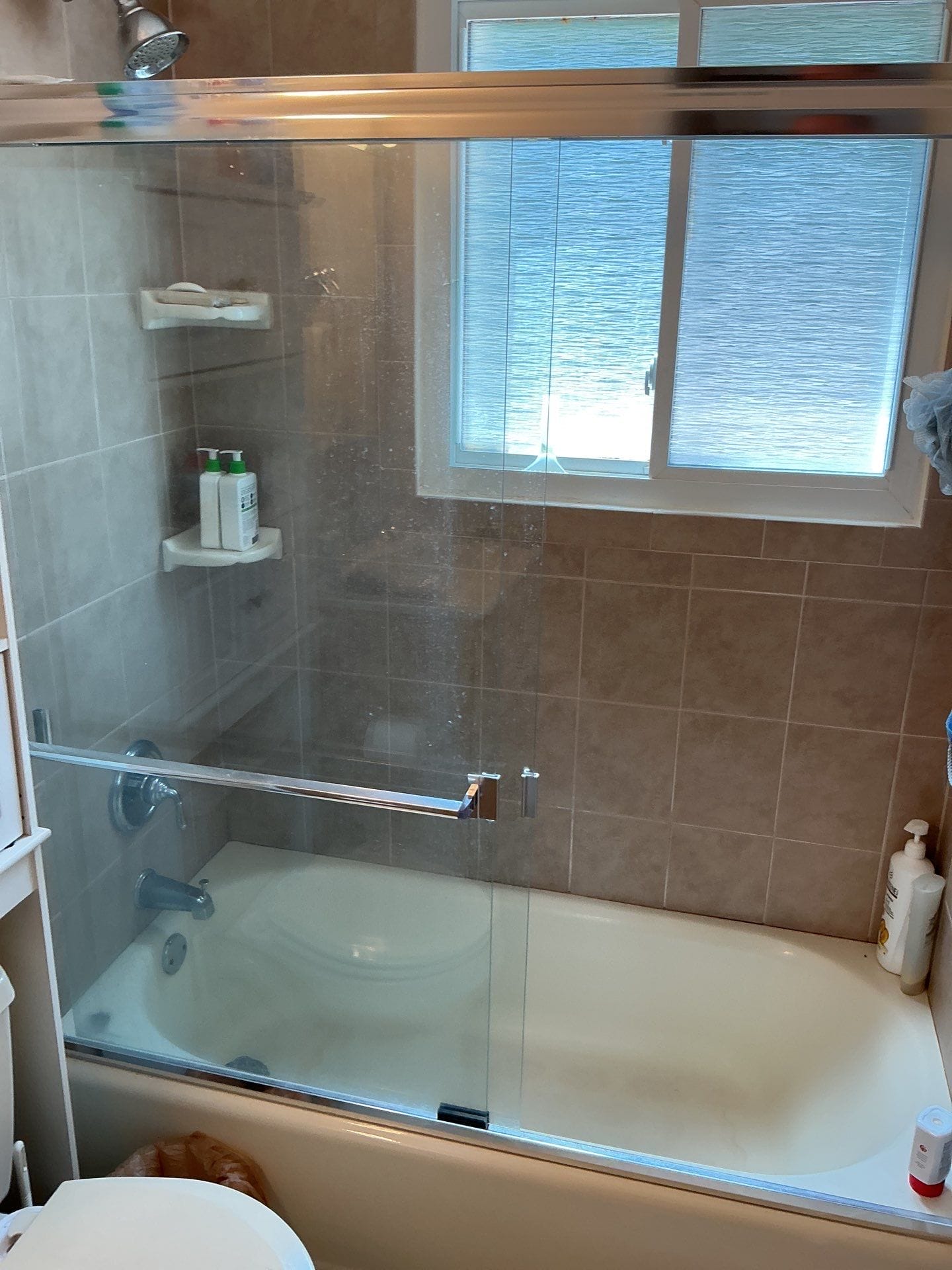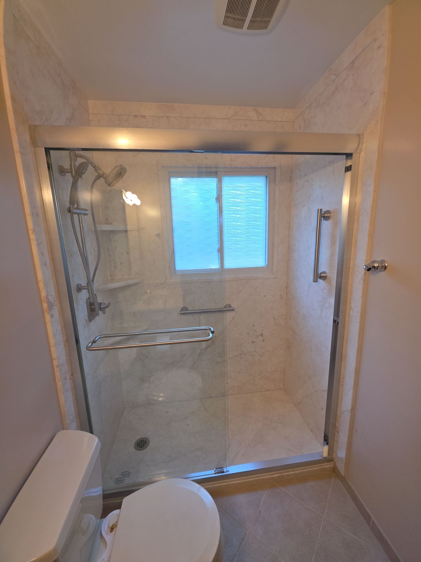 * Frameless 3/8” heavy glass enclosure with sliding door
