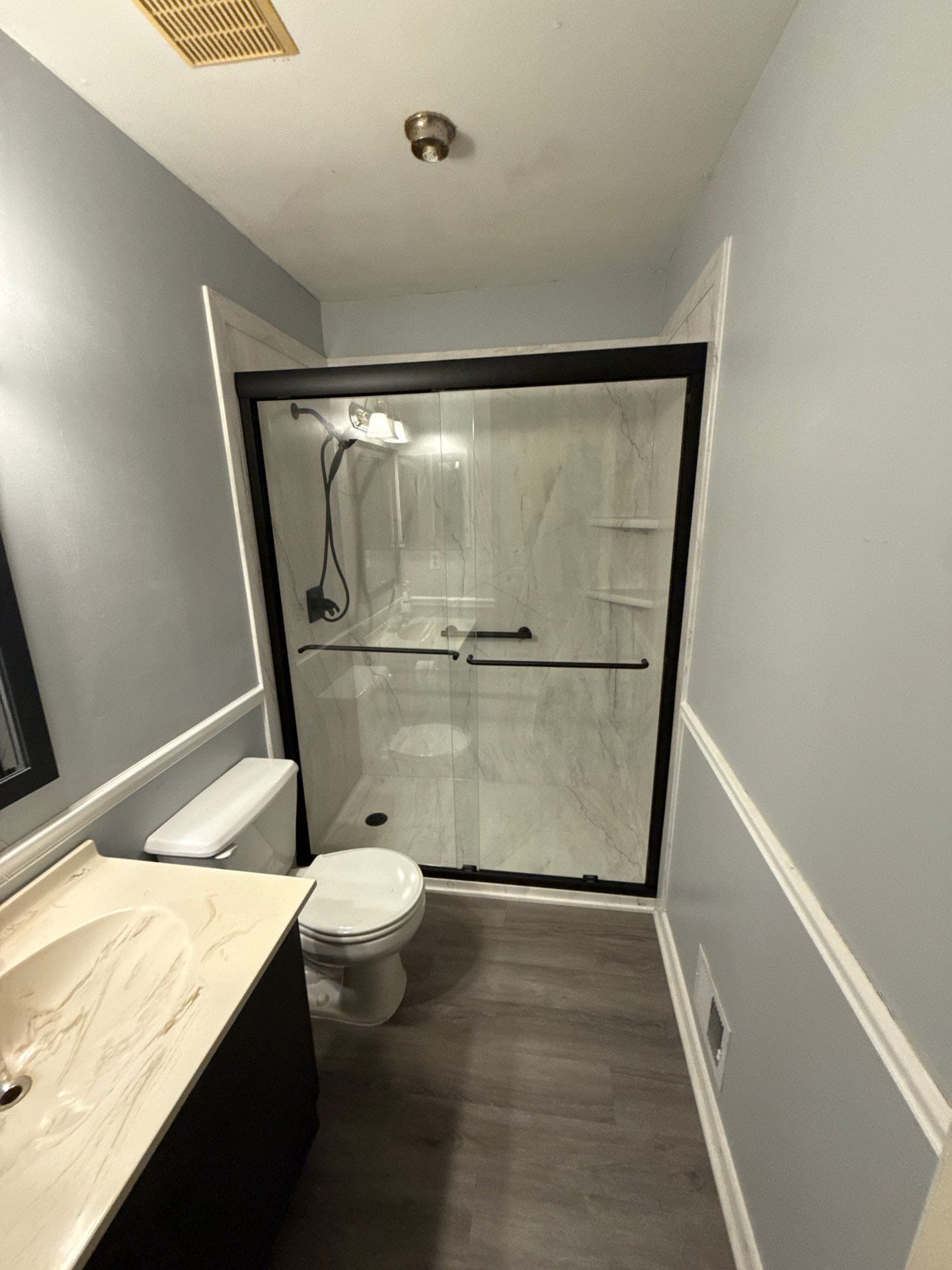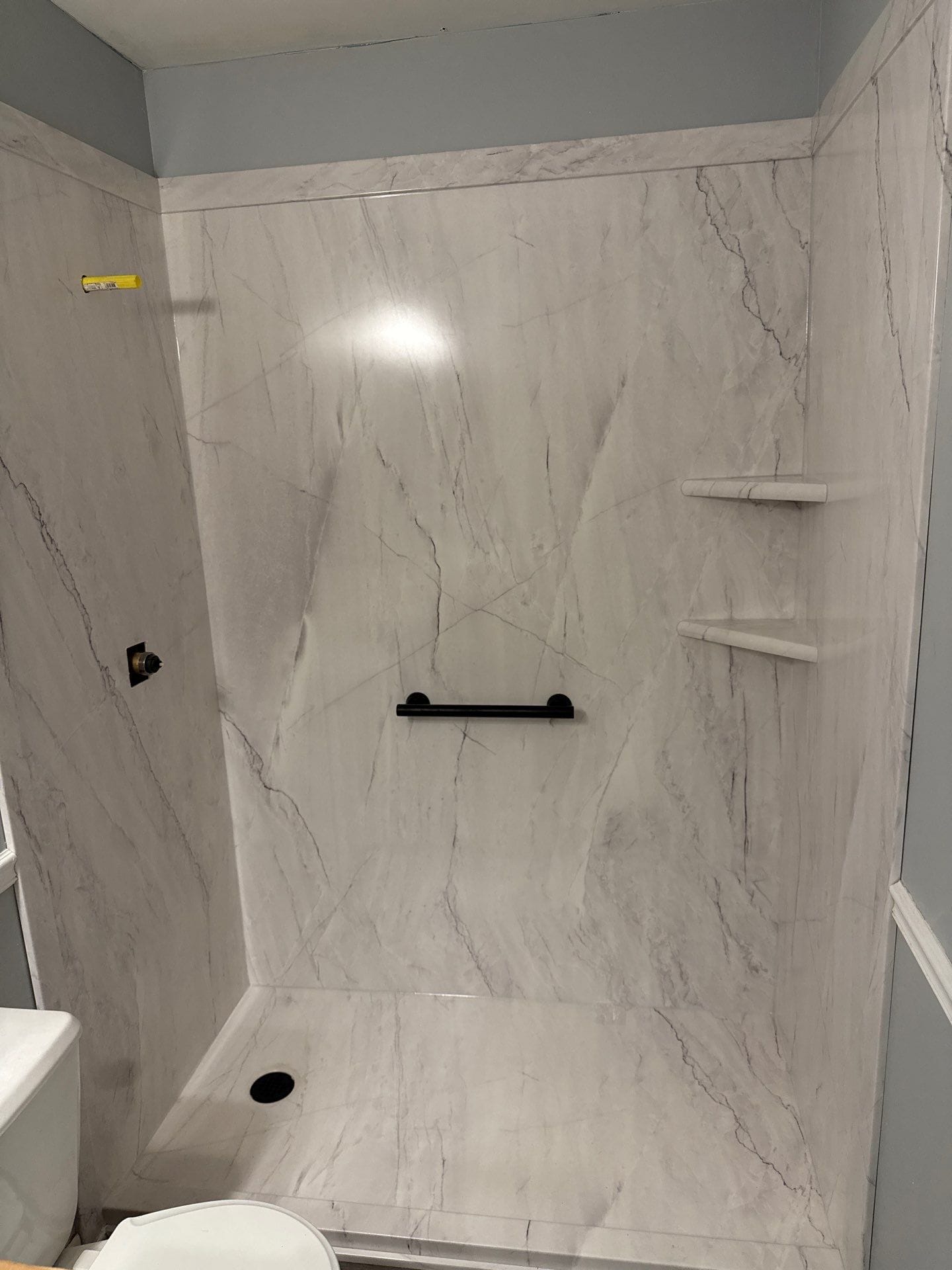 The installation process would take about two to three days and begin with complete removal of the existing tub and surround. Catherine explained that they would use a cement-coated foam waterproof backer board, followed by the installation of the new shower base, wall system, fixtures, and custom corner seat. All materials would be built on-site for a perfect fit, and the team would protect the customer’s home throughout the process with floor coverings and dust control. A senior technician would conduct a final walkthrough to ensure everything was completed to the customer’s satisfaction. Catherine also provided a written scope of work and walked the customer through each detail to ensure alignment with their needs and expectations.