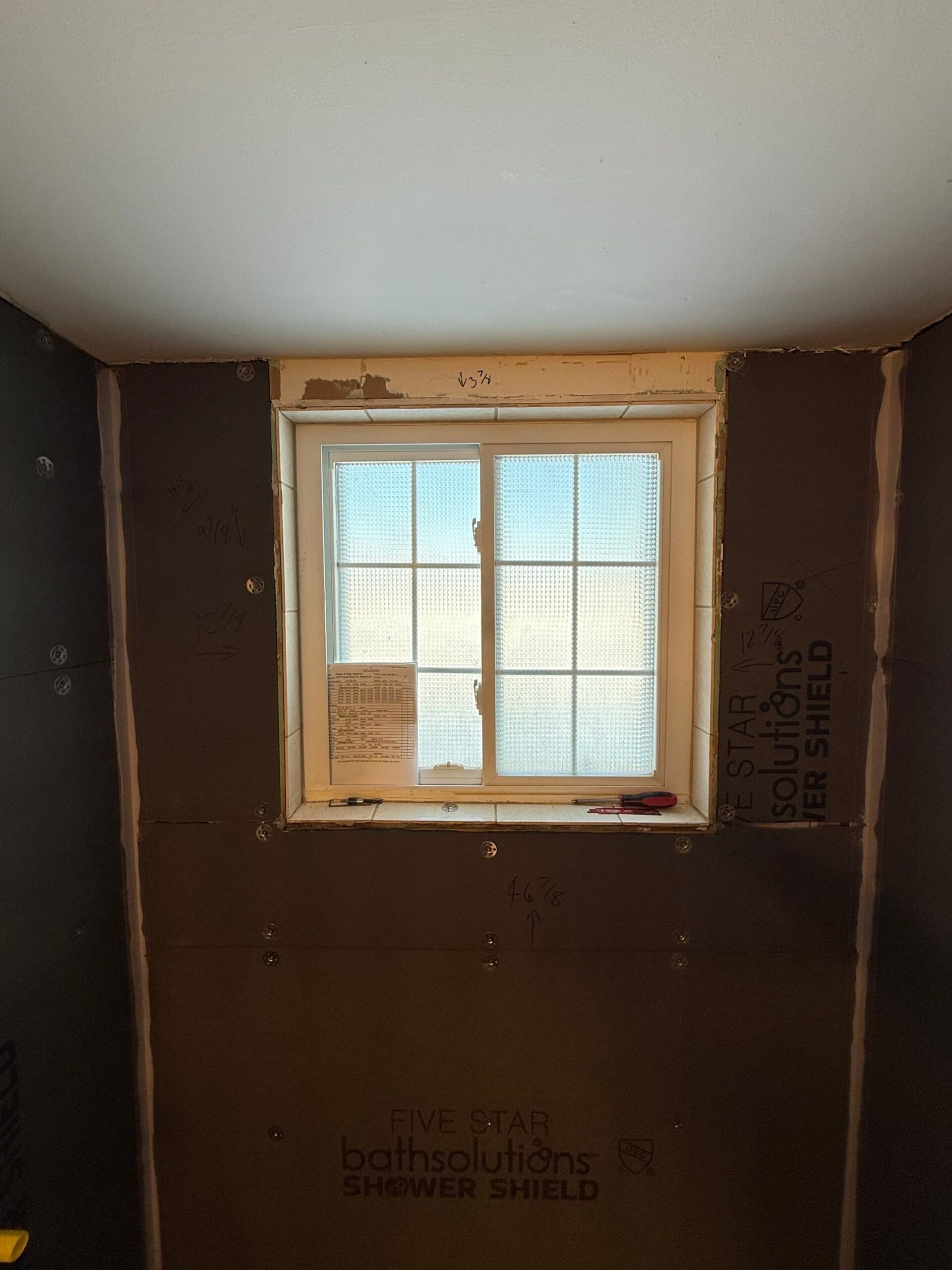 Installation included full demolition of the existing tub, tile surround, and soffit structure, followed by inspection of the subfloor and wall cavity for moisture or structural concerns. The shower space was rebuilt to extend higher within the alcove, creating a more open enclosure while maintaining the existing window for natural light. A new low-threshold shower base, waterproof backer system, and custom-fit wall panels were installed, along with integrated corner shelving and a mounted grab bar for support. Updated plumbing fixtures and a new shower system were installed, and the project was completed in approximately three days, including cleanup and final walkthrough.