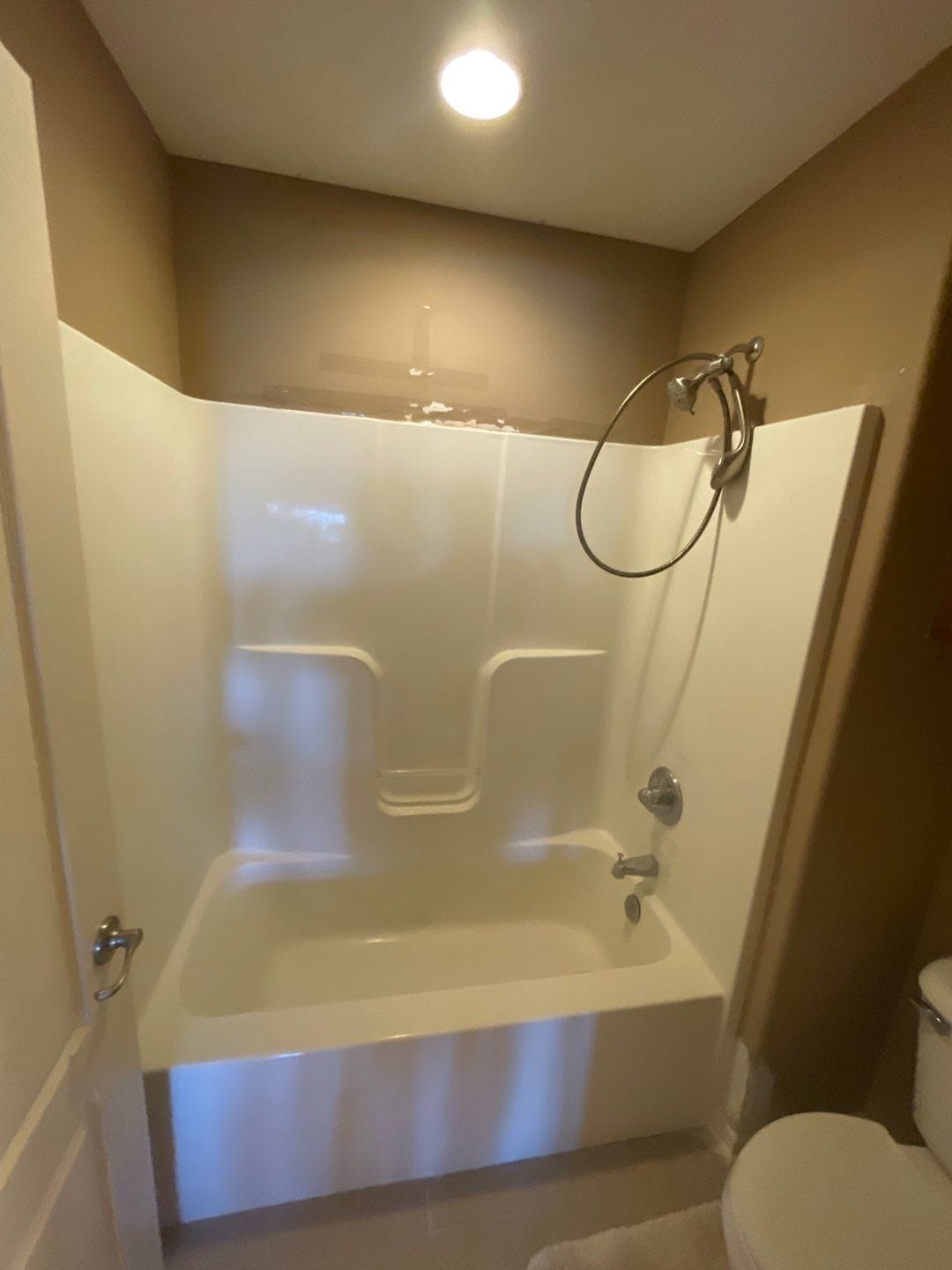 * Walk-in shower conversion with vein-pattern SmartChoice composite wall panels