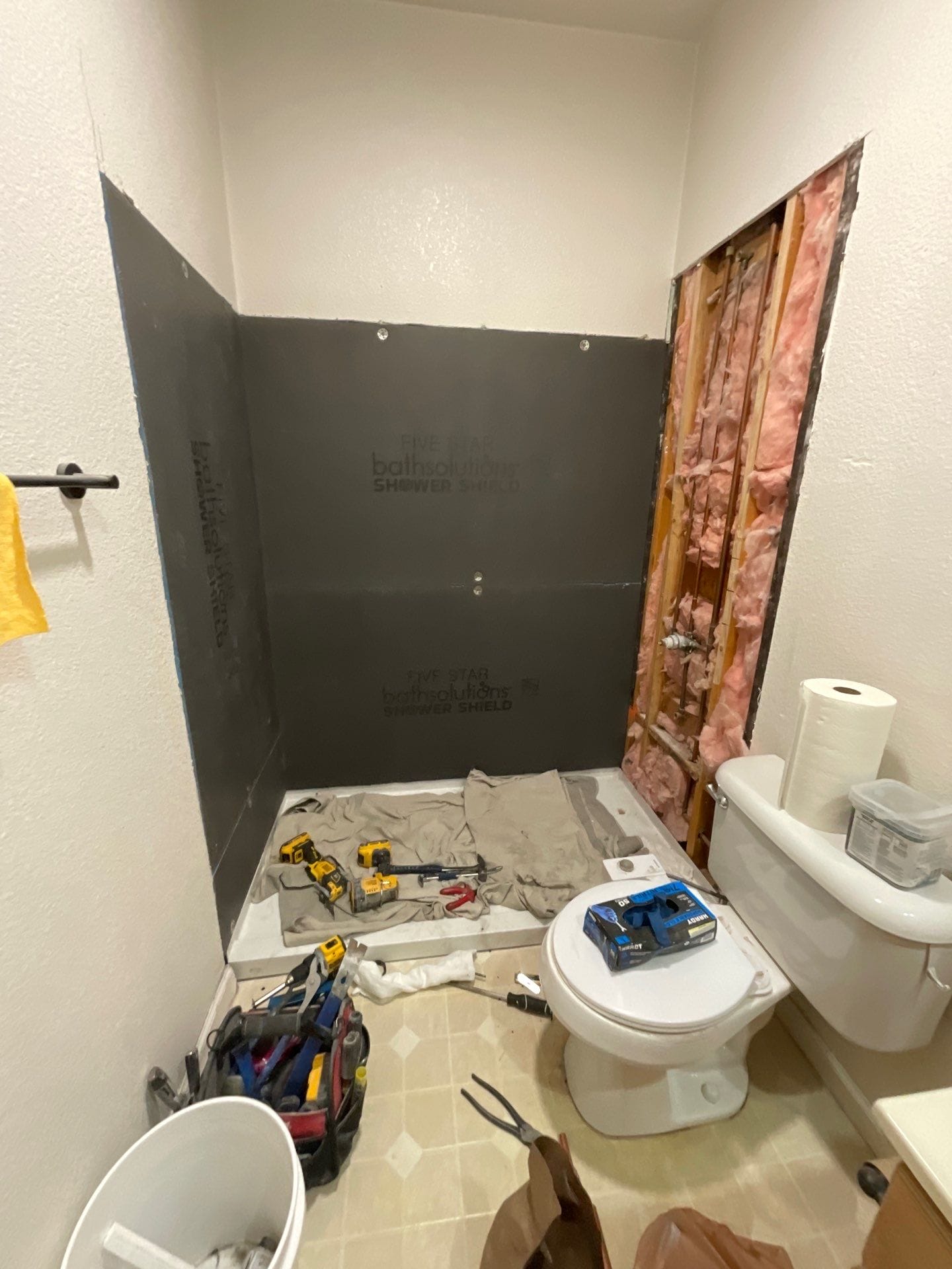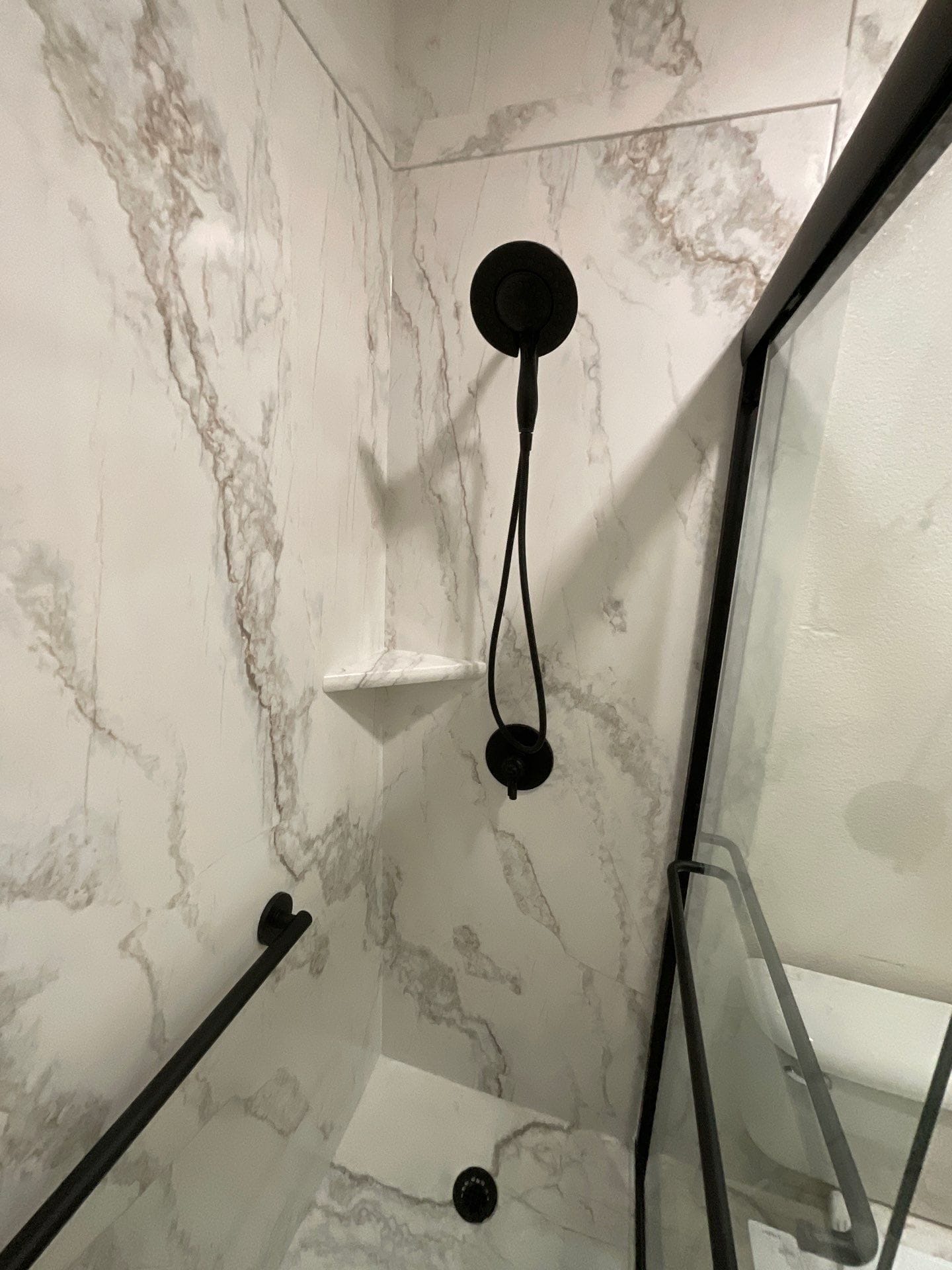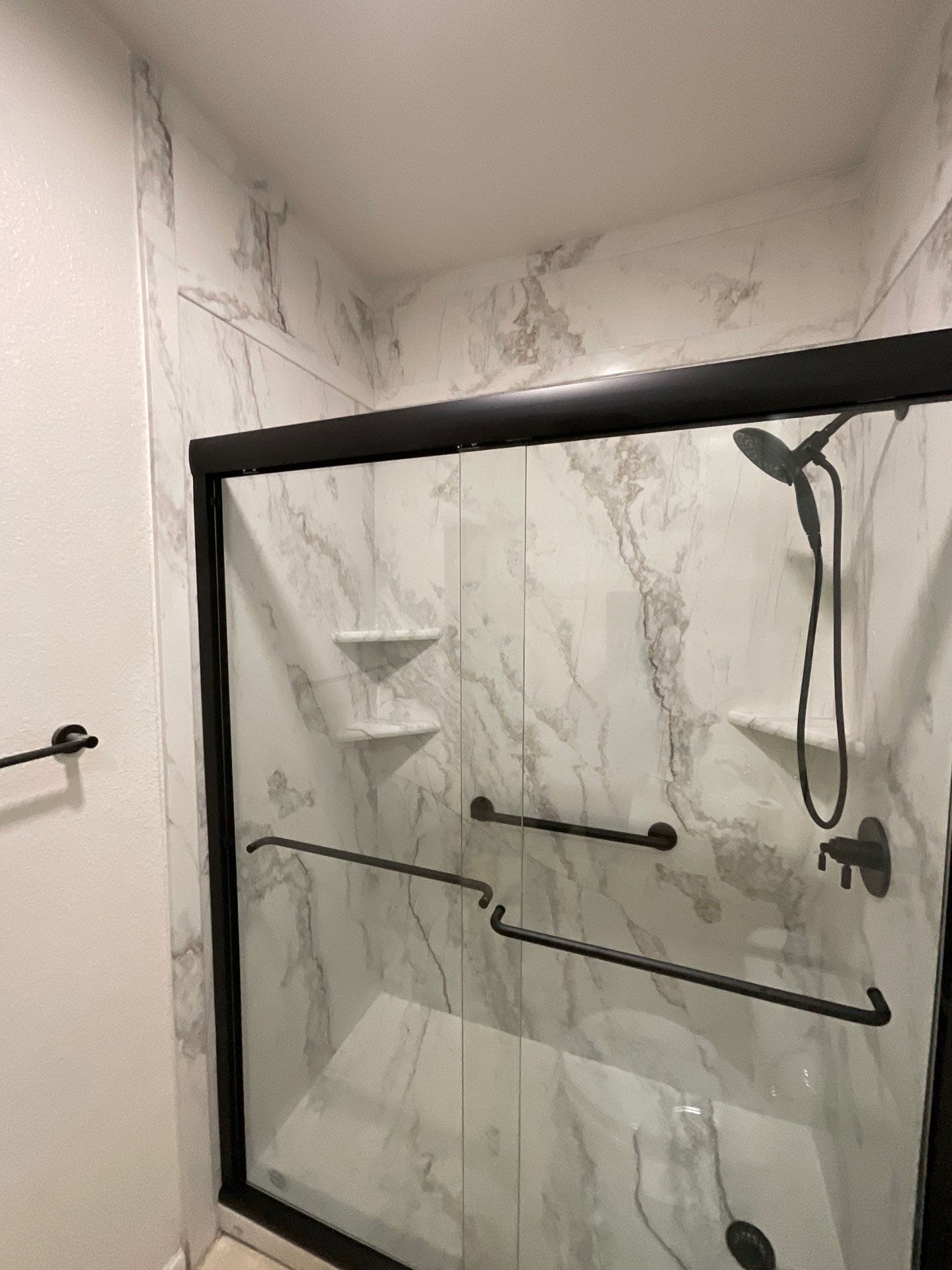 The installation process was clearly outlined and includes a complete tear-out down to the studs, inspection and repair of subflooring or framing if needed, and installation of new plumbing with temperature-balancing controls. The walls are reinforced with a cement-based ShowerShield waterproof backer board and sealed using marine-grade silicone for long-term protection. Placement of grab bars, shelving, and accessories was confirmed with the customer before final installation to ensure optimal comfort and accessibility. The representative emphasized that all work is completed by certified, background-checked in-house installers, not subcontractors, and that most installations are completed within one to two days. A 3D digital rendering was also provided to help the customer visualize their final design.
