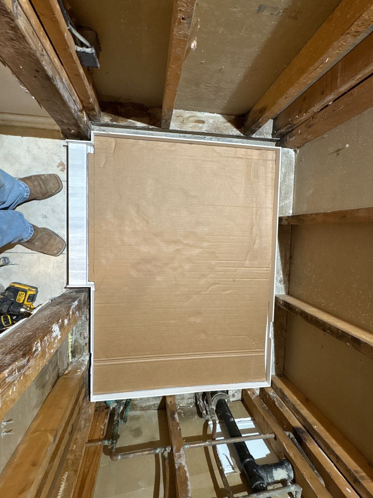 * Walk-in shower conversion with centered drain and adjusted plumbing