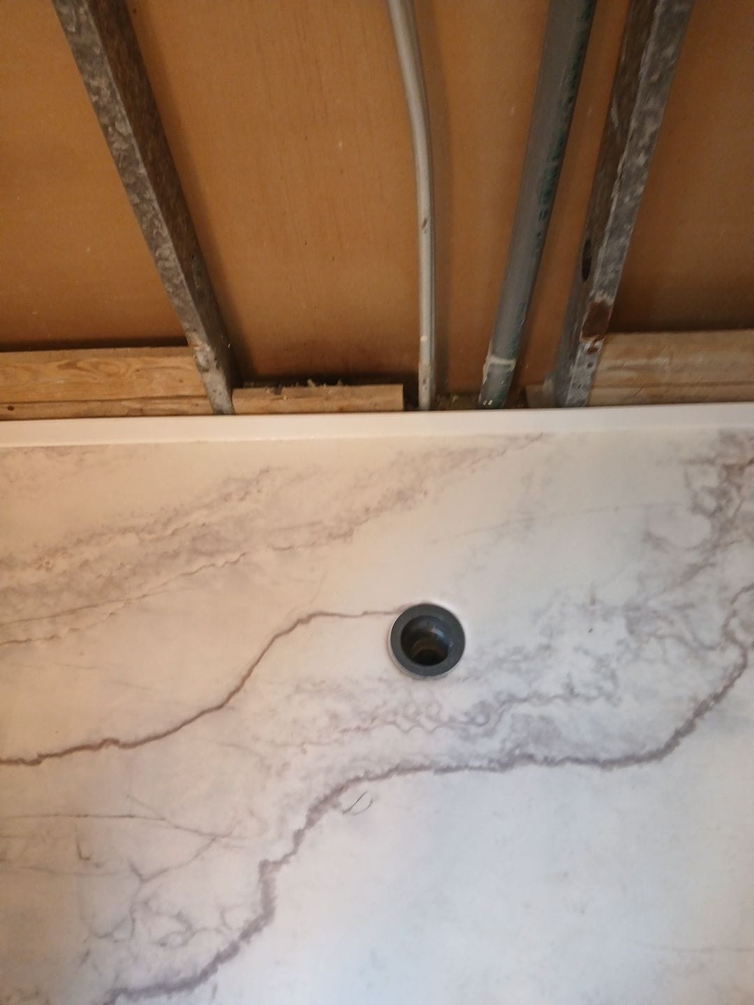 * Pre-sloped shower pan for proper drainage