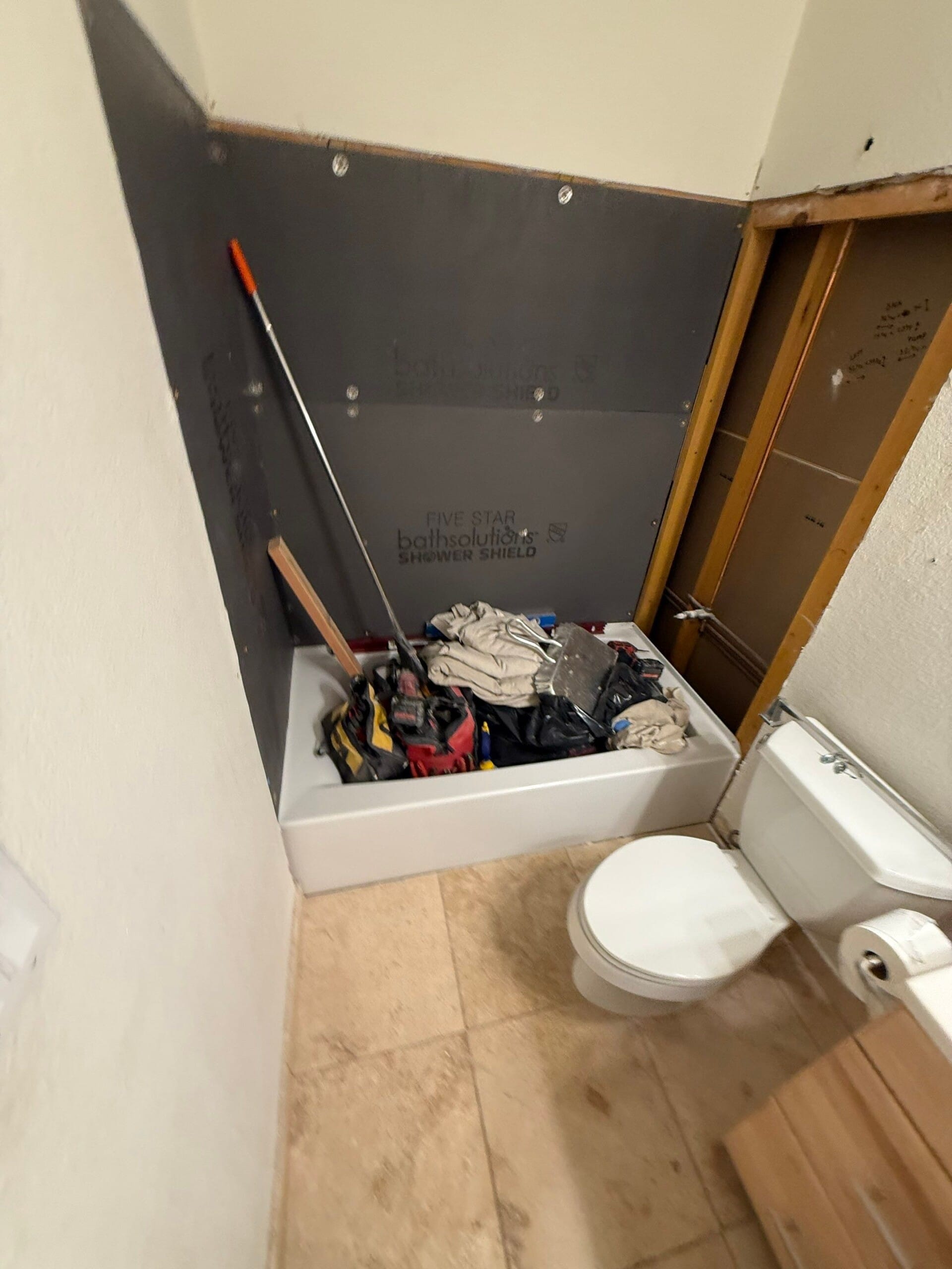 Zach Sterling introduced Five Star Bath Solutions’ proprietary Smart Choice system featuring antimicrobial, anti-scratch composite panels that are non-porous and grout-free. The bath was upgraded to a custom-fit stone composite tub designed for long-term durability and improved heat retention. Wall panels installed in a continuous marble-veined finish replaced the previous fiberglass surround. Zach emphasized that all adhesives and silicone used are marine-grade and mold-resistant, with installation completed only by certified in-house crews trained in Detroit. The package also included fully adjustable shelving and ADA-informed grab bar placements based on customer needs.