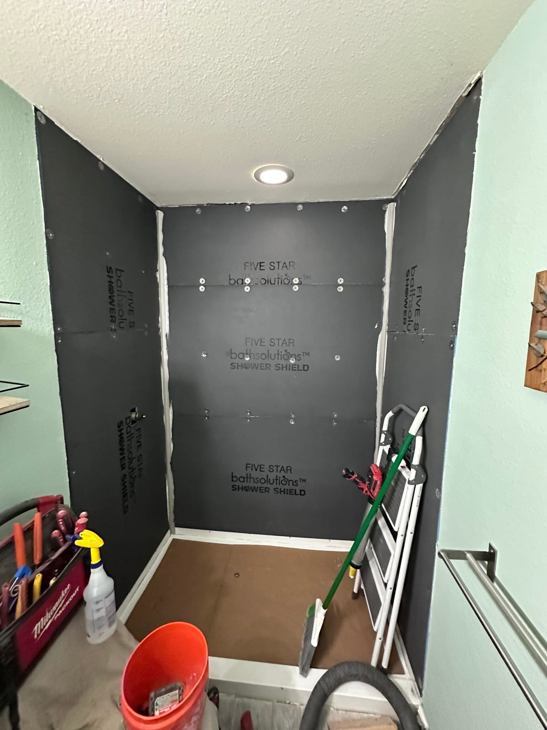* Shower shield waterproof backer board and corner lock system