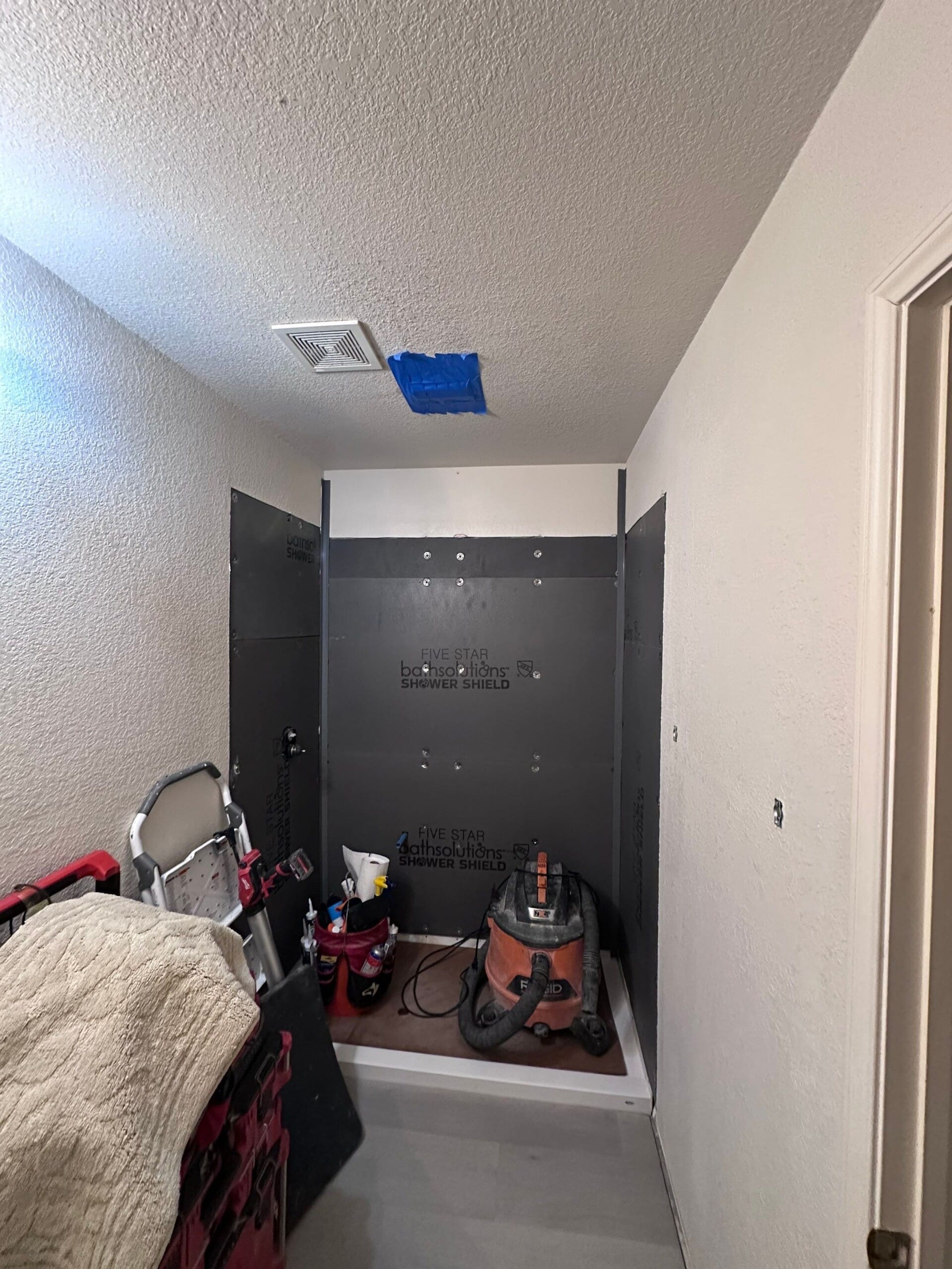 Installation was completed using custom-fit materials that were measured to ensure precise alignment within the existing space. The process included removal of the original tub and tile, preparation of the wall structure, and installation of the new shower base, wall panels, fixtures, glass sliding enclosure, and accessories. Worksite protection was maintained throughout, with attention to cleanliness and organization. The project was completed within a one to two day timeframe, with all debris and removed materials fully cleared at completion.