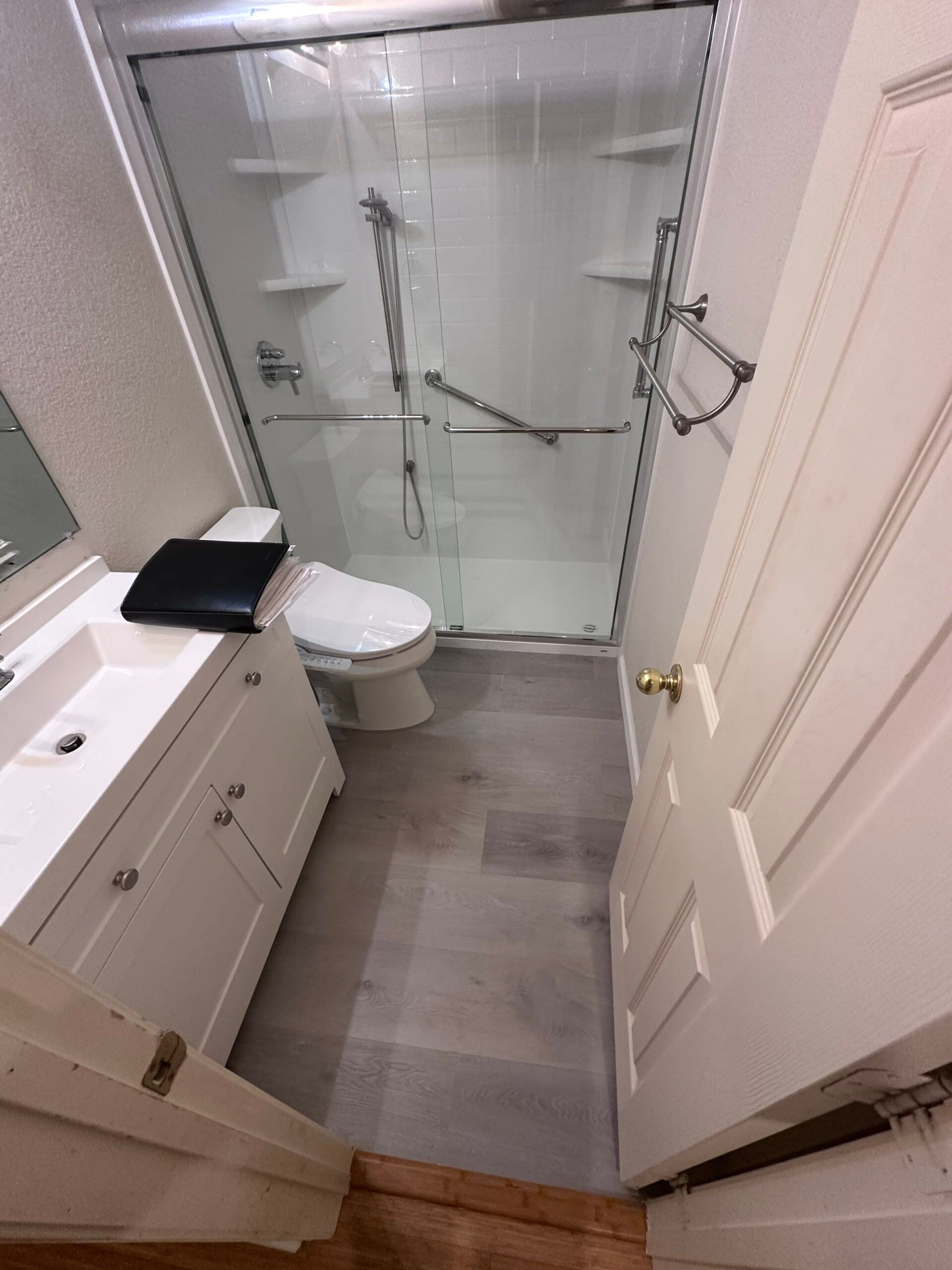 * Wall-mounted grab bars for accessibility and support