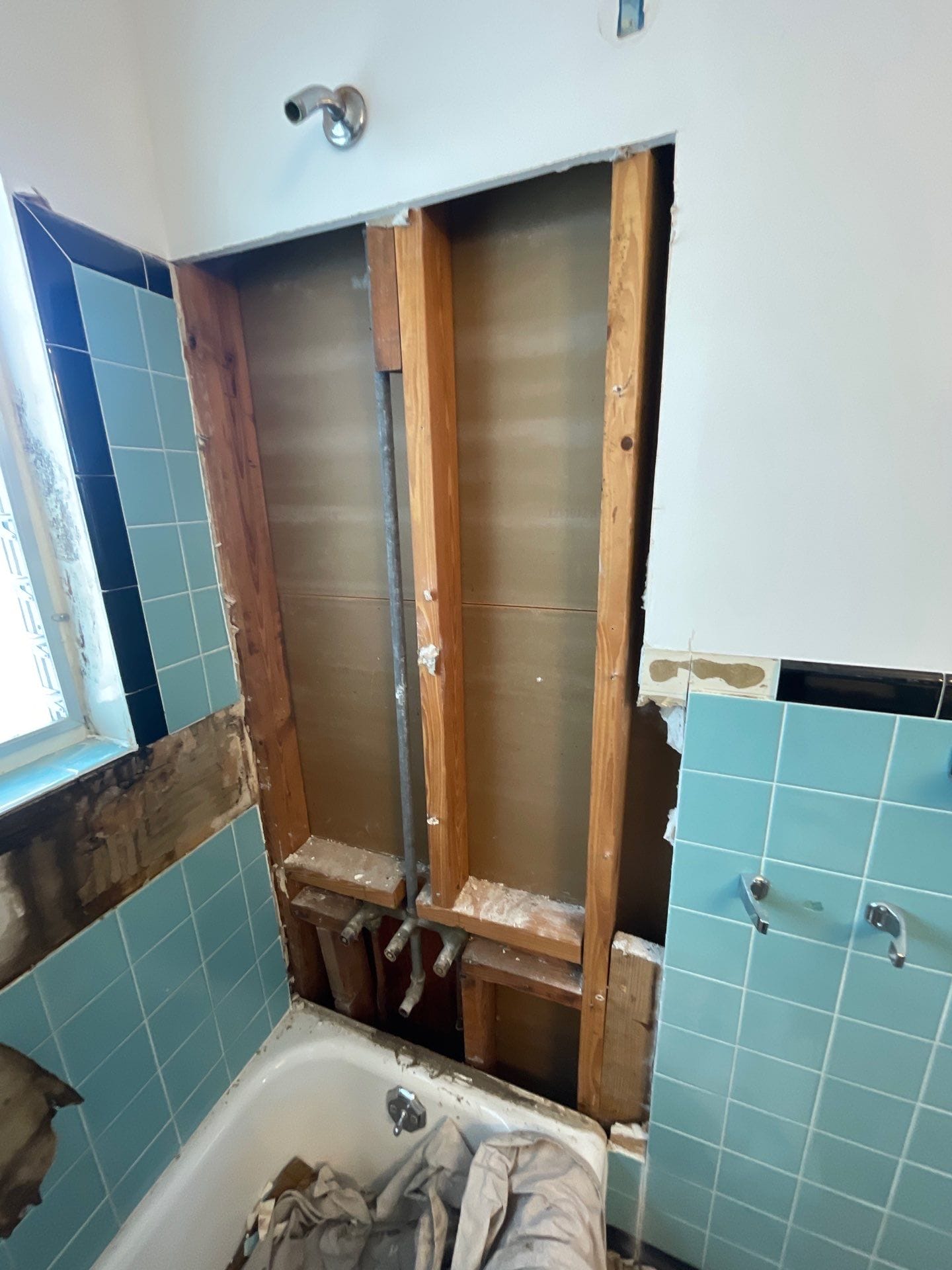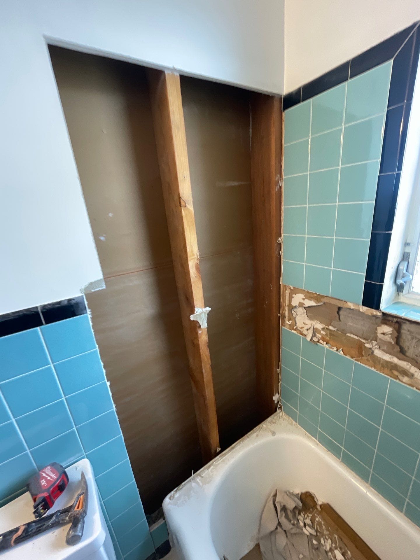 * Tear-out of existing tile down to studs
