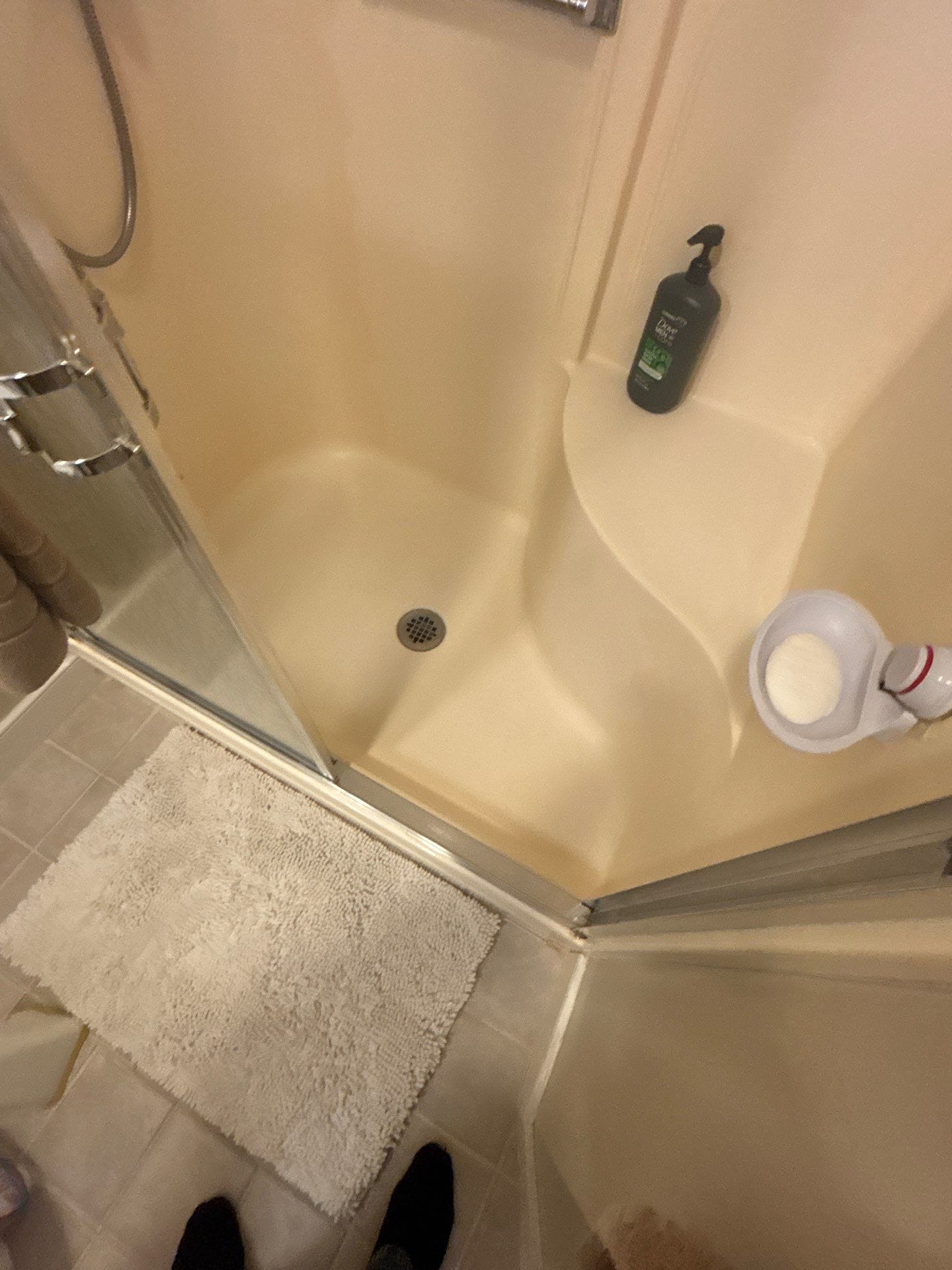 * Walk-in shower with low-threshold composite base