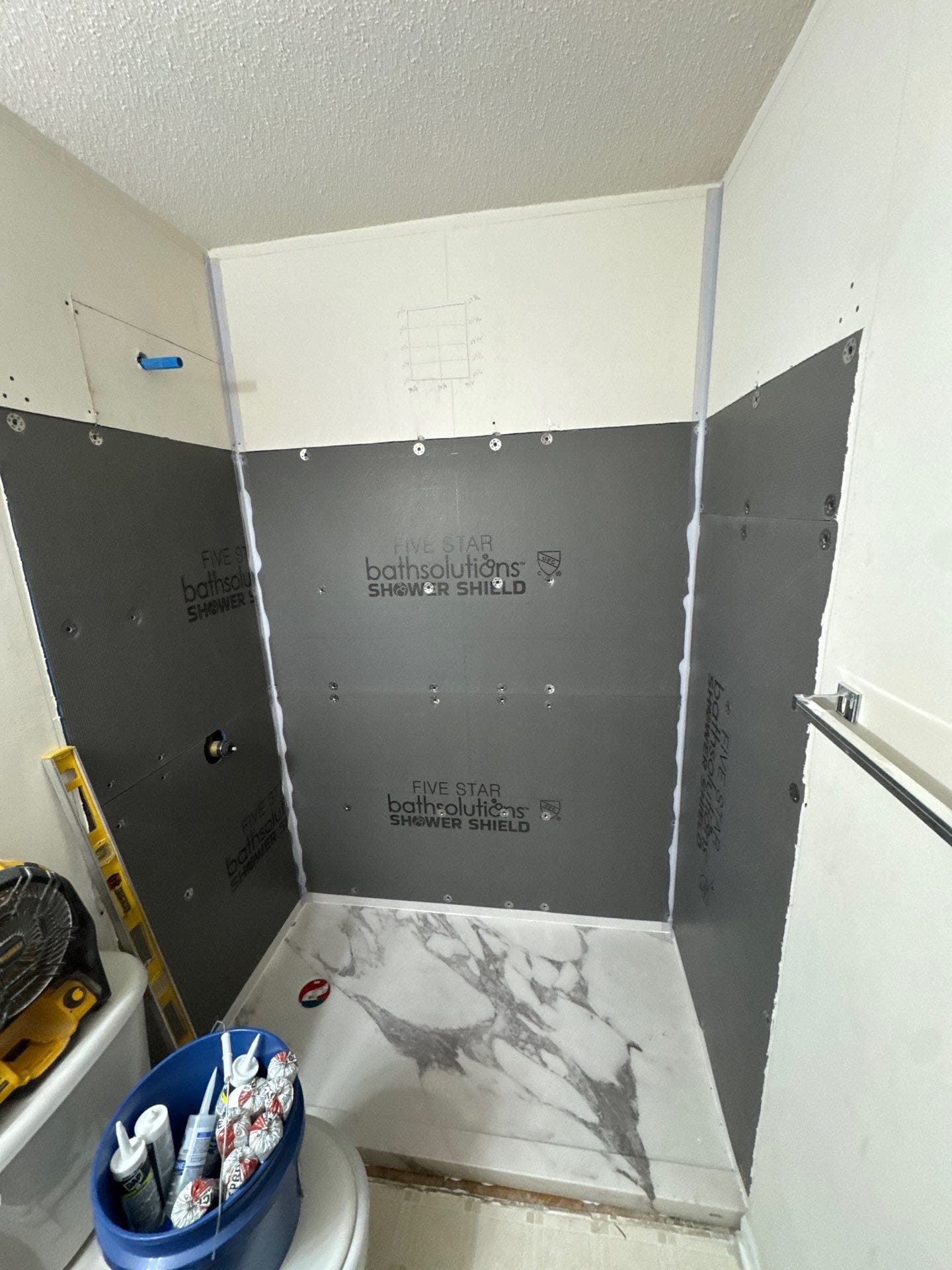 * Three safety grab bars with secure backing (horizontal and vertical)