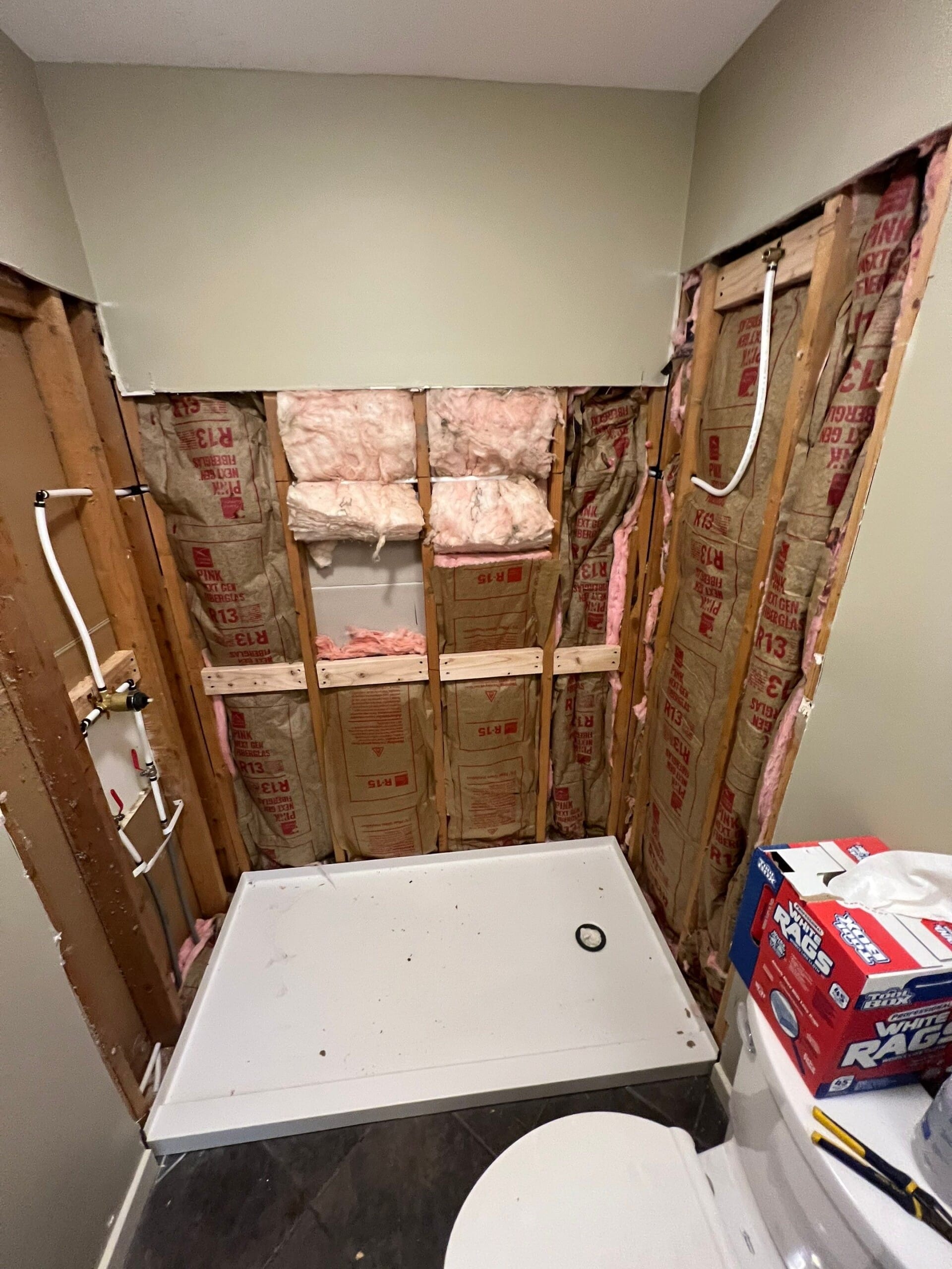 * Tub-to-walk-in shower conversion with low-threshold entry