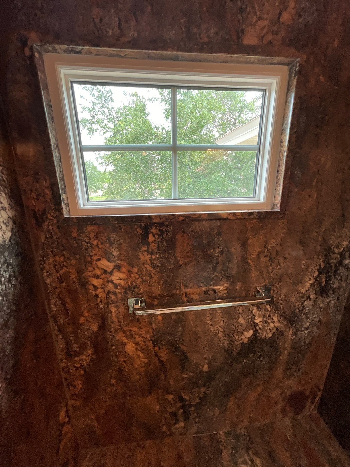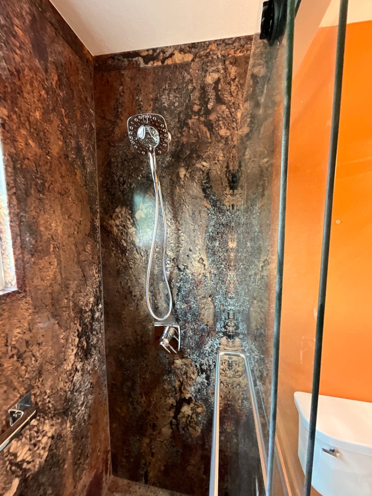 The Representative presented a composite wall system designed to replicate the appearance of natural stone while eliminating grout and reducing maintenance. The selected finish features a darker, high-contrast stone pattern with natural variation, creating a bold and cohesive look throughout the enclosure. The system includes a waterproof backing structure to protect against moisture intrusion and long-term wear. The company’s specialized focus on bathroom wet areas and use of durable, low-maintenance materials reinforced confidence in both performance and longevity.