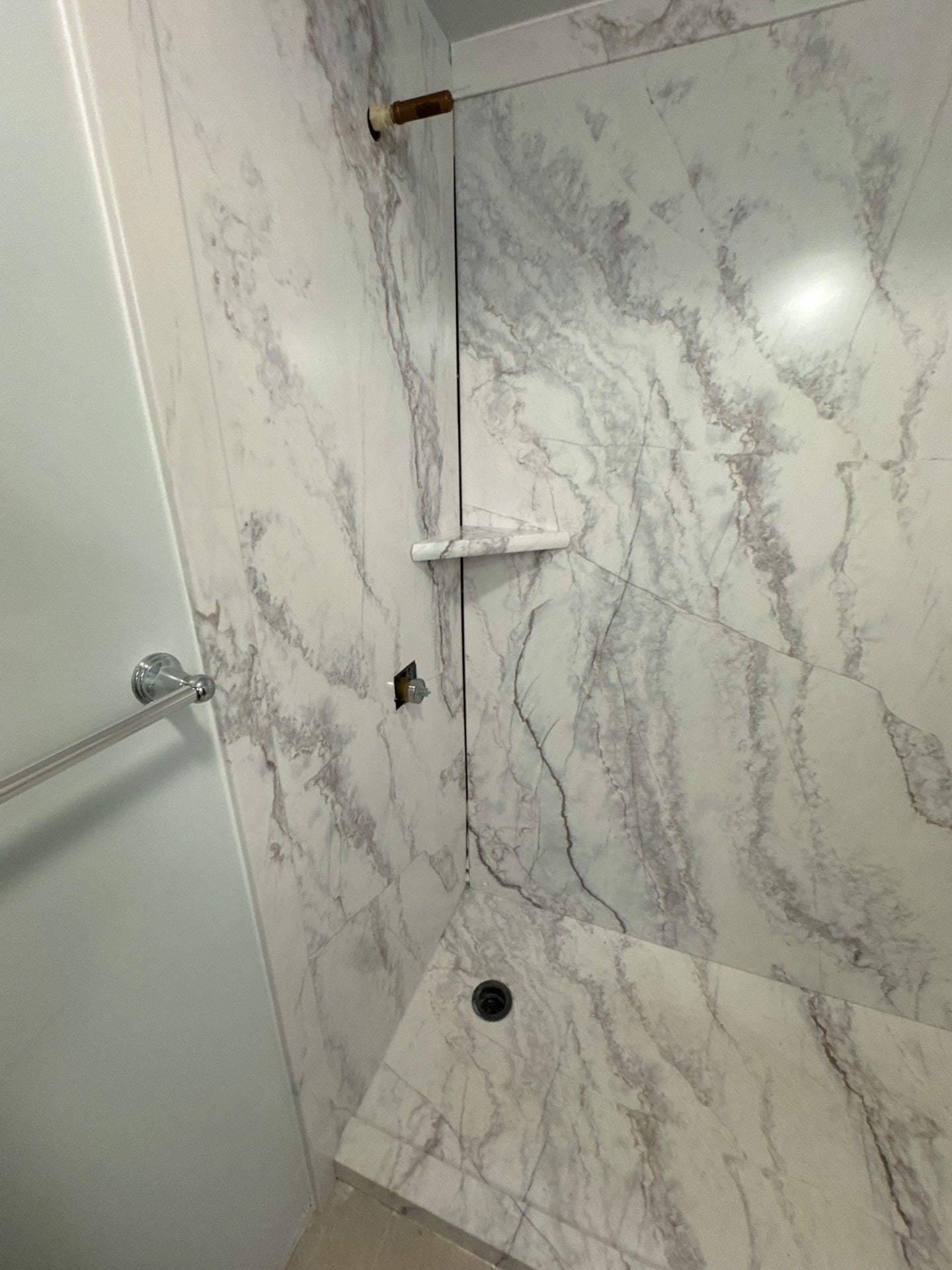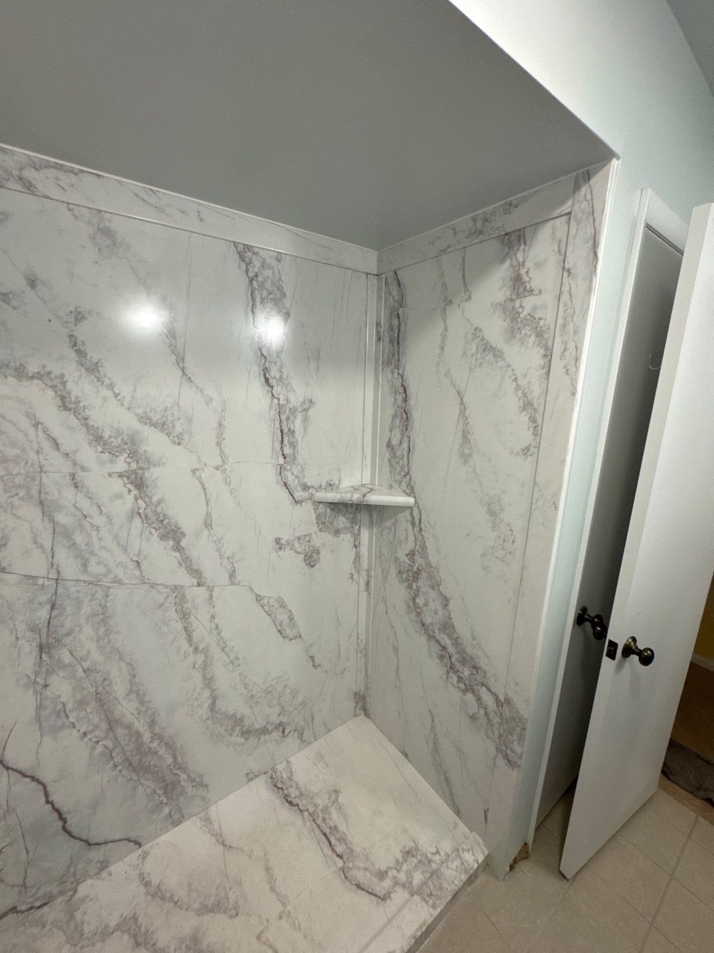* Smart Choice grout-free composite wall panels with marble-style veining