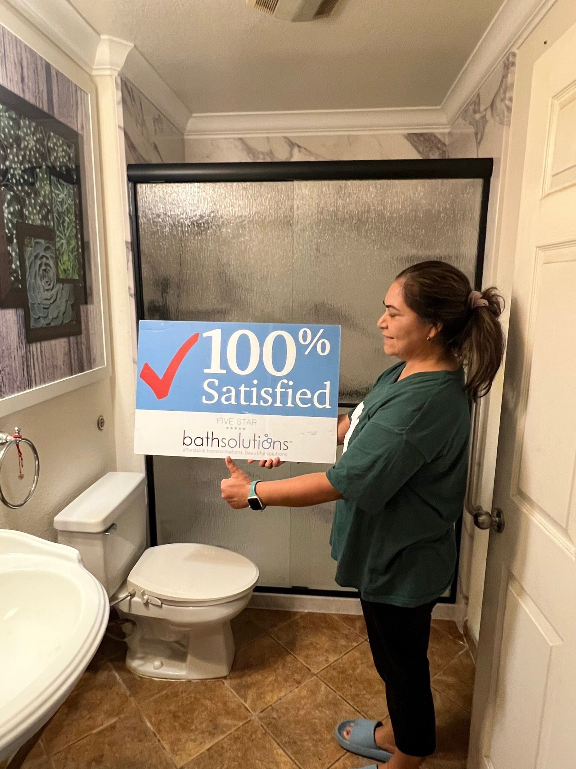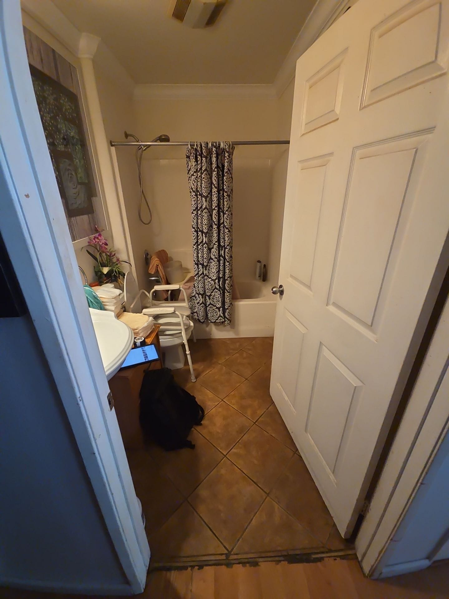 * Tub-to-walk-in shower conversion with neutral resale-ready finish