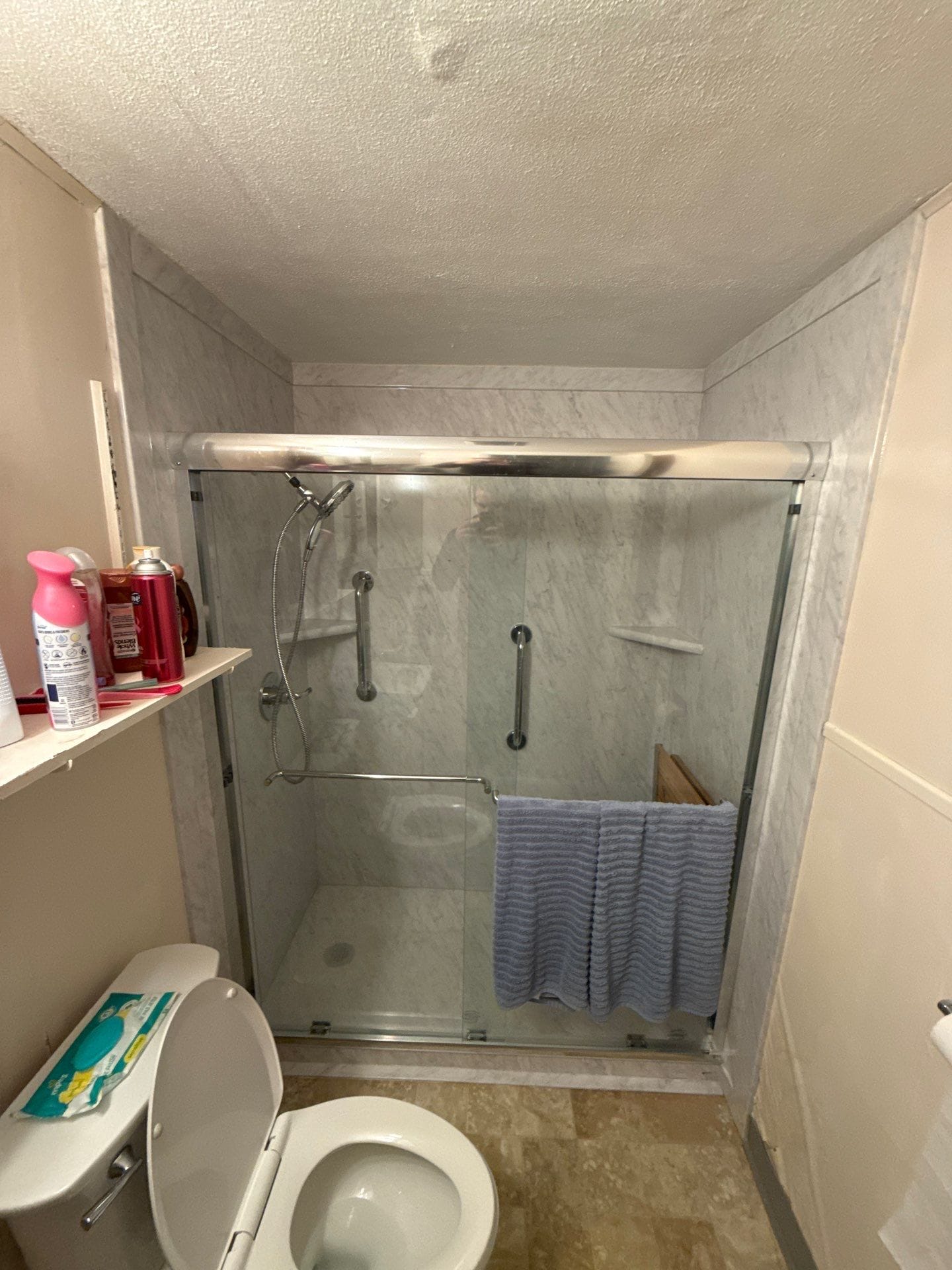 * Sliding glass shower door enclosure
