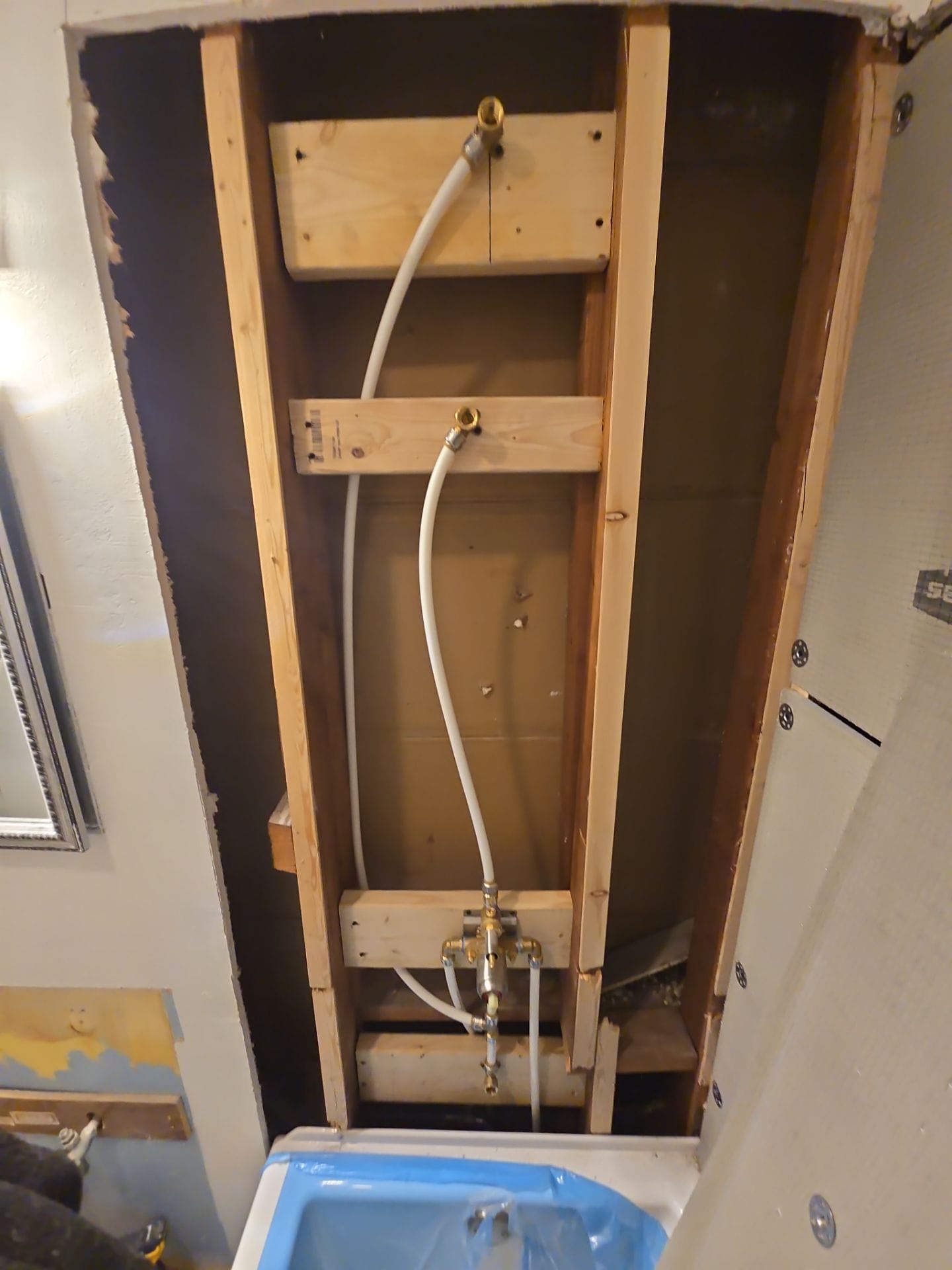 As the customer provided the original tub concept and materials were revised during the project, Five Star Bath Solutions offered a labor-only warranty. Michael clarified that the team would remain available for any follow-up support and that all installers were fully insured and background-checked. The labor scope included full tear-out to studs, mold remediation as needed, cast iron tub removal in sections, fixture and plumbing upgrades, panel installation, and full cleanup. The team also coordinated all measurements with the project manager before ordering materials, and floor protection was provided throughout the home during demo and install.