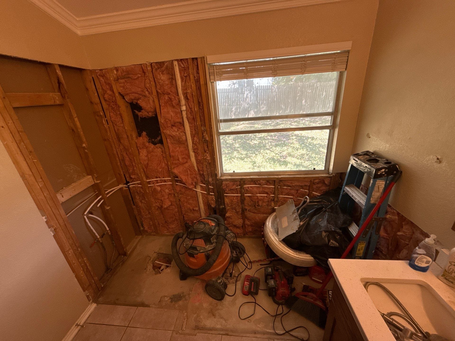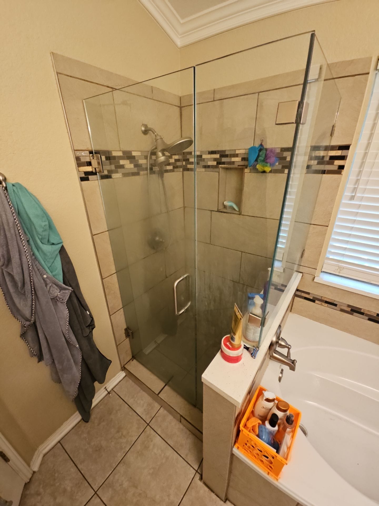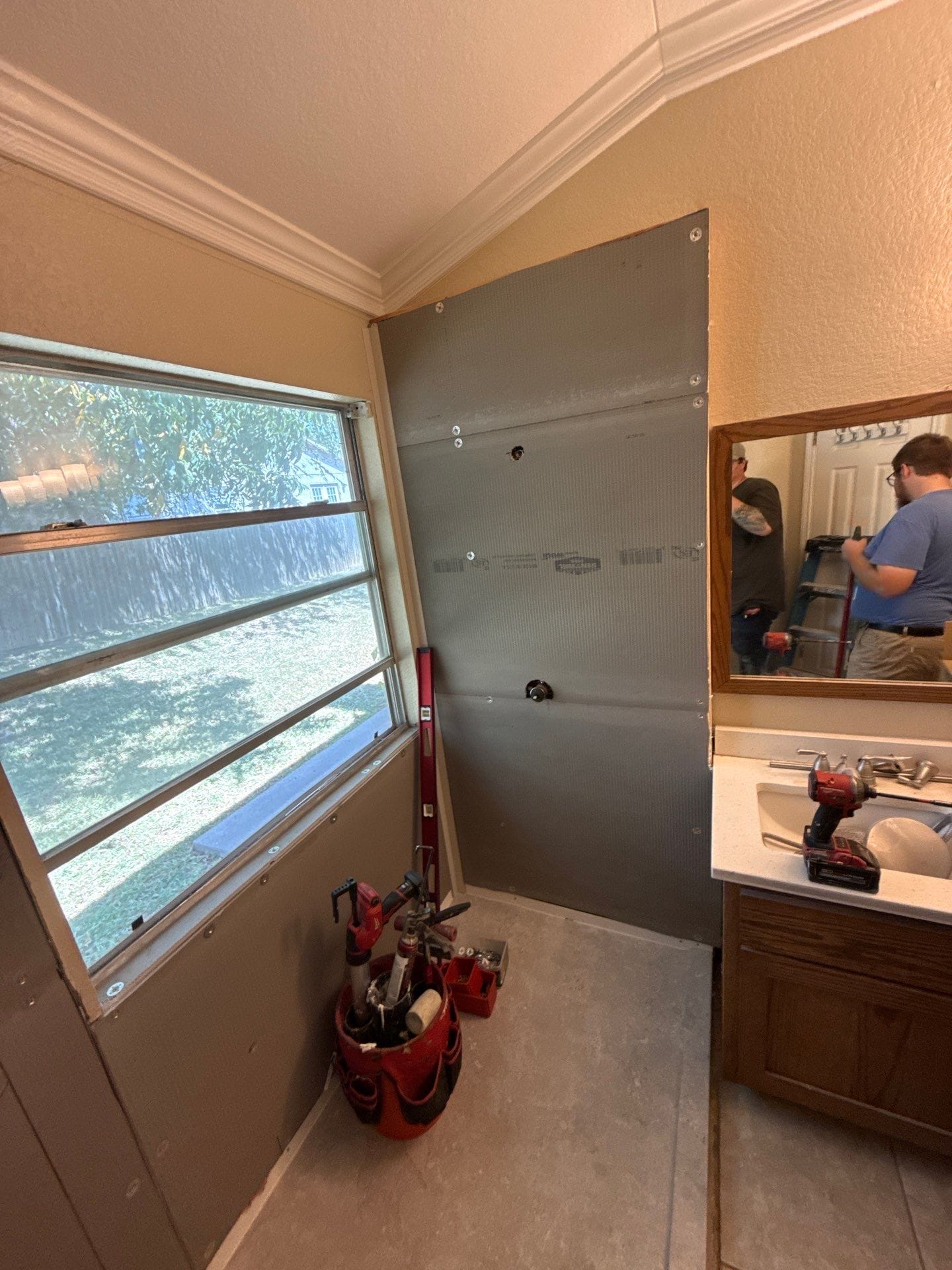 * Replacement of tub and framed shower with single walk-in layout