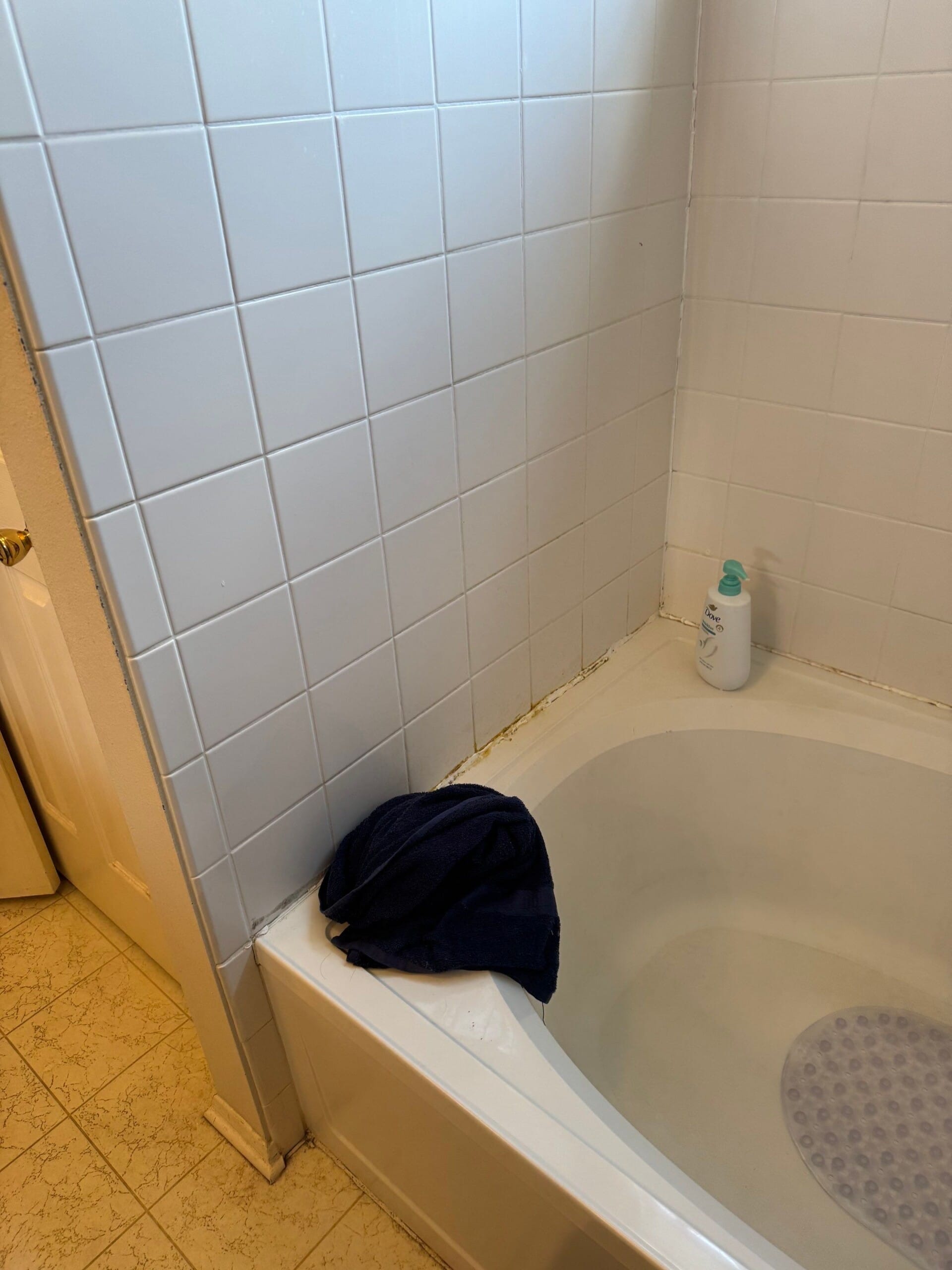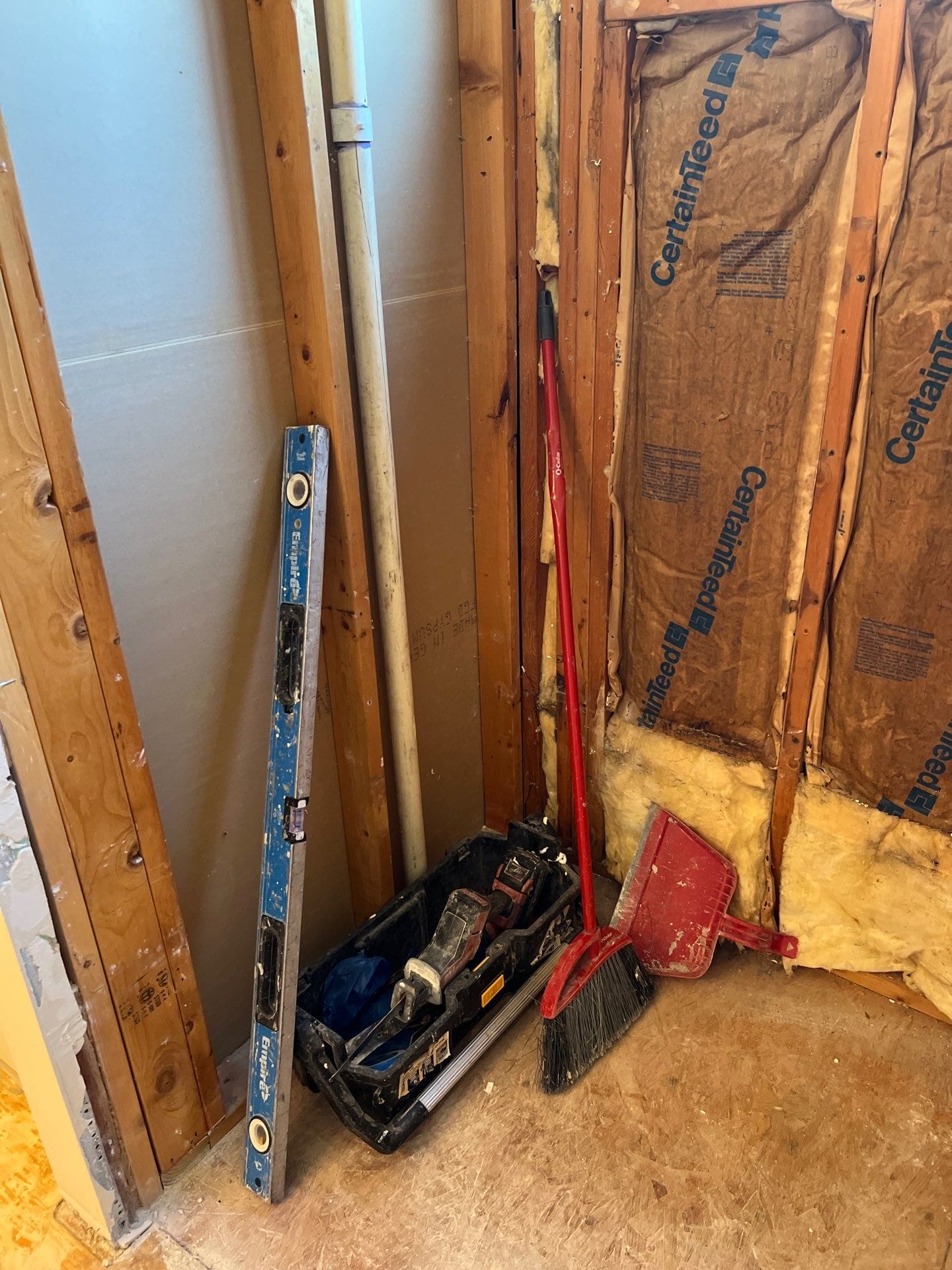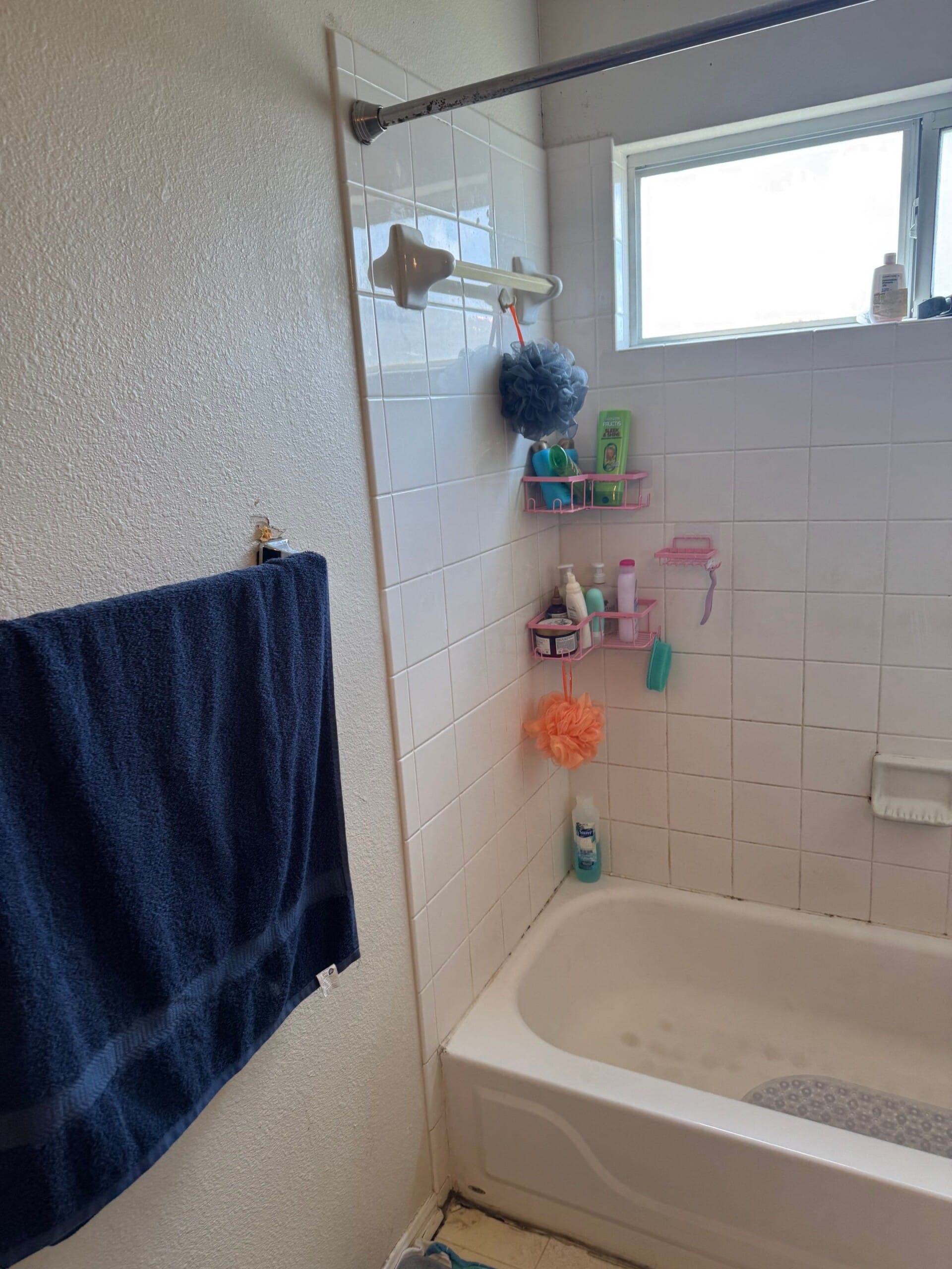 Installation included full demolition down to the studs, subfloor inspection, and installation of a thermal-insulated base paired with waterproof backing. A sliding glass door system with matte black framing was installed for improved water containment and visual structure. A recessed niche was built into the wall for product storage, and wall panels were placed in a staggered stone pattern across all surfaces. All plumbing was updated to code, and the space was completed and cleaned within a two-day window.