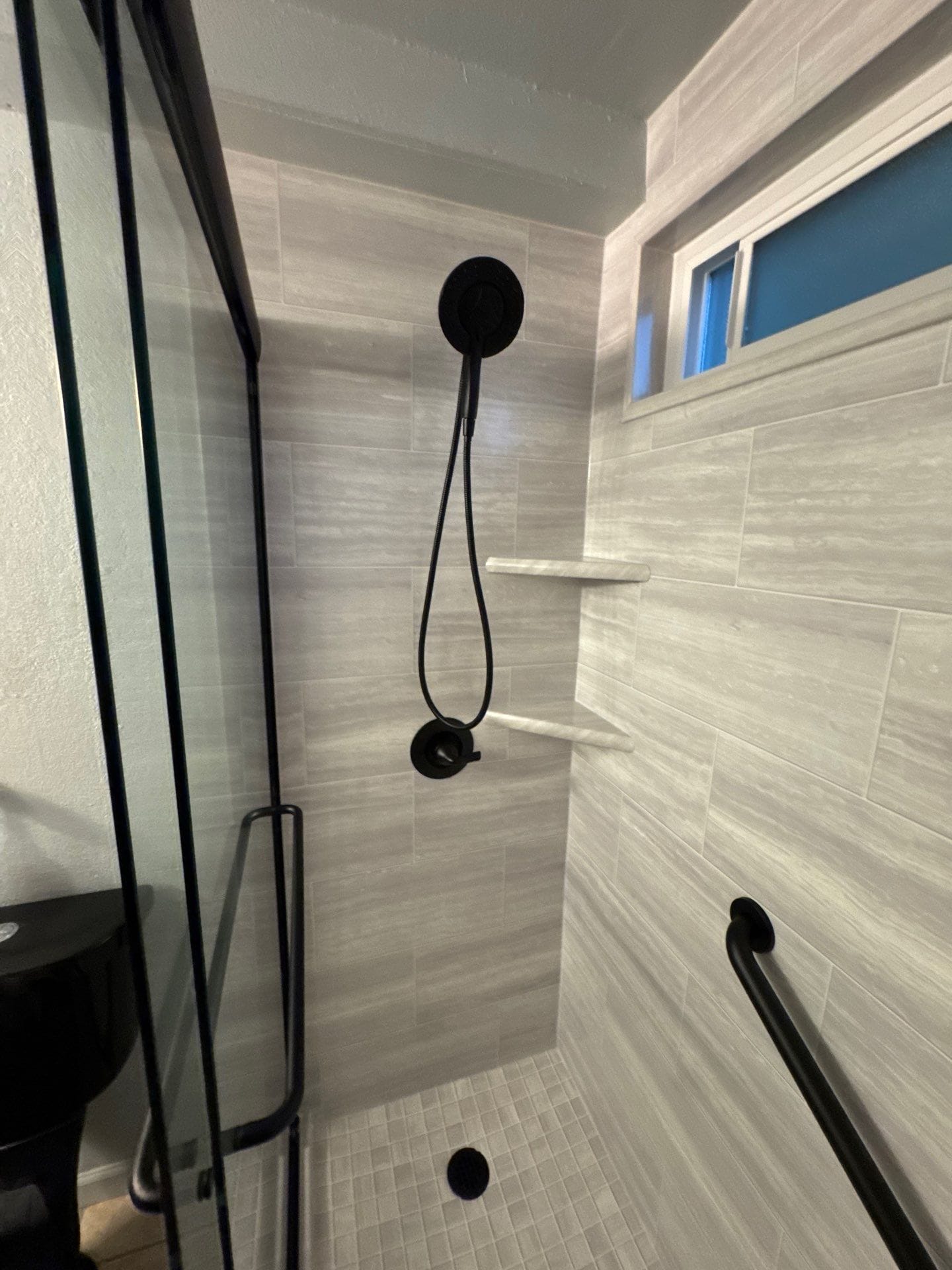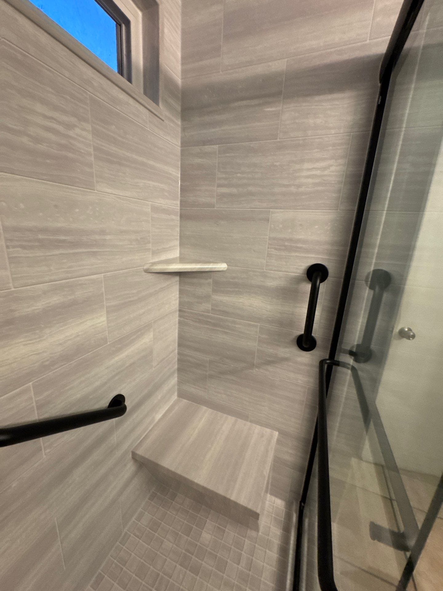 * Tub-to-walk-in shower conversion with a low-threshold base