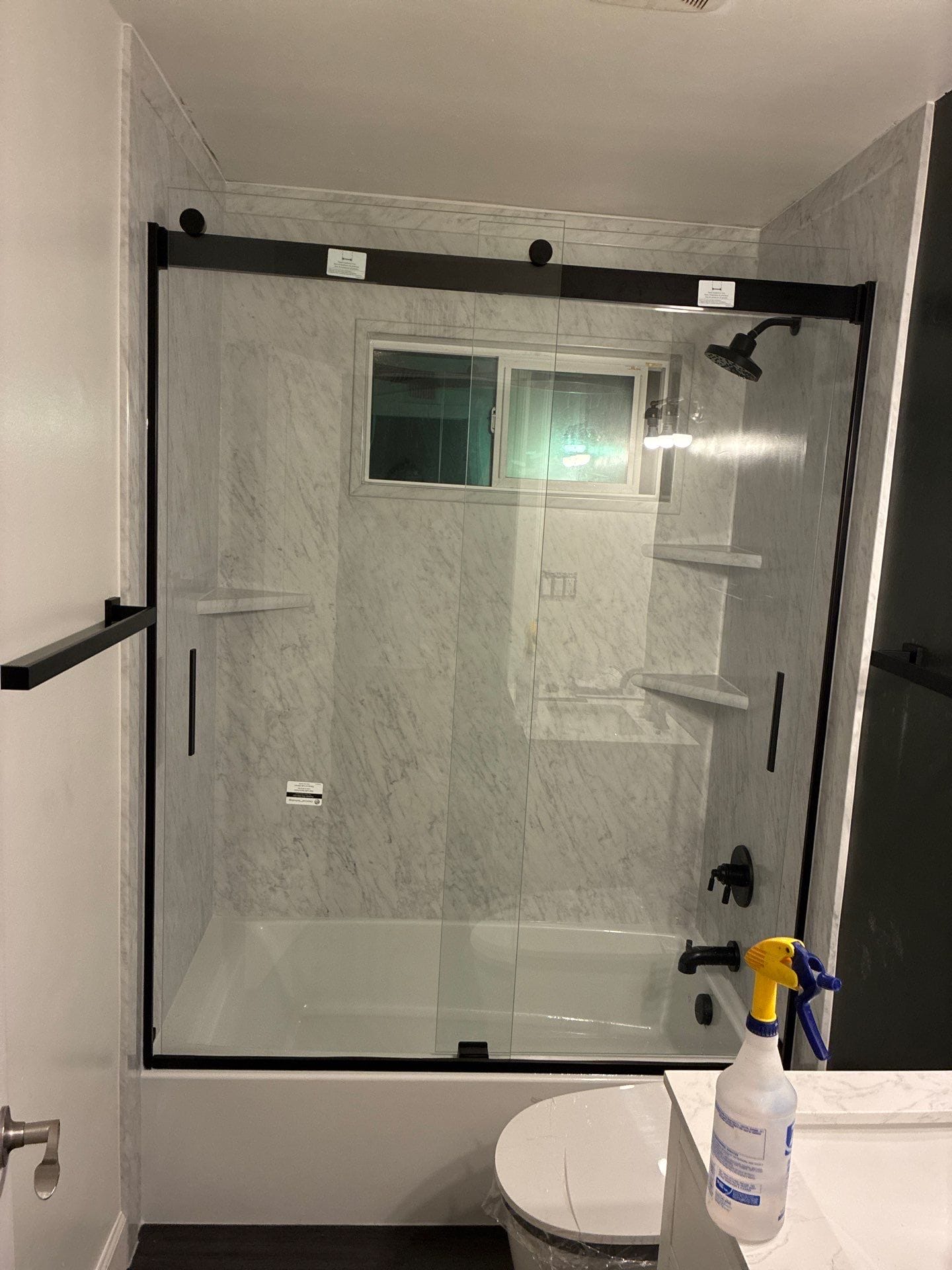 The Representative presented a high-performance wall system featuring non-porous, antimicrobial composite panels that replicate the appearance of natural stone. Selections included marble-patterned wall panels, brushed nickel hardware, and a sliding glass bypass door system designed to minimize water spot visibility. By specializing exclusively in bathroom remodeling and utilizing commercial-grade Delta plumbing systems, the company established a high standard of reliability and expertise for this transformation.