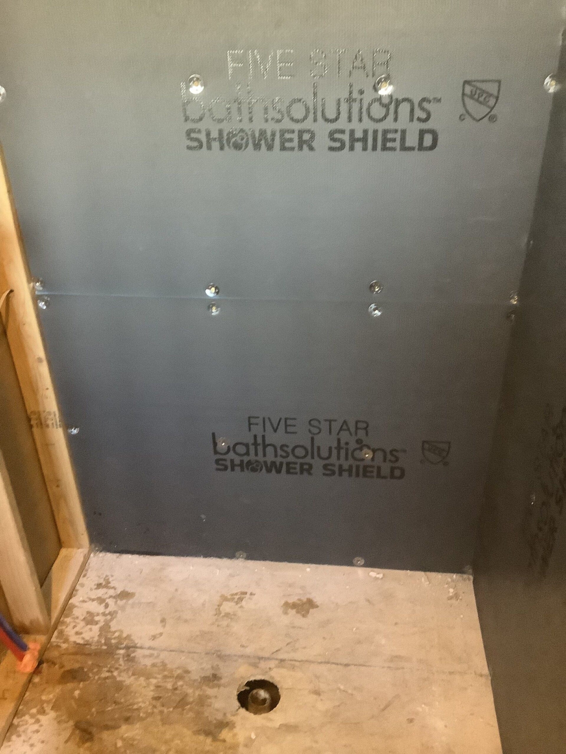 * Walk-in shower remodel with Azura Bay composite wall panels