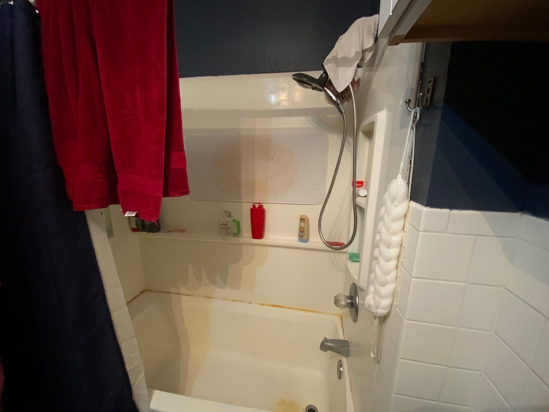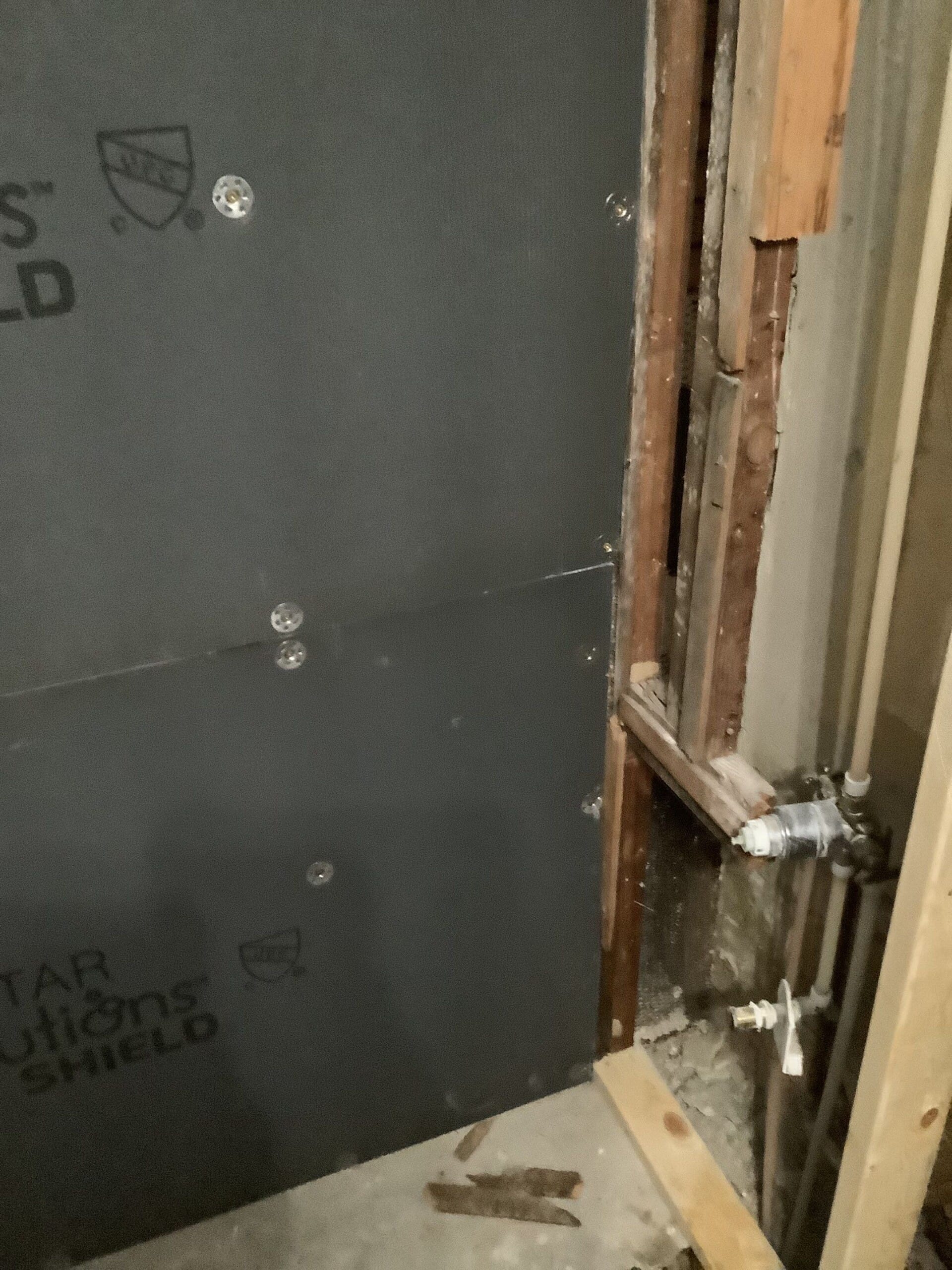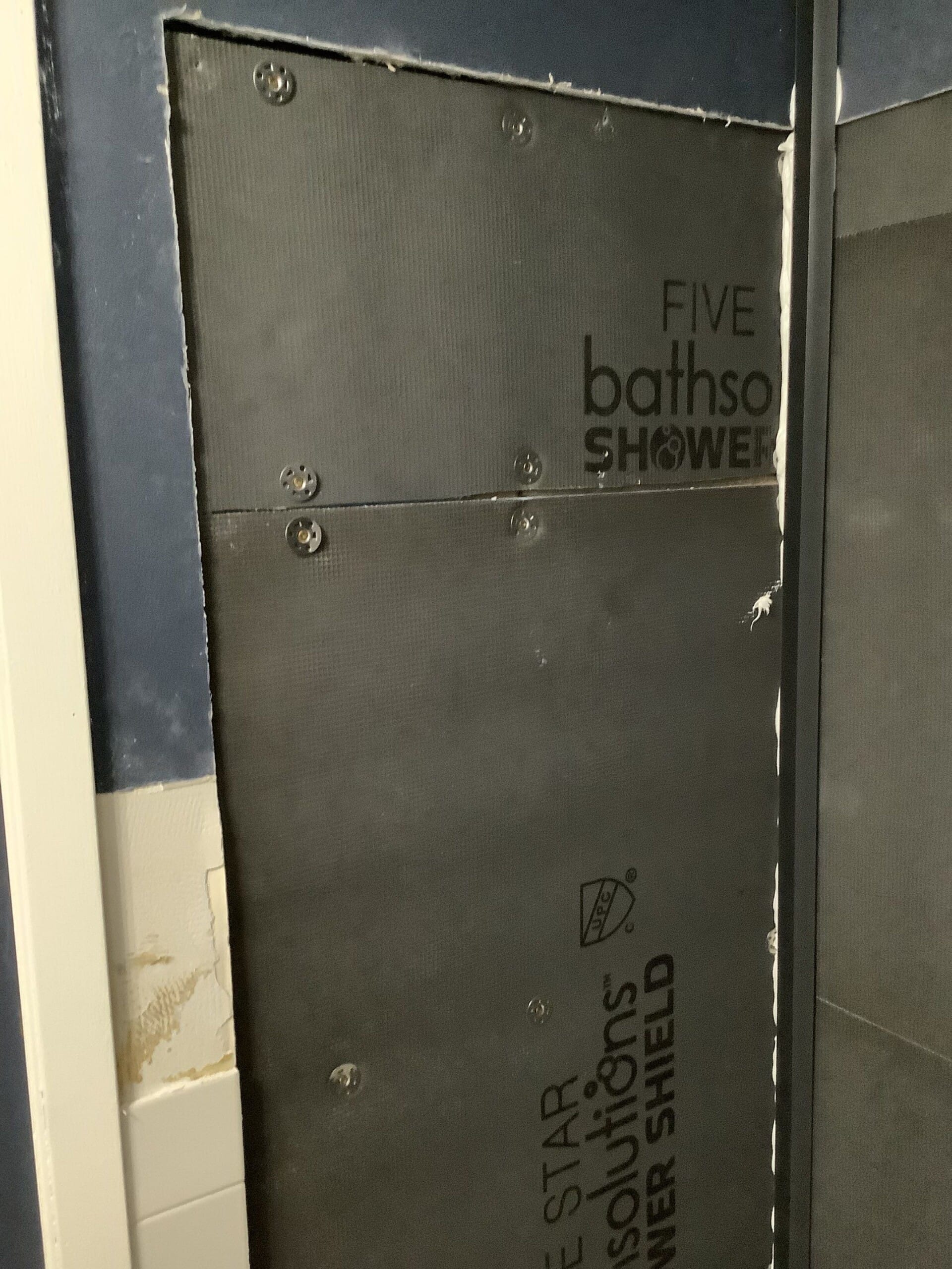 * Slip-resistant shower base reinforced with marine-grade plywood