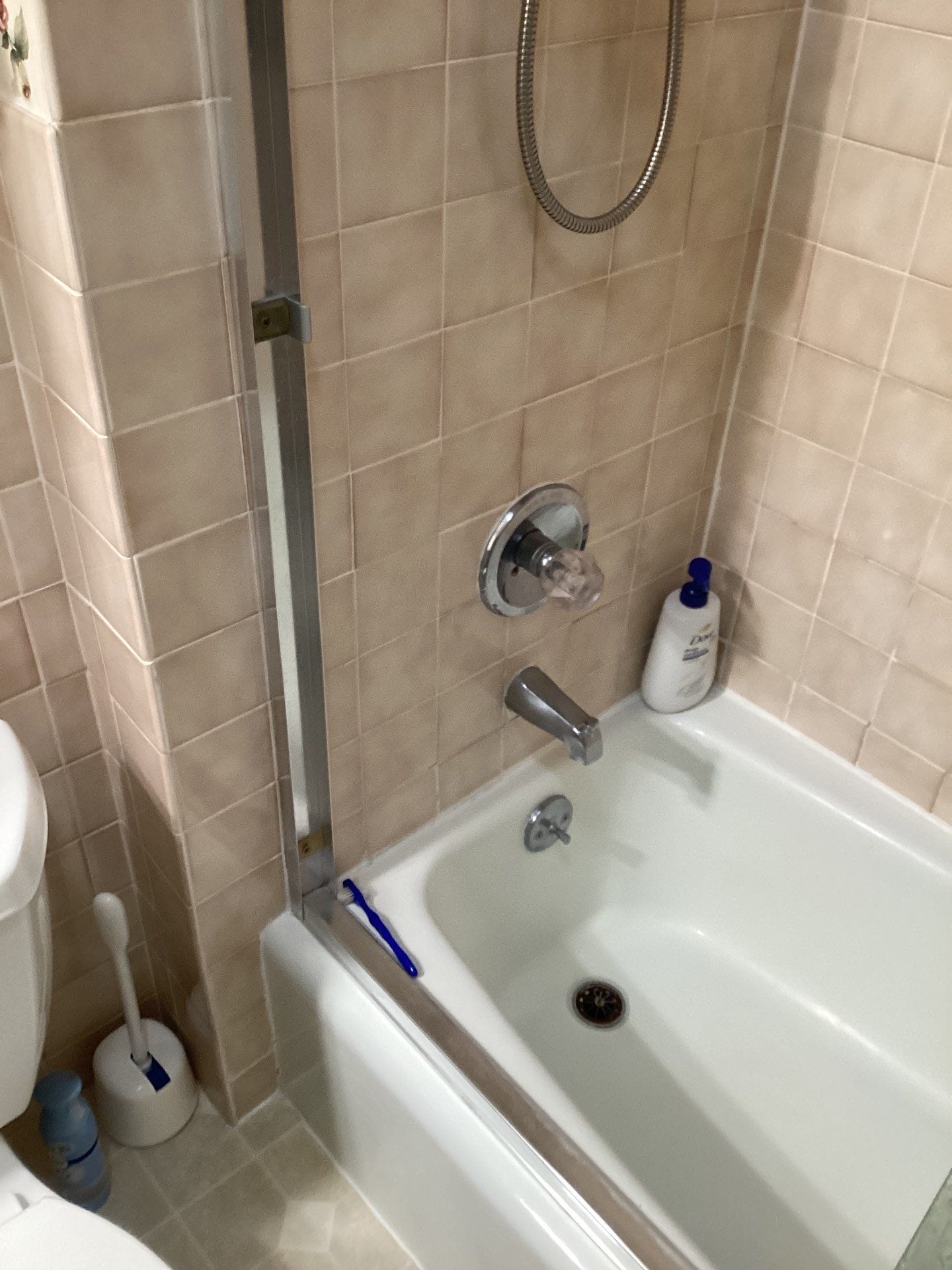 * Brushed nickel fixtures and handheld spray wand