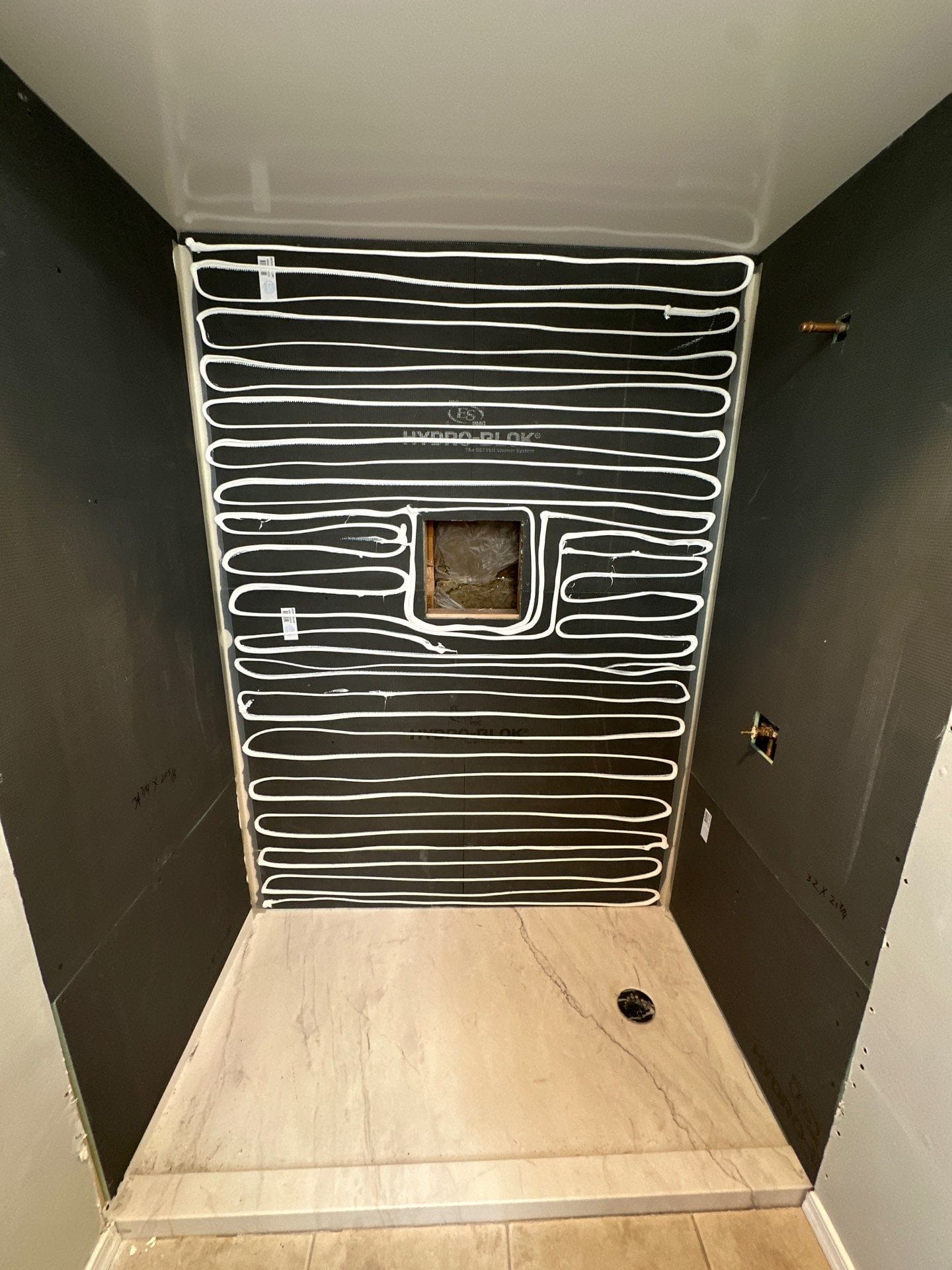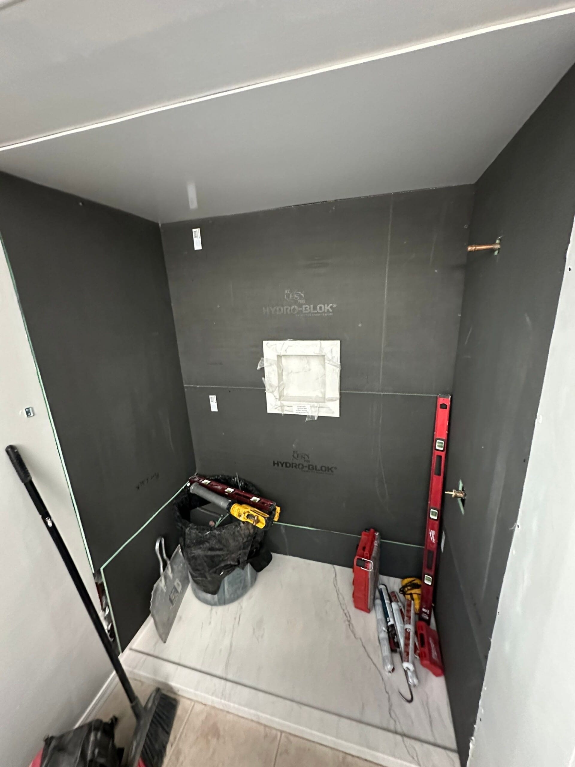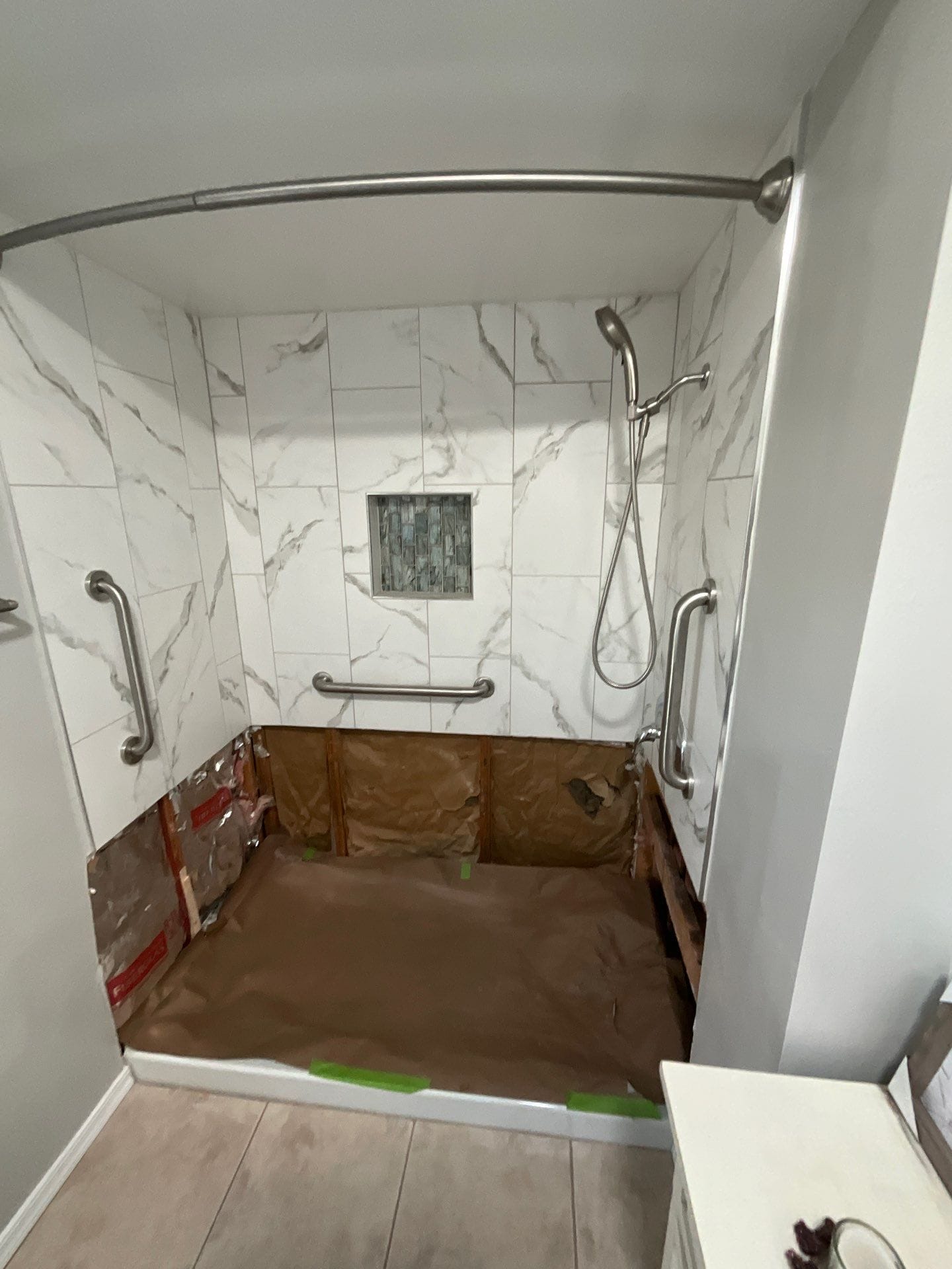 * Full walk-in shower renovation with composite wall panel system