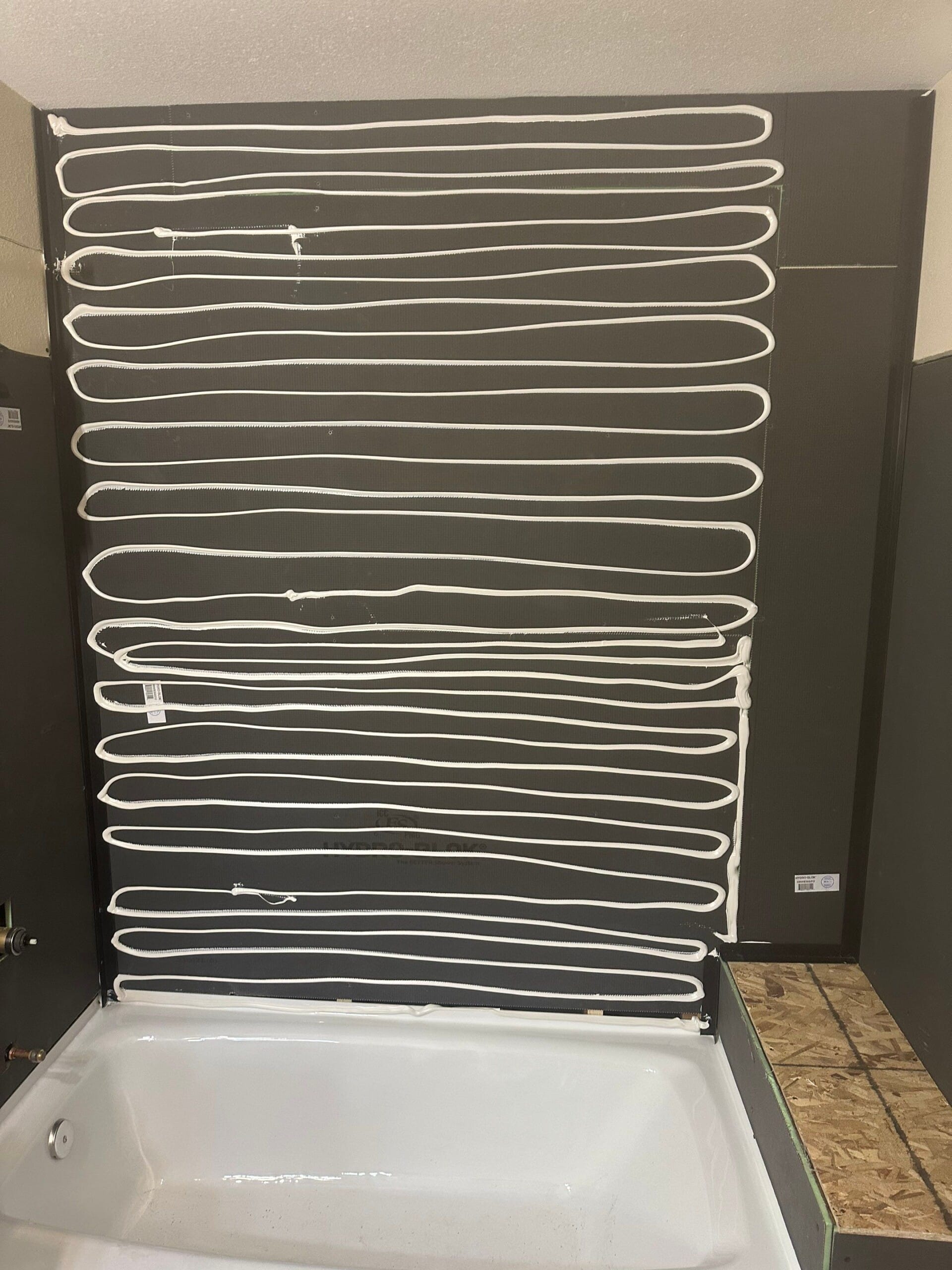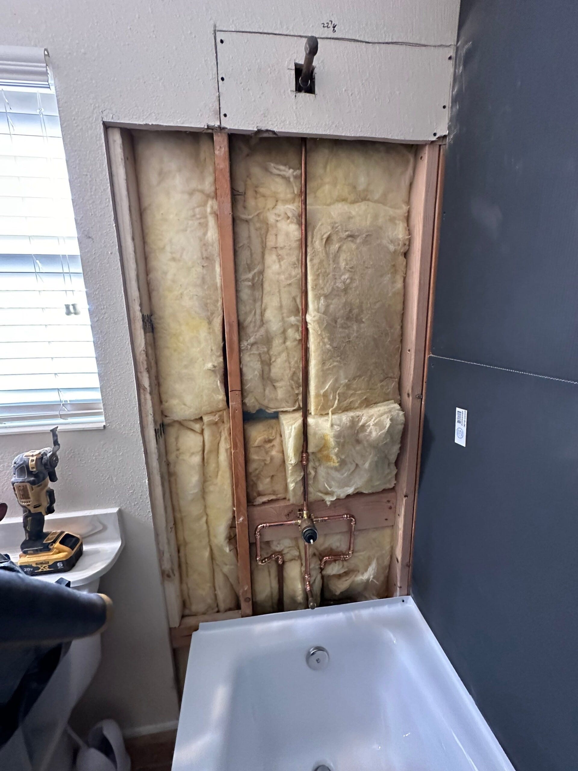 * 30x60 white acrylic tub installation with chrome Delta faucet