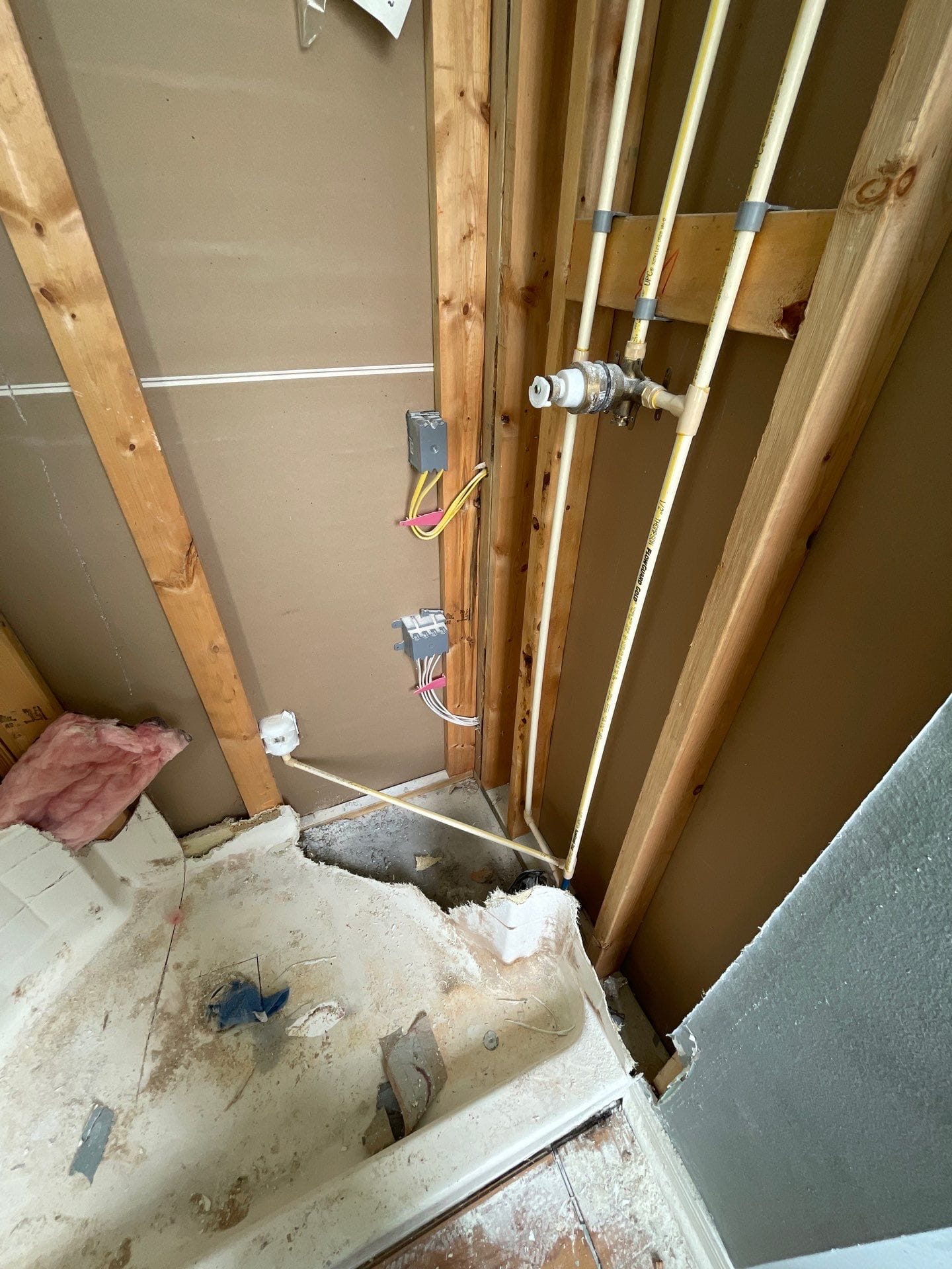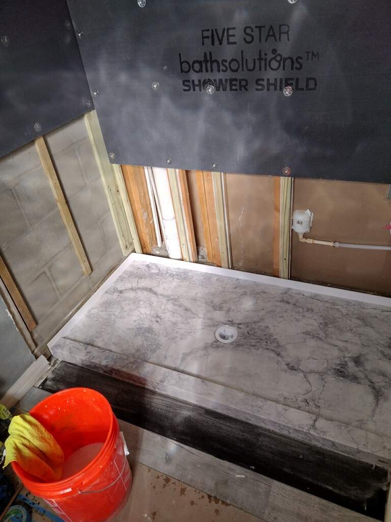 The installation was completed within the projected two-day timeline. Prep included full demo of the prior surround, damage repair, and base leveling. Installers completed plumbing adjustments, set new composite panels with edge detail, installed the framed bypass glass door system, sealed with waterproof-grade silicone, and cleaned the site thoroughly. The customer reported satisfaction with the transformation and lack of lingering debris or odor.