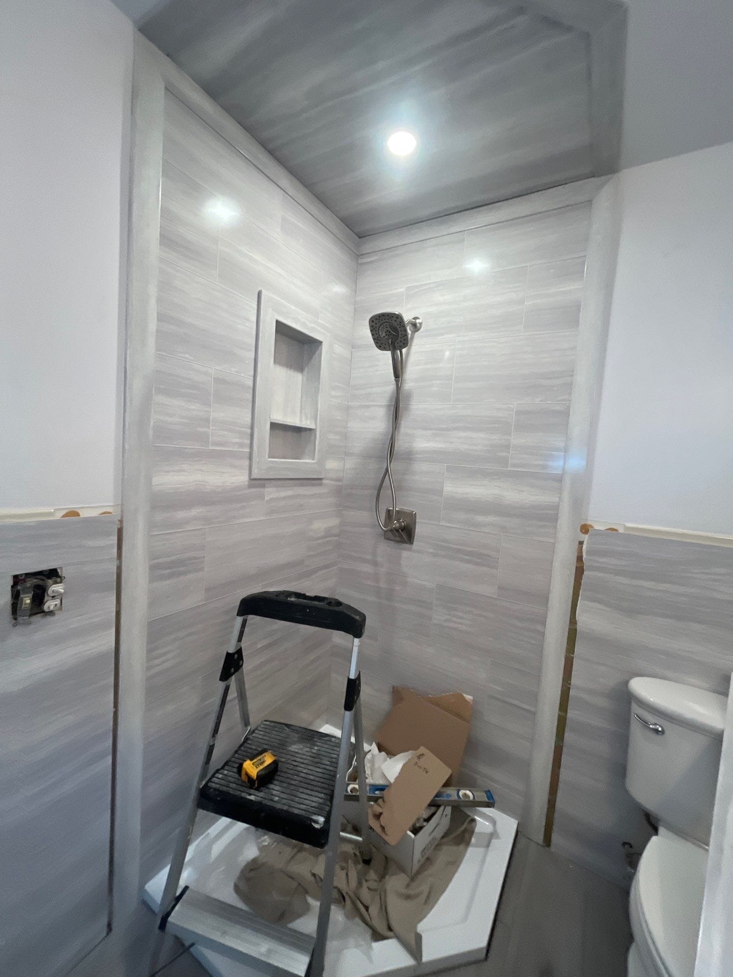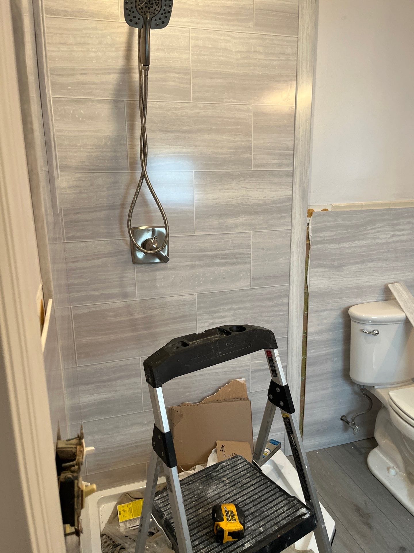 * Full demo to studs, plumbing adjustments, and installation of drylock moisture-resistant backer